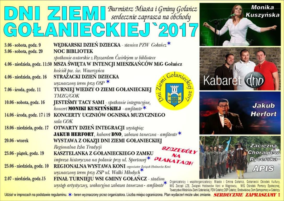 Przedstawiamy Państwu plan obchodów "Dni Ziemi Gołanieckiej 2017". Szczegóły obchodów znajdują się na plakacie.