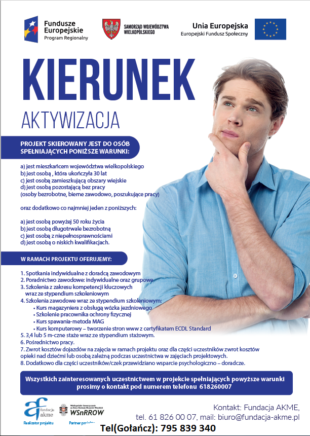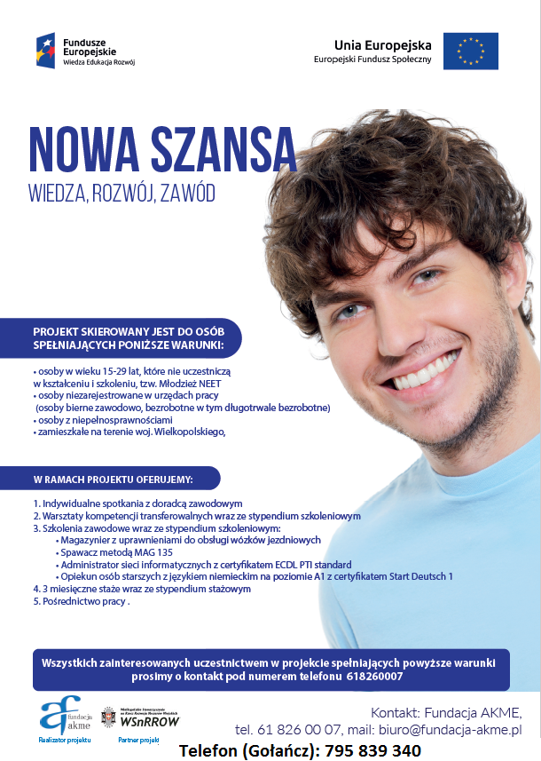 Od początku roku w Gminie Gołańcz przy wsparciu MOPS zrealizowano projekty aktywizacyjne dla osób bezrobotnych finansowane ze środków unijnych. Projekt miały na celu podnoszenie kwalifikacji zawodowych i odbywał się w trzech etapach: warsztaty grupowe, kursy zawodowe(w naszej gminie był to kurs krawiecki i kurs komputerowy), a także staże. Dzięki środkom unijnym każdy z etapów wsparcia był finansowany co oznacz , że oprócz faktycznych umiejętności i certyfikatów jakie zdobywali uczestnicy dostawali także wynagrodzenia w postaci stypendium wypłacanego na konto. Część z osób po odbyciu stażu zdobyła już zatrudnienie. Projekt spotkał się z pozytywnym odbiorem naszych mieszkańców, licznymi zapytaniami o możliwości dalszego uczestnictwa, w związku z czym planowana jest kolejna edycja. Zainteresowane osoby proszone są o kontakt z pracownikami Fundacji AKME.