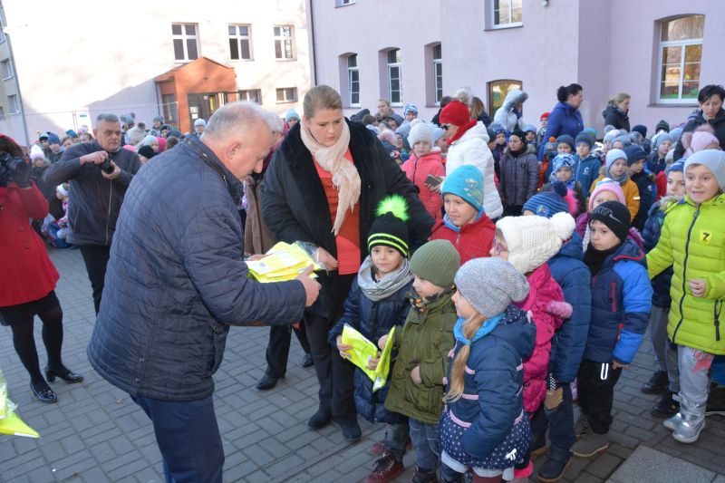 W ramach akcji bezpieczny uczeń i przedszkolak na drodze Burmistrz Miasta i Gminy Gołańcz - Mieczysław Durski rozdał przedszkolakom odblaskowe misie w Przedszkolu Publicznym w Gołańczy. Uczniowie zerówek otrzymali kamizalki odblaskowe. Uczniom Szkoły Podstawowej im. ppłka Włodzimierza Kowalskiego w Gołańczy burmistrz wręczył opaski odblaskowe. W ramach działań prewencyjnych Kierownik Posterunku Policji w Gołańczy - mł. asp. Bartosz Huszek i Dzielnicowy mł. asp. Emil Kujawa przedstawili uczniom zasady bezpiecznego poruszania się po drogach. Kamizelki i odblaski zostały zakupione dla wszystkich przedszkolaków, uczniów zerówek i uczniów szkół z budżetu Miasta i Gminy Gołańcz.