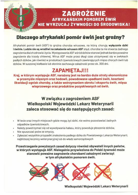 Powiatowy Lekarz Weterynarii w Wągrowcu informuje, że na dzień 18.03.2021 r. stwierdzono 793 przypadki choroby u dzików i niestety pierwsze w tym roku ognisko u śwoń na terenie województwa lubuskiego.