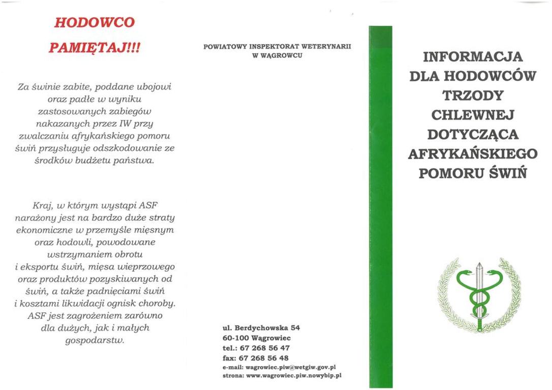 Celem podejmowanej akcji informacyjnej jest zwiększenie świadomości hodowców w zakresie przestrzegania zasad bioasekuracji w gospodarstwie i tym samym przeciwdziałaniu zagrożeniu rozprzestrzeniania się afrykańskiego pomoru świń.