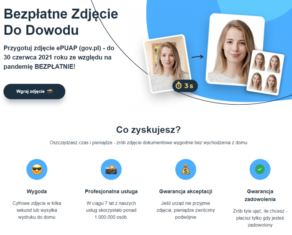 Akcja zostaje przedłużona do 30 czerwca 2021 r. w związku z czym każdy zainteresowany będzie mógł wykonać bezpłatnie i samodzielnie zdjęcie do dowodu osobistego przy pomocy Bezpłatnego Kreatora Zdjęć.