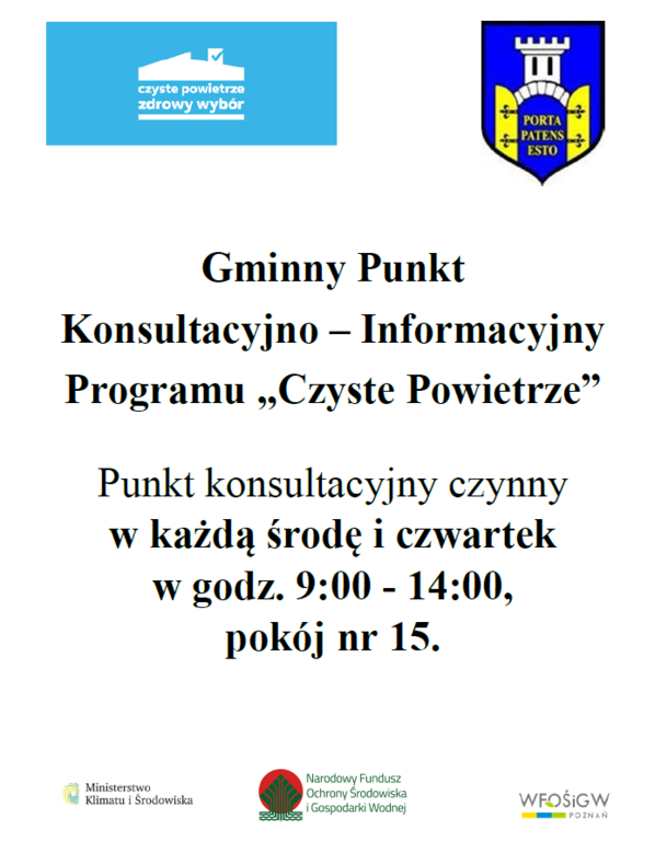 Punkt konsultacyjny czynny w każdą środę i czwartek w godz. 9:00 - 14:00, pokój nr 15.