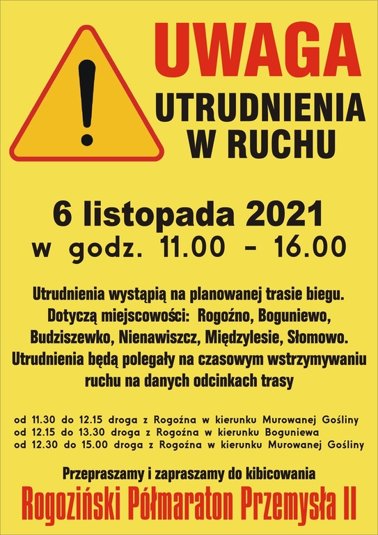 6 listopada 2021 roku odbędzie się 6. Rogoziński Półmaraton Przemysła II.