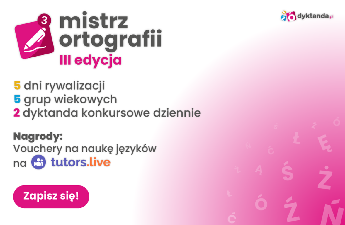 - do wygrania są pakiety korepetycji w portalu z korepetycjami online i nauką języków Tutors.live (https://tutors.live/pl).