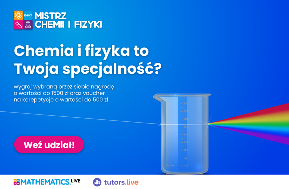 Takie możliwości oferuje konkurs Mistrz Chemii i Fizyki rozgrywany w serwisie edukacyjnym Mathematics.live. Zadaniem uczestników będzie przygotowanie opracowań na wybrane z listy tematy. To świetna okazja do ugruntowania zdobytej już wiedzy, a także zgłębienia nowych zagadnień.