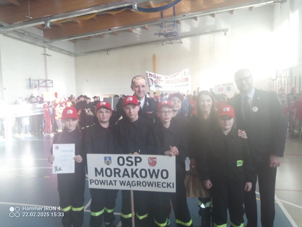 22 lutego 2025 roku reprezentanci Młodzieżowej Drużyny Pożarniczej z Morakowa – Gracjan Ślężak, Cezary Kemnitz, Dominik Musiał, Fabian Różak, Nikola Januchowska i Karolina Kemnitz – wzięli udział w I Halowych Młodzieżowych Zawodach Sportowo-Pożarniczych w Jarocinie. Byli jedynymi przedstawicielami powiatu wągrowieckiego na tej prestiżowej imprezie!