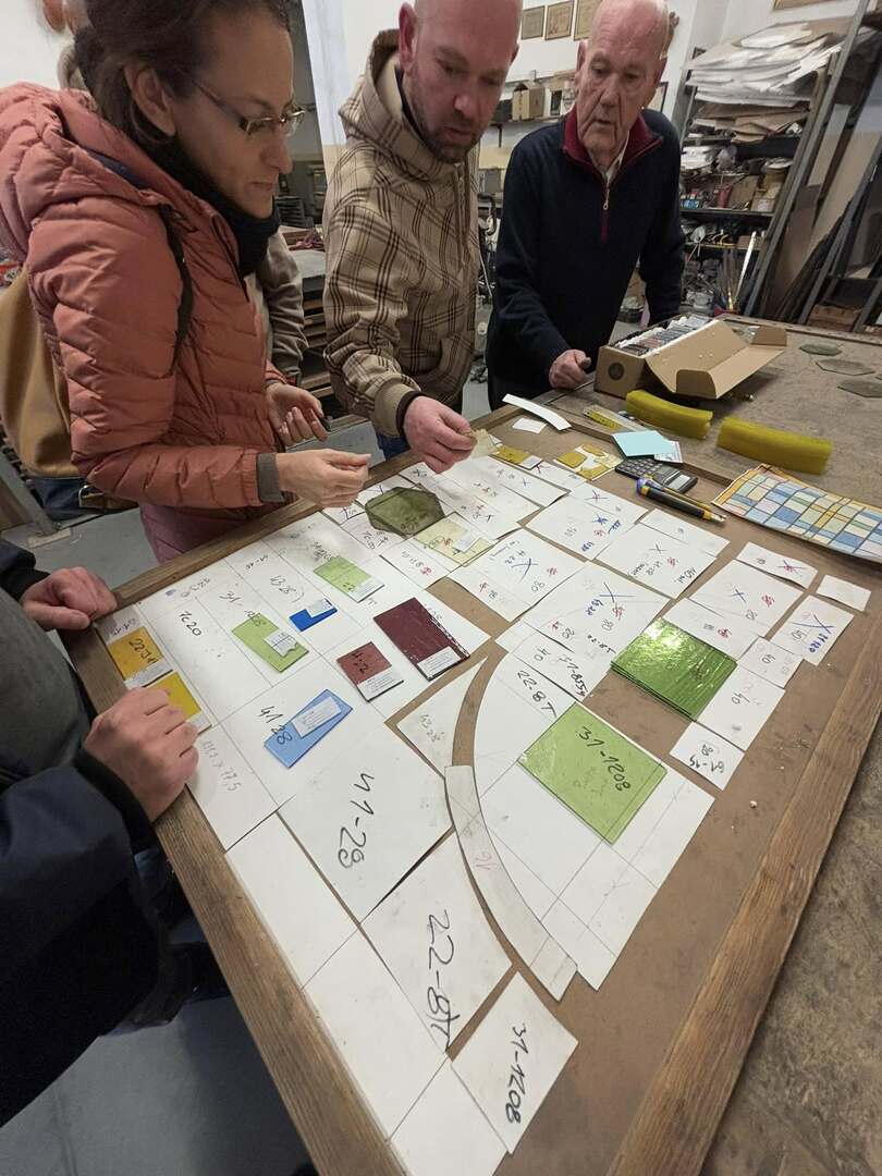 27 lutego br. Sławomir Maciaszek - Zastępca Burmistrza Miasta i Gminy Gołańcz wraz z konserwatorką dzieł sztuki Agnieszką Myszkowską, wykonawcą rewitalizacji zamku Janem Grzybowskim oraz archeologiem prof. Arturem Różańskim z UAM Poznań, uczestniczył w spotkaniu dotyczącym doboru szkła do okiennic naszego gołanieckiego zamku. Spotkanie odbyło się w znanej pracowni witraży Adama Mariana Gołembowskiego i jego syna Przemysława w Poznaniu-Skórzewie.