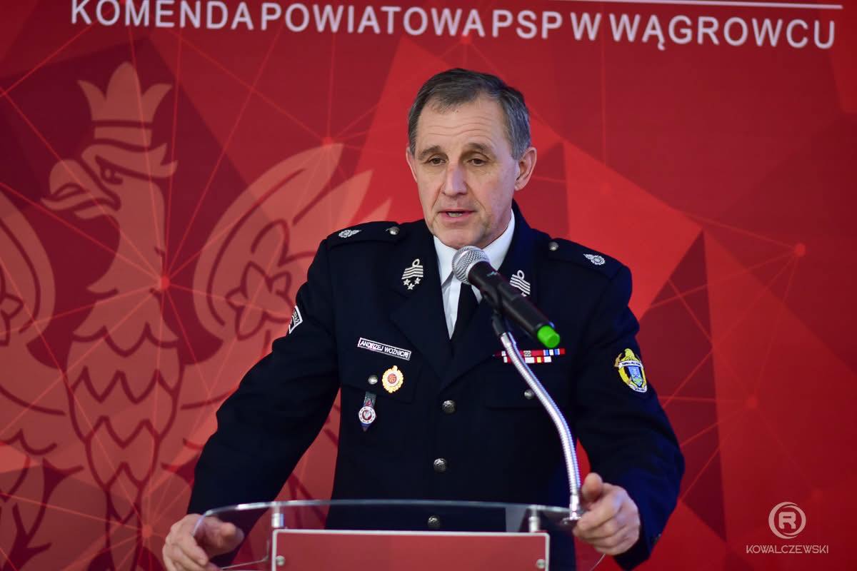 Gości wydarzenia powitał Komendant Powiatowy PSP w Wągrowcu, mł. bryg. Jacek Rochowiak. Miasto i Gminę Gołańcz reprezentował Robert Torz - Burmistrz Miasta i Gminy Gołańcz.