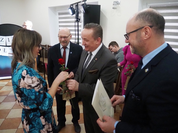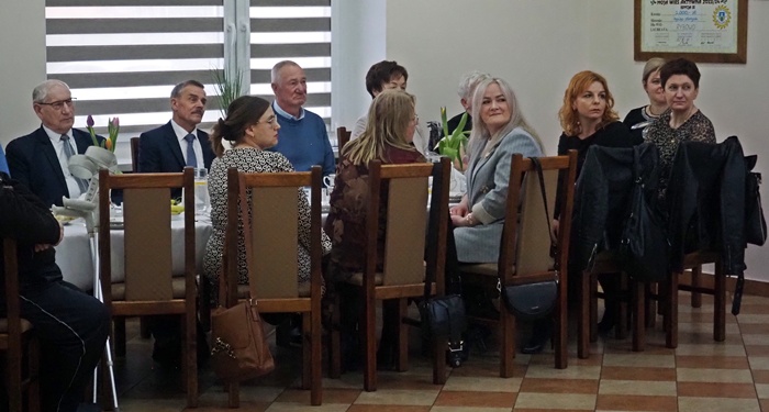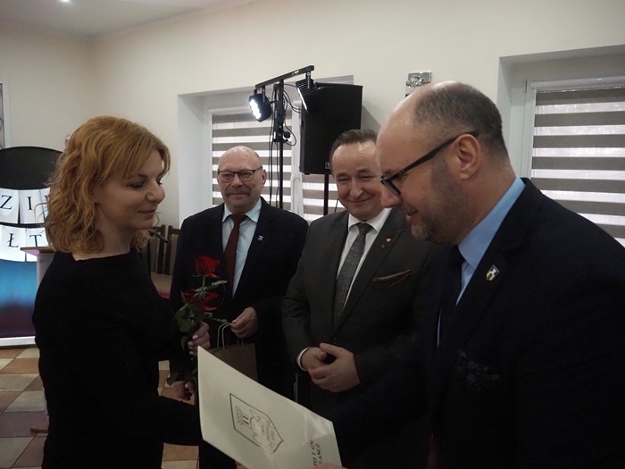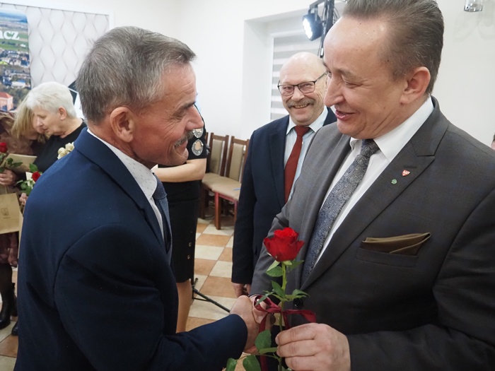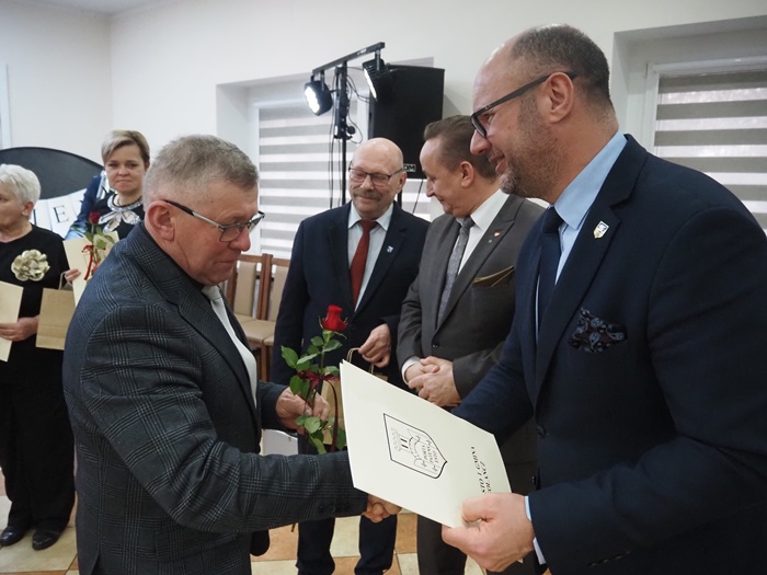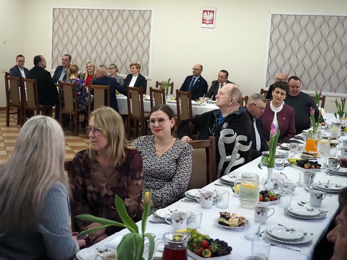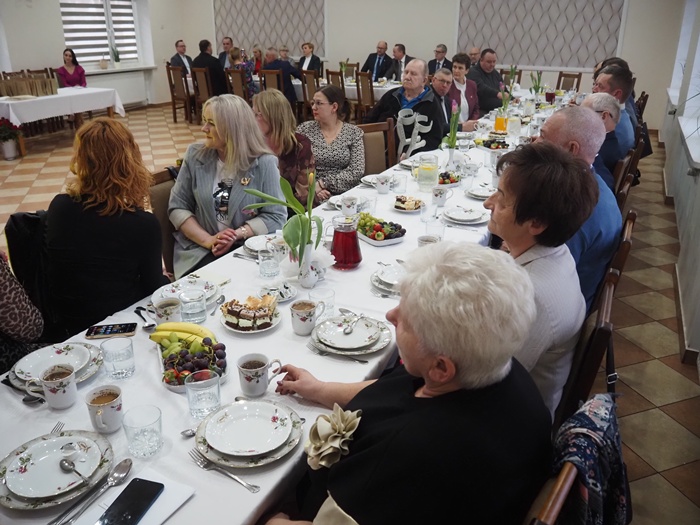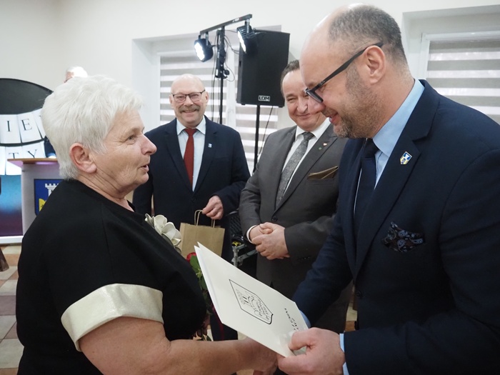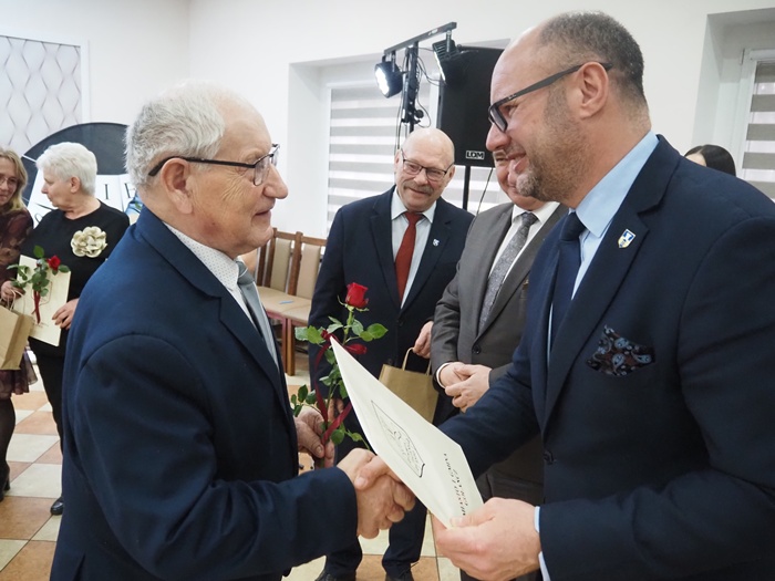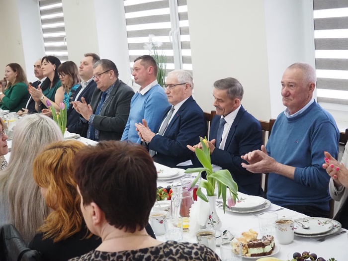 Podczas uroczystości nie zabrakło ciepłych słów i gratulacji ze strony Burmistrza i przybyłych Gości, wspólnego torta oraz pięknej oprawy muzycznej, o którą zadbała Anna Ewa Mirek.