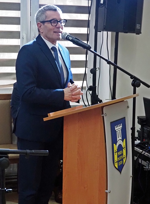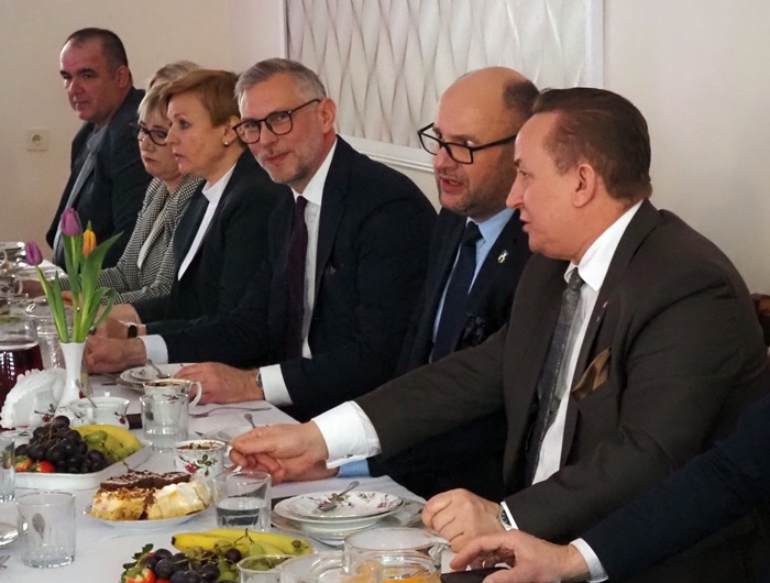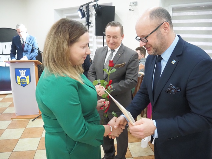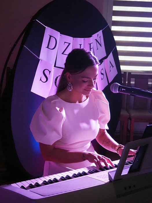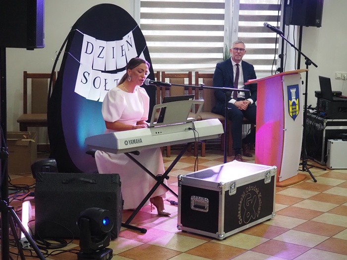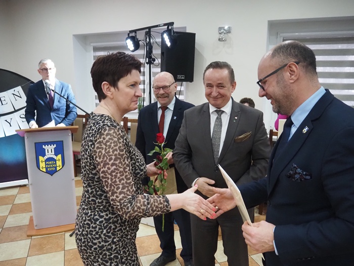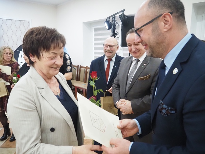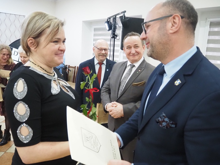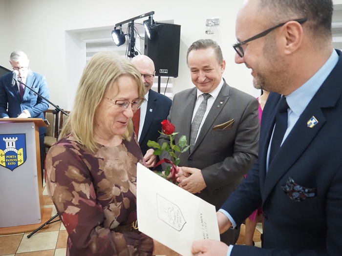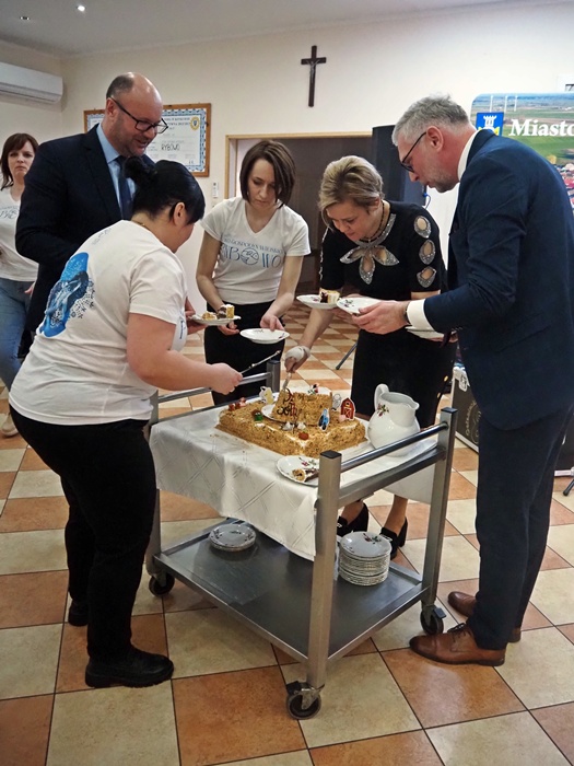 Podczas uroczystości nie zabrakło ciepłych słów i gratulacji ze strony Burmistrza i przybyłych Gości, wspólnego torta oraz pięknej oprawy muzycznej, o którą zadbała Anna Ewa Mirek.