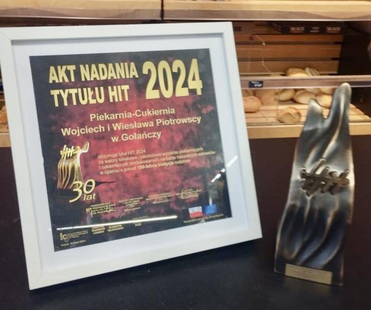 Gołaniecka Piekarnia - Cukiernia Piotrowscy otrzymała tytuł HIT regionu 2024 za wyjątkowe walory smakowe i jakościowe swoich wyrobów, przygotowanych na bazie naturalnych surowców i w oparciu o ponad 150-letnią tradycję rodzinną.