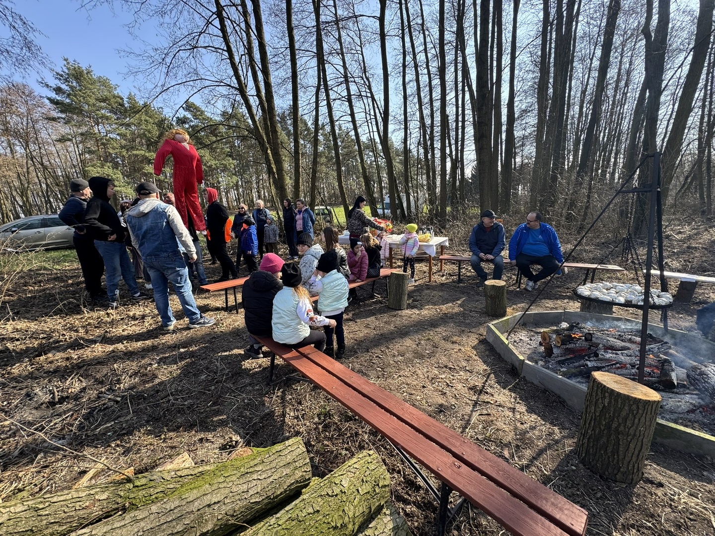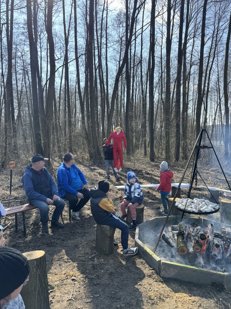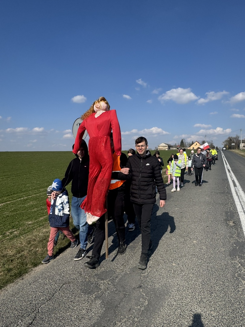 Spotkanie rozpoczęło się przy świetlicy wiejskiej, skąd wszyscy wyruszyli w barwnym przemarszu nad jezioro. Tam, w promieniach słońca, odbyła się tradycyjna ceremonia spalenia "Marzanny" – symbolu odchodzącej zimy.