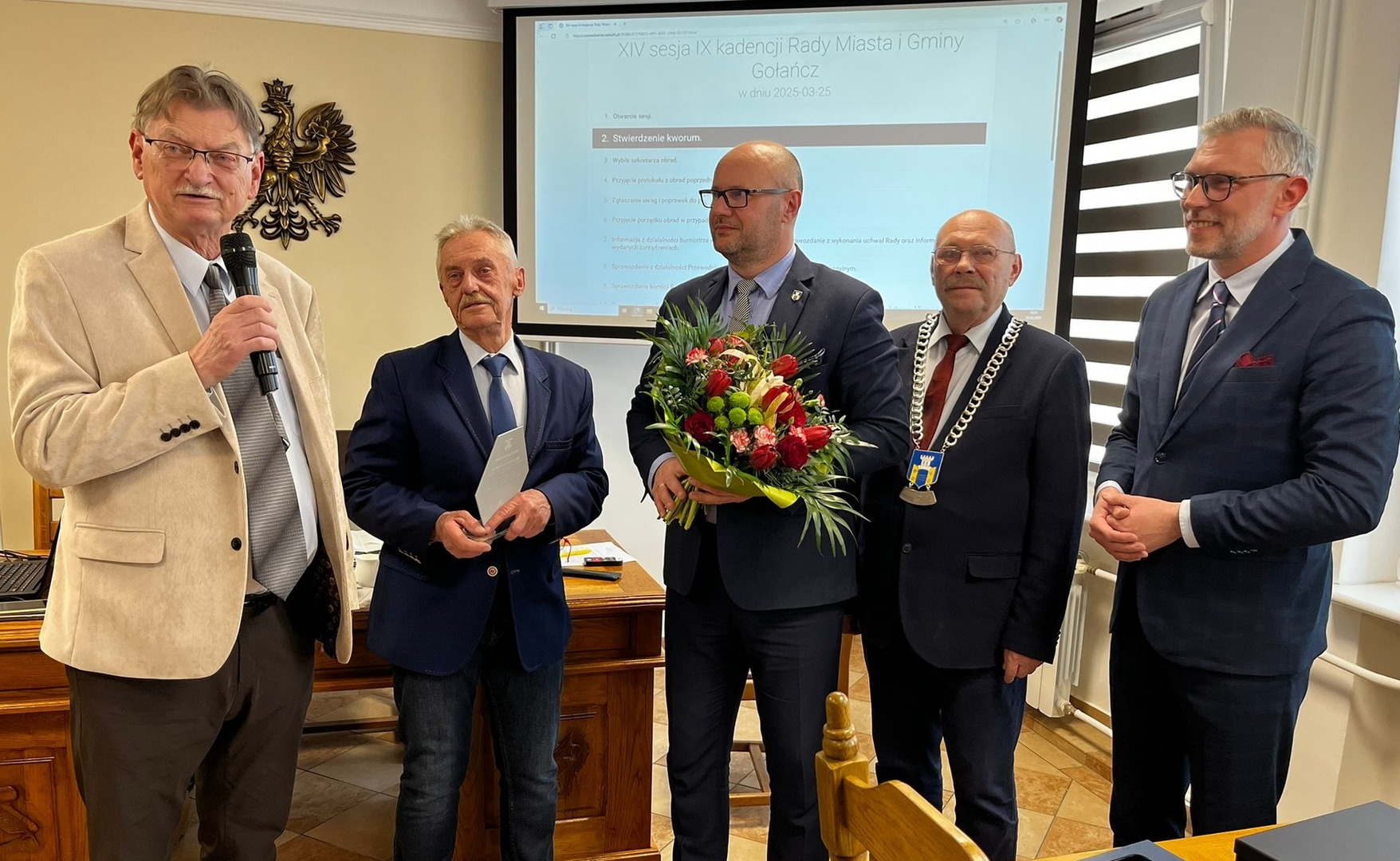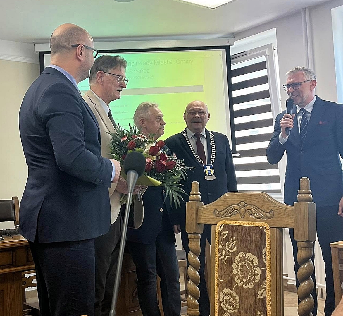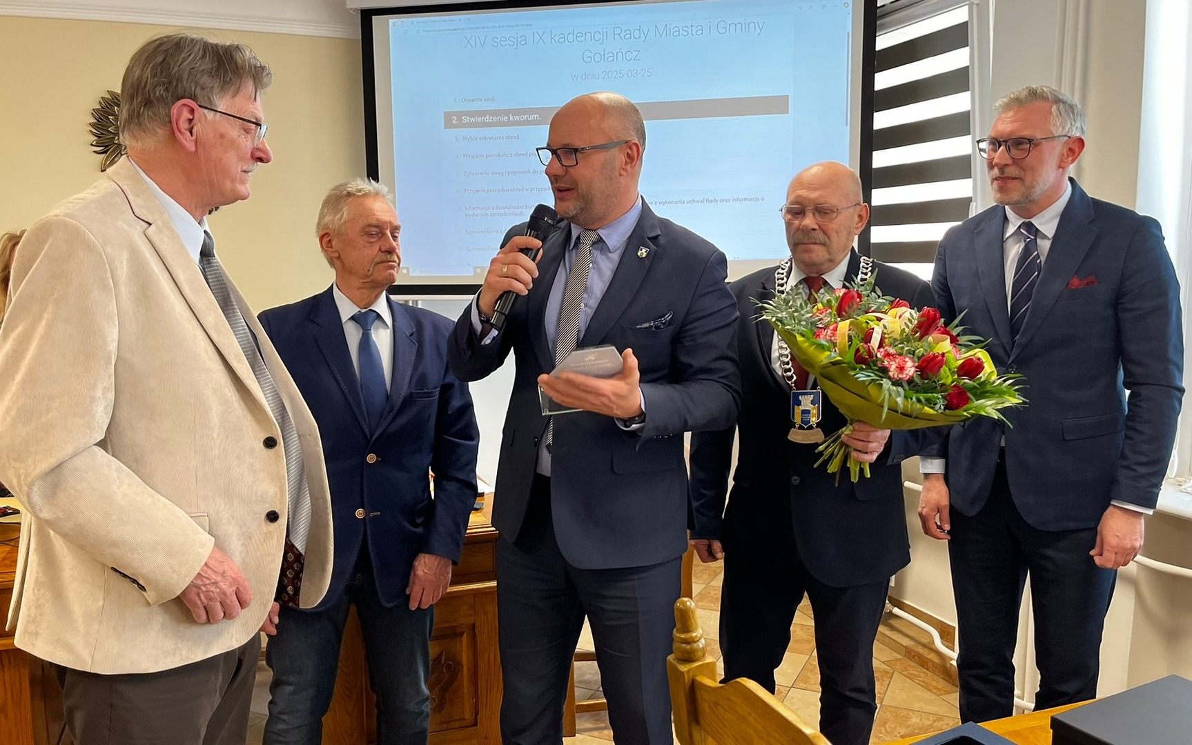 Sesję rozpoczął przewodniczący Rady MiG Karol Brzeziński. Następnie wspólnie z Robertem Torzem - Burmistrzem Miasta i Gminy Gołańcz oraz Sławomirem Maciaszkiem - Zastępcą Burmistrza Miasta i Gminy Gołańcz – wręczył pamiątkową statuetkę oraz kwiaty Panu Wojciechowi Osuchowi, prezesowi klubu sportowego ZAMEK GOŁAŃCZ. Uhonorowano go z okazji 40-lecia działalności sportowej, podkreślając jego nieocenione zaangażowanie i wkład w rozwój miejscowego klubu oraz promocję sportu w naszej gminie. Gratulacje i podziękowania dla Pana Prezesa!