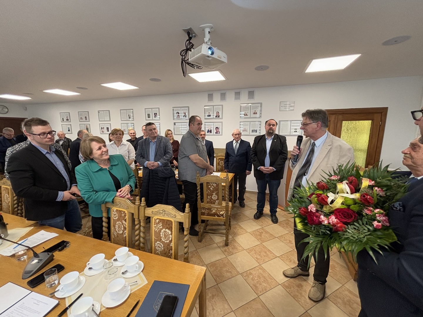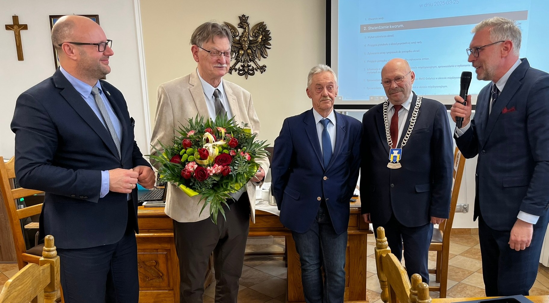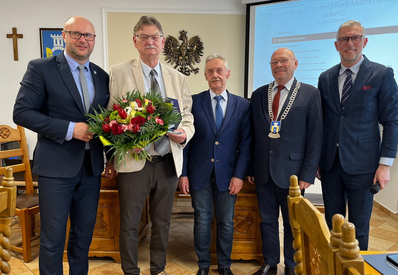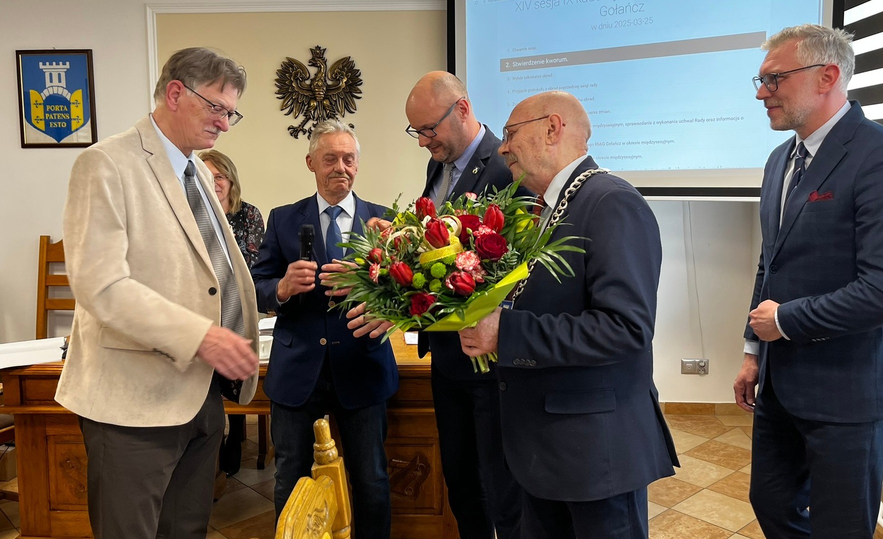 Sesję rozpoczął przewodniczący Rady MiG Karol Brzeziński. Następnie wspólnie z Robertem Torzem - Burmistrzem Miasta i Gminy Gołańcz oraz Sławomirem Maciaszkiem - Zastępcą Burmistrza Miasta i Gminy Gołańcz – wręczył pamiątkową statuetkę oraz kwiaty Panu Wojciechowi Osuchowi, prezesowi klubu sportowego ZAMEK GOŁAŃCZ. Uhonorowano go z okazji 40-lecia działalności sportowej, podkreślając jego nieocenione zaangażowanie i wkład w rozwój miejscowego klubu oraz promocję sportu w naszej gminie. Gratulacje i podziękowania dla Pana Prezesa!