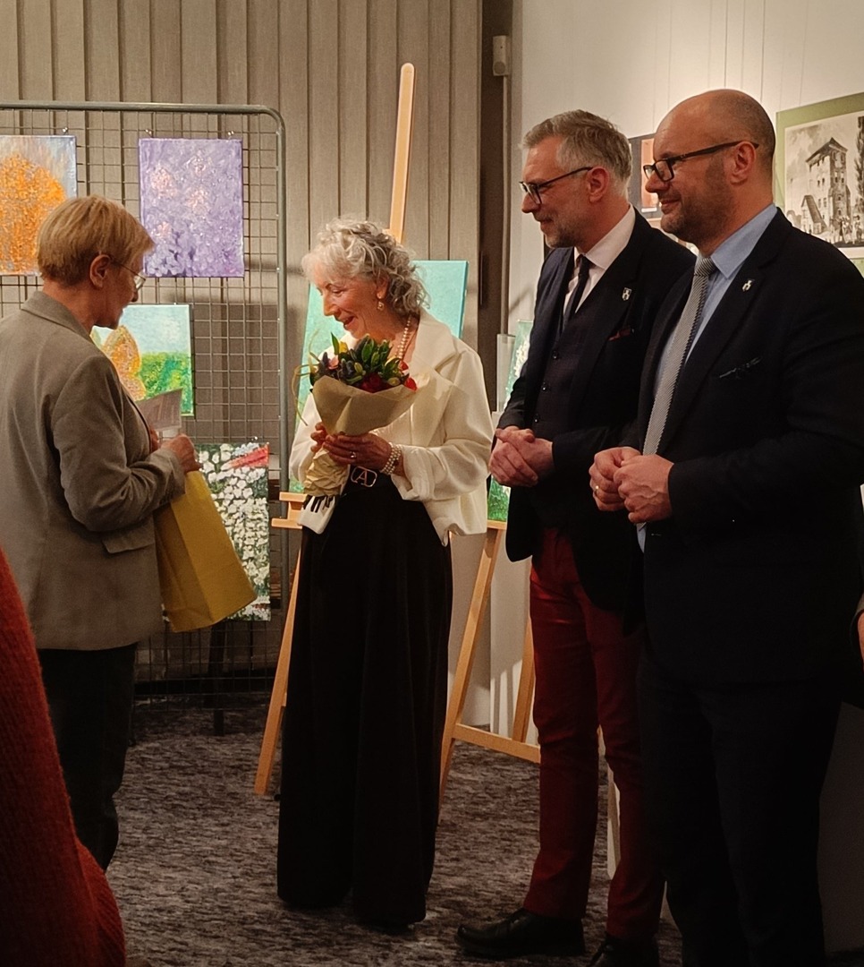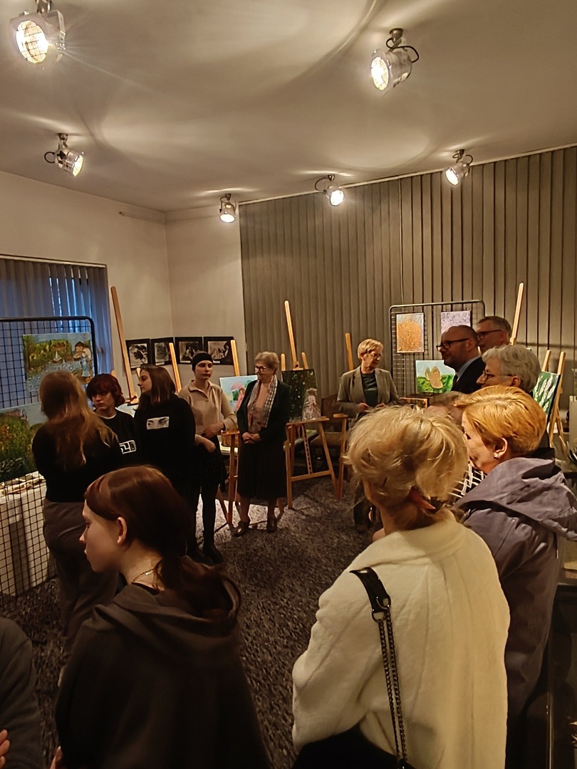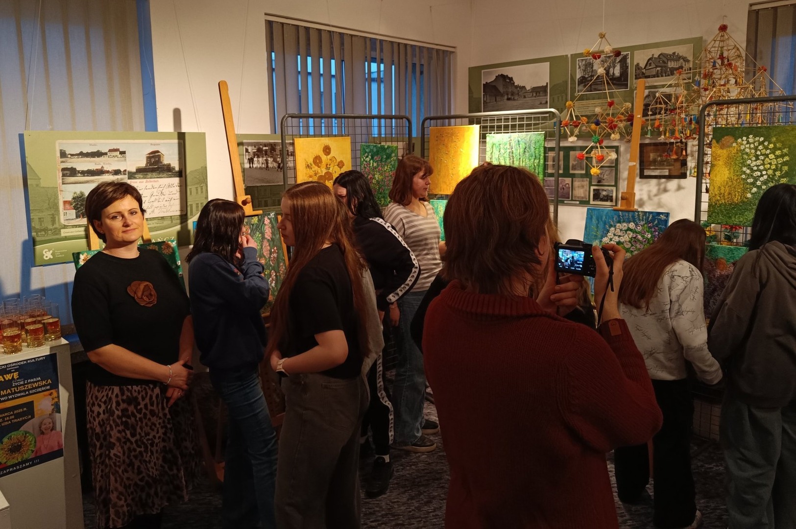 Wystawa pełna była aniołów, kwiatów oraz widoków okolic Grylewa - rodzinnych stron artystki. Pani Lidia Matuszewska opowiedziała o swojej twórczości i inspiracjach, zachęcając wszystkich do odkrywania własnych pasji i radości, jakie niesie sztuka.