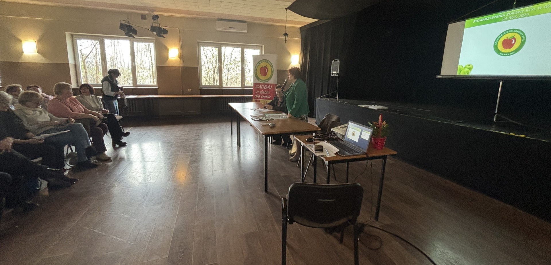 Podczas zebrania, wiceprezes Eugenia Białożyńska wraz z sekretarzem stowarzyszenia Barbarą Senger zaprezentowały sprawozdanie z działalności za rok 2024 w formie multimedialnej prezentacji.