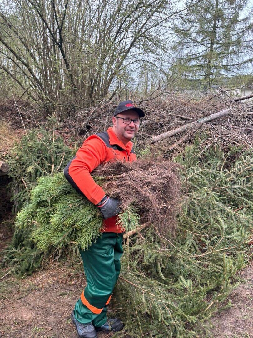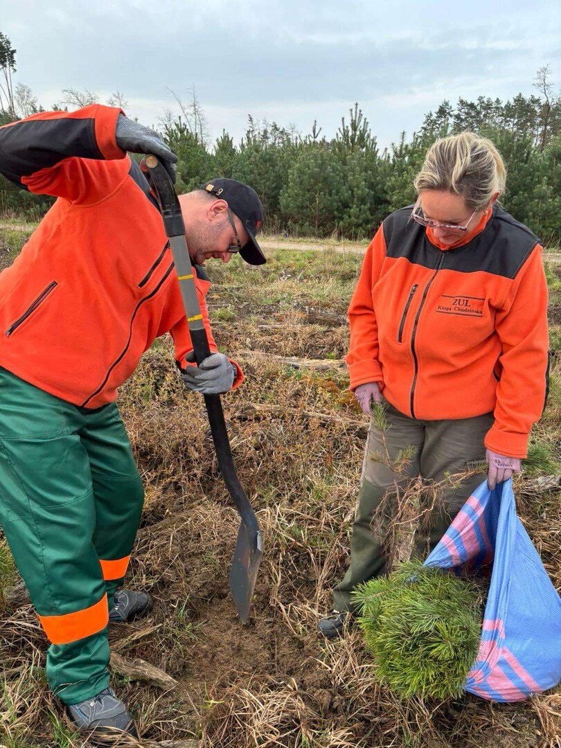 Dziś sadzi małe sosny i świerki – razem z zespołem planują posadzić około 1 000 sadzonek!