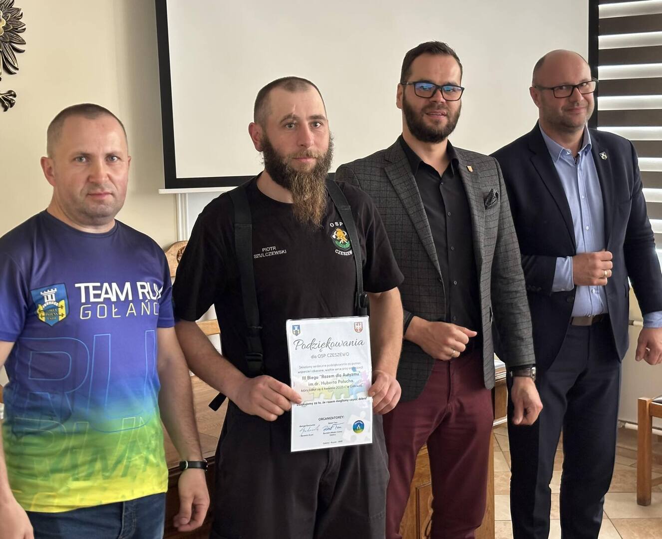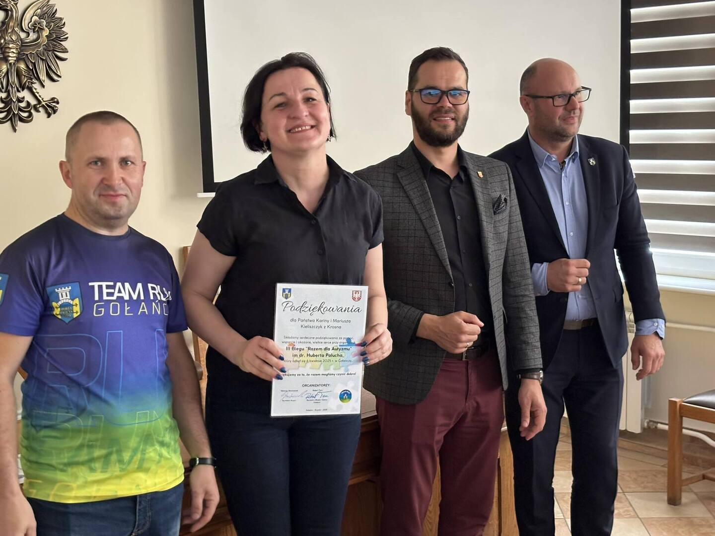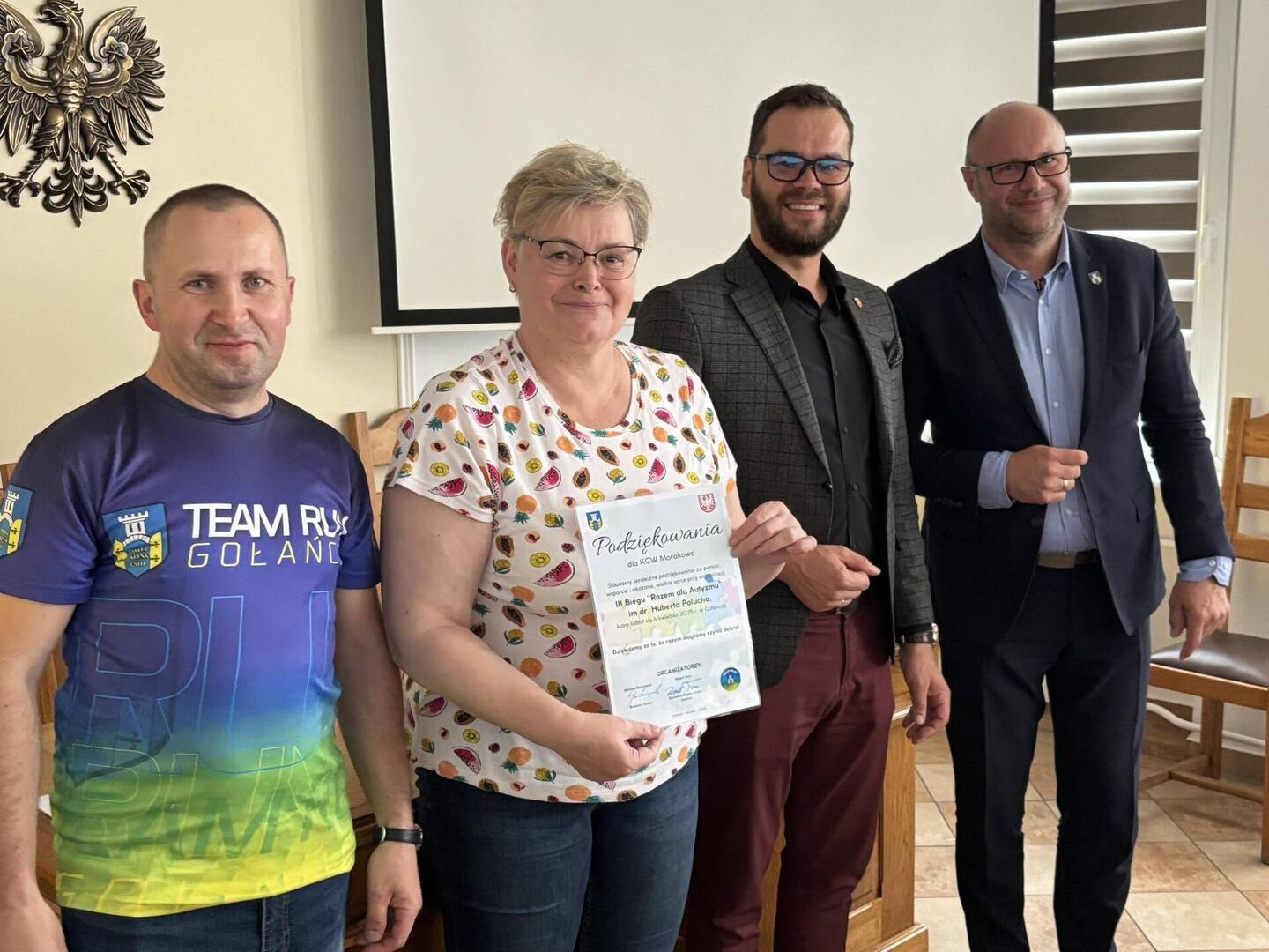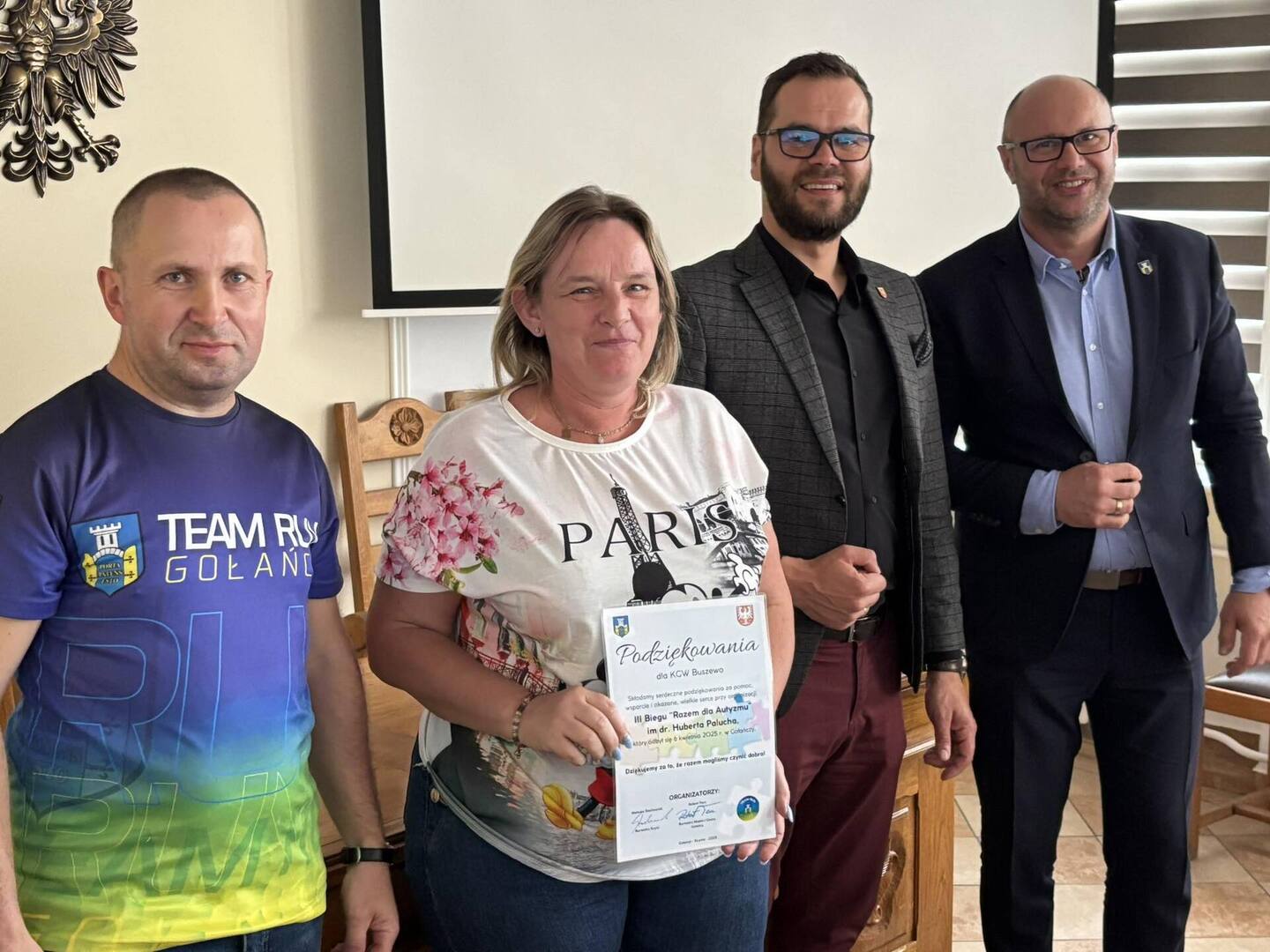Włodarze wręczyli pamiątkowe podziękowania wszystkim osobom i instytucjom zaangażowanym w organizację biegu – od sponsorów i wolontariuszy, po jednostki OSP i niezastąpione Koła Gospodyń Wiejskich.
