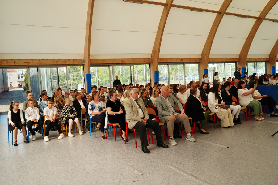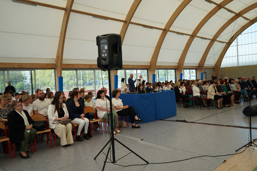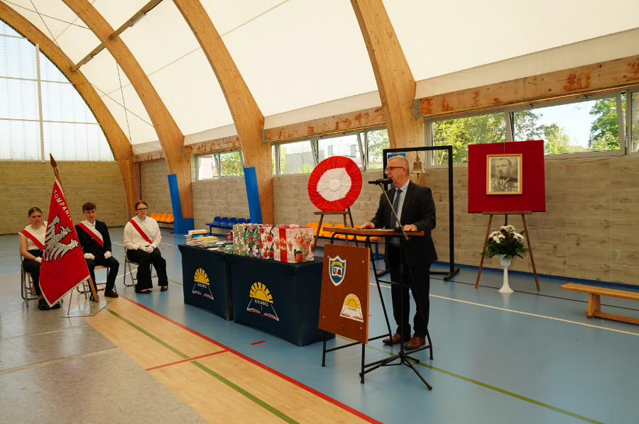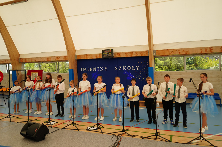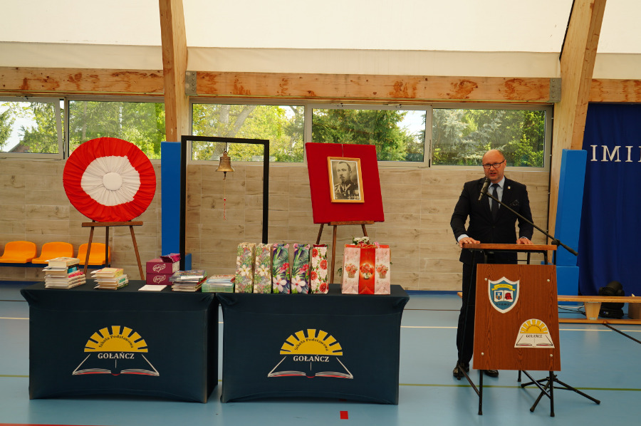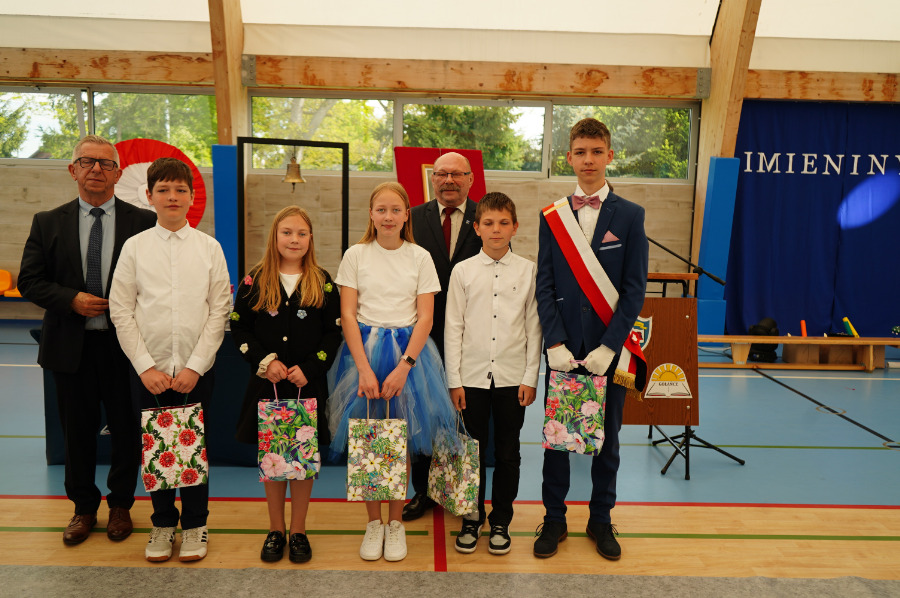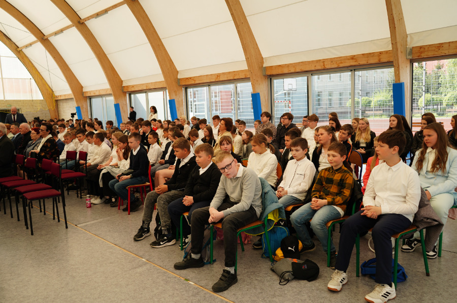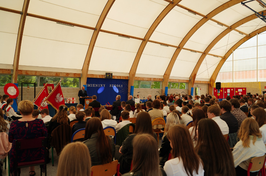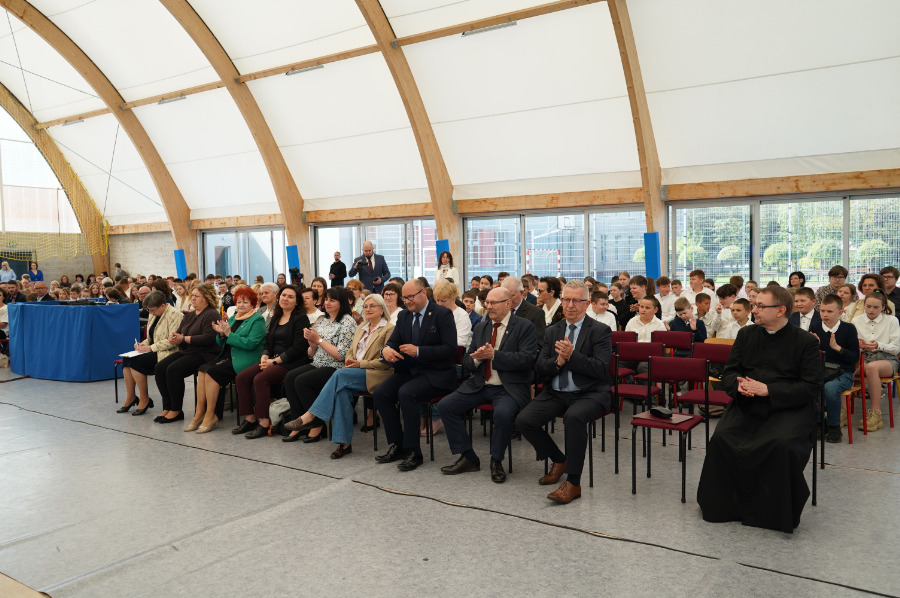 Kulminacyjnym punktem dnia była uroczysta akademia w hali sportowej z udziałem uczniów, nauczycieli, rodziców oraz zaproszonych gości, wśród których znaleźli się: