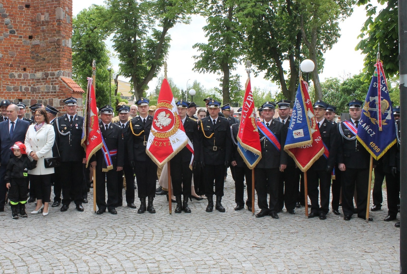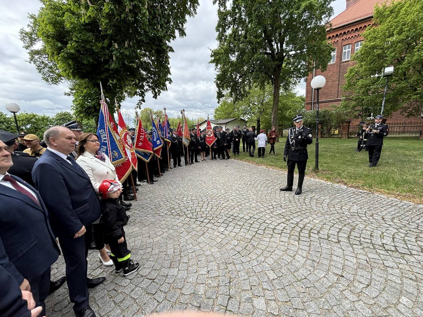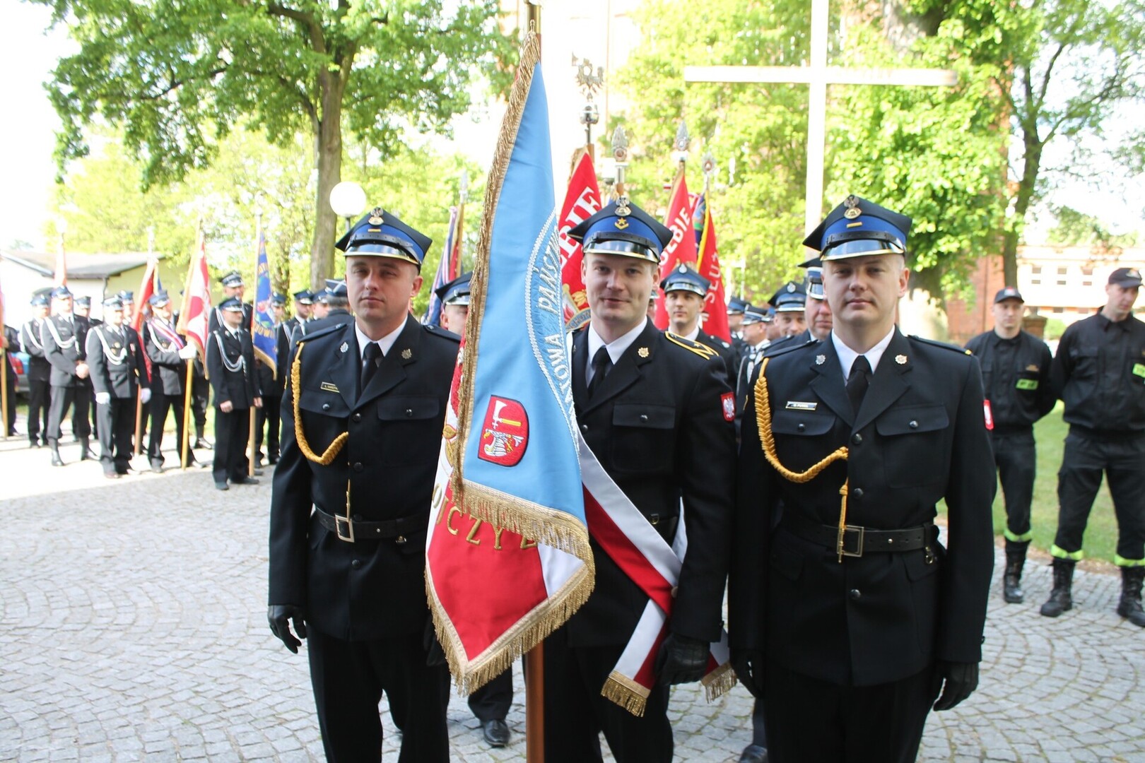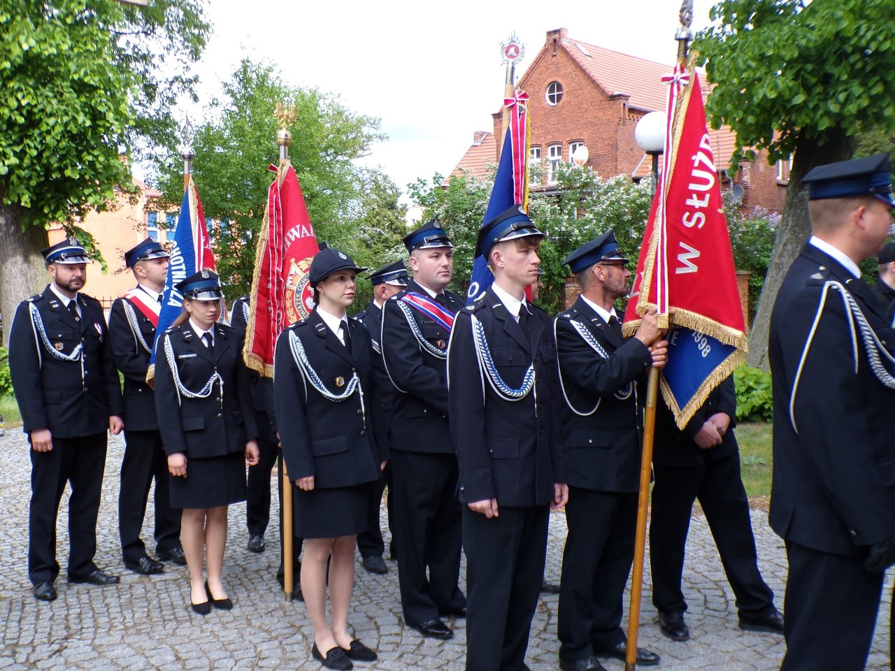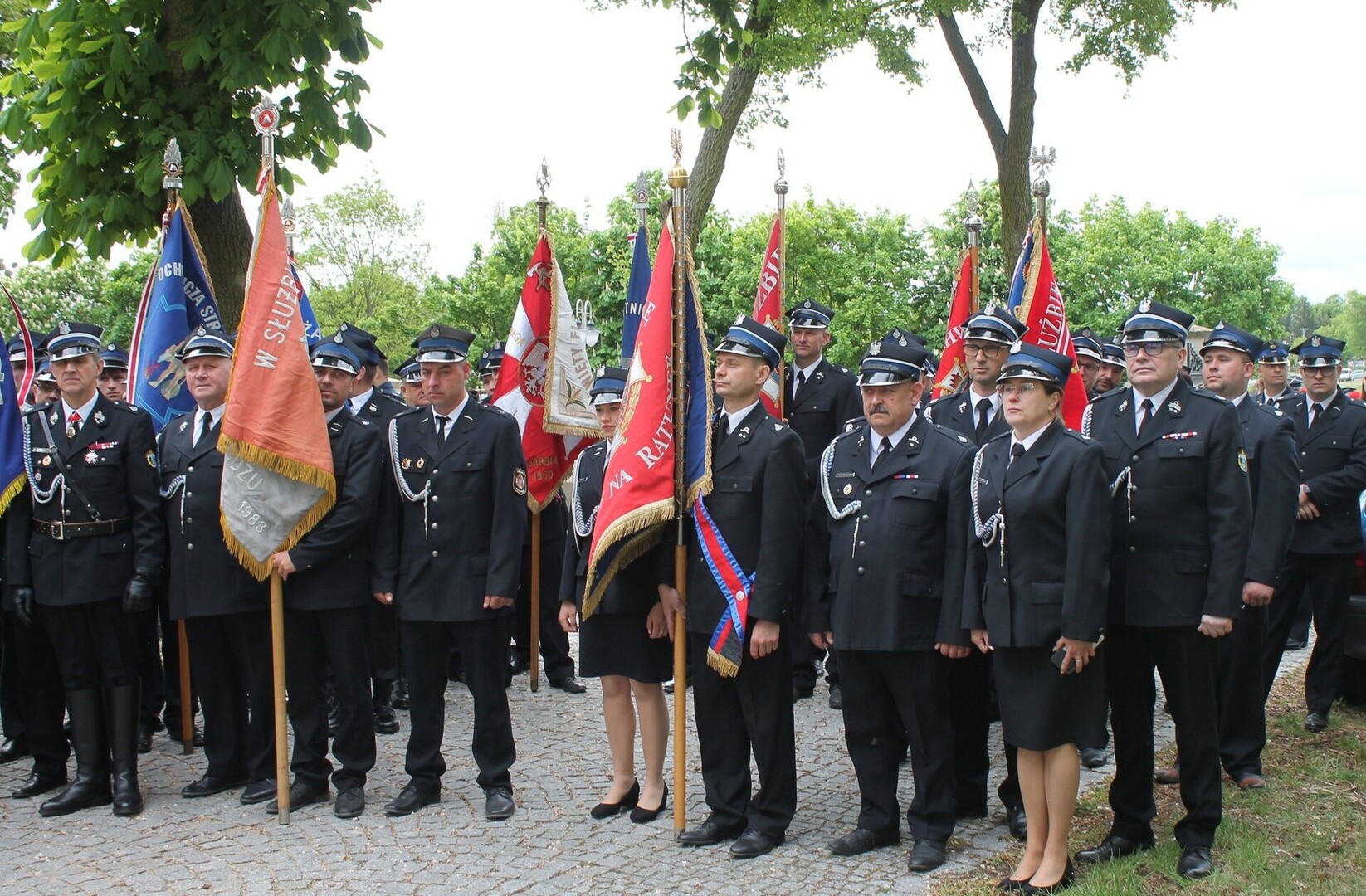 Uroczystość uświetniła obecność 13 pocztów sztandarowych reprezentujących jednostki OSP z całego powiatu, co podkreśliło jej podniosły i symboliczny charakter, a Strażacka Orkiestra Dęta ze Skoków zadbała o podniosłą oprawę muzyczną uroczystości.