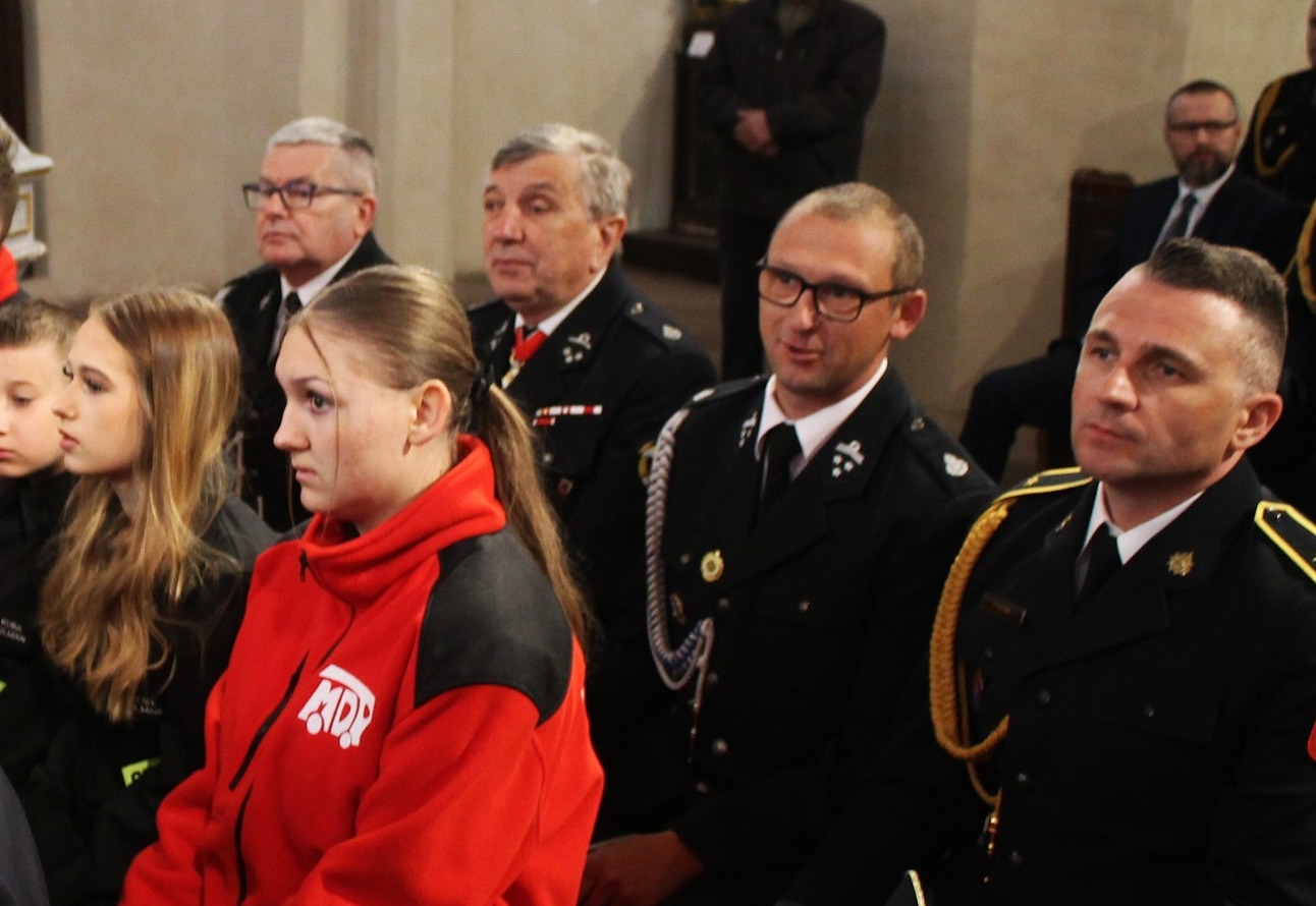 Uroczystość zgromadziła również strażacką społeczność: prezesów, naczelników, druhów i druhny z jednostek OSP, funkcjonariuszy PSP oraz Młodzieżowe Drużyny Pożarnicze.