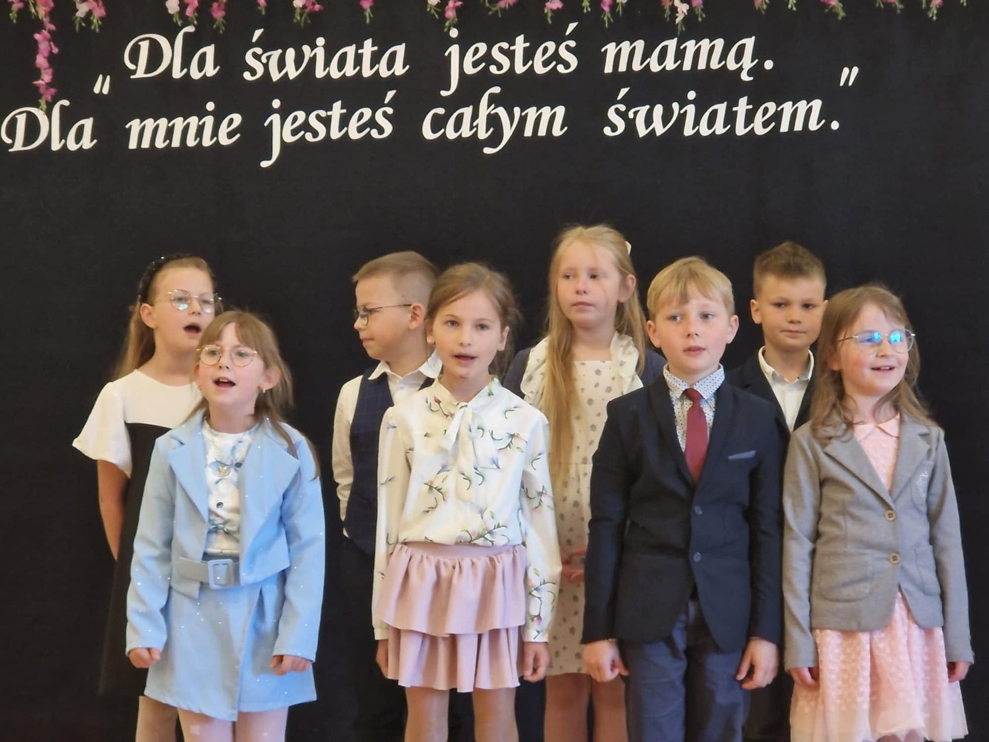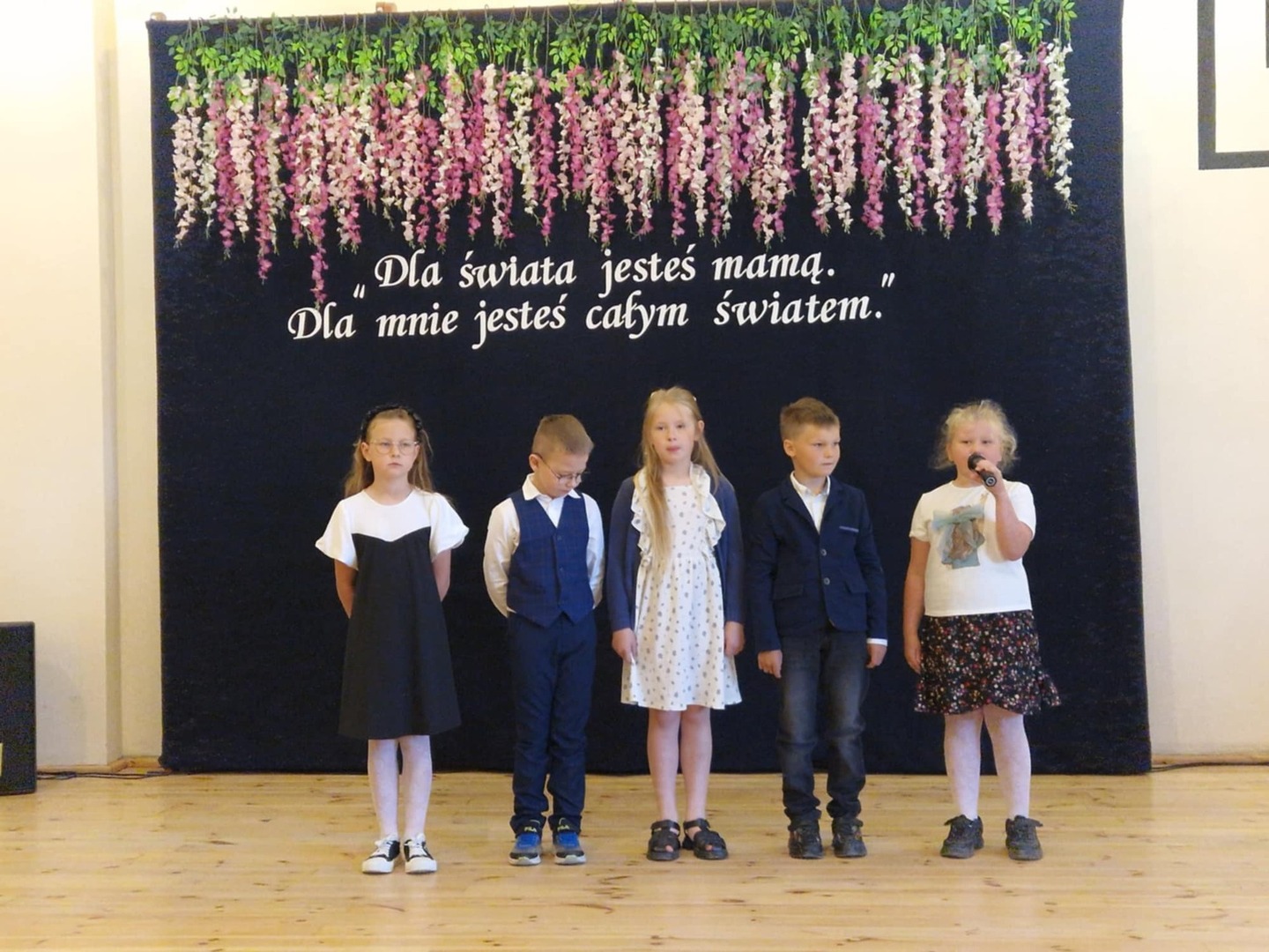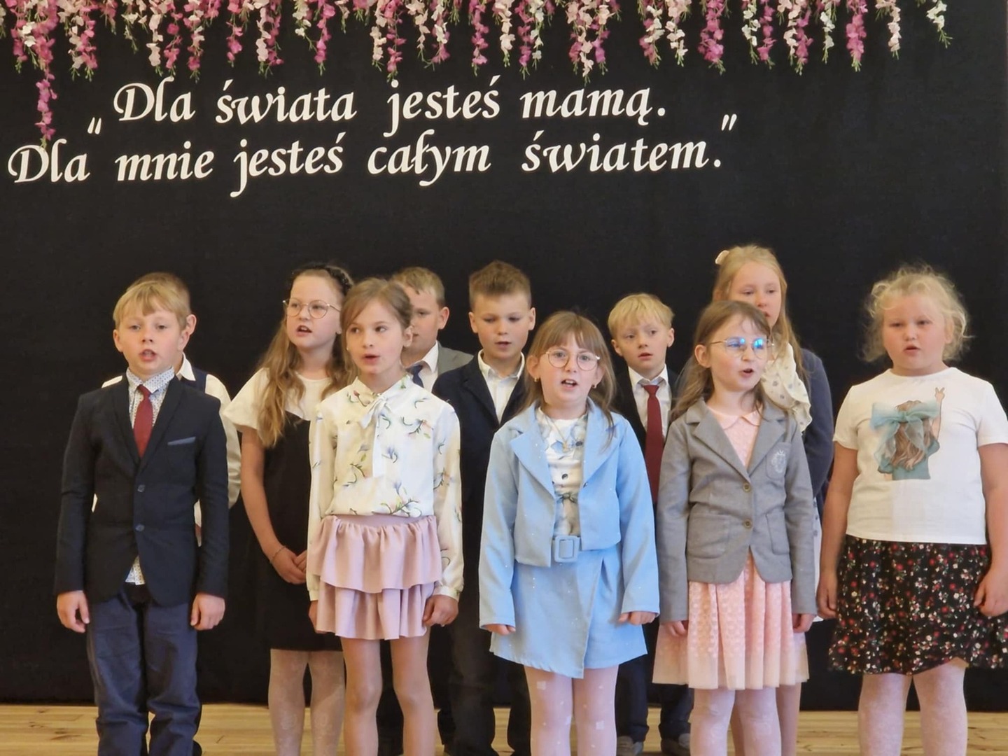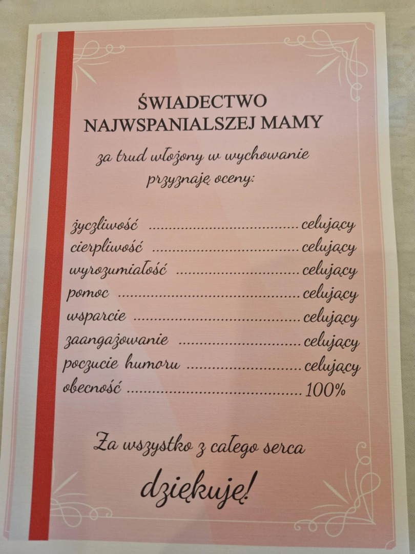 Dzieci recytowały wiersze, śpiewały piosenki, tańczyły – wypełniając salę niezwykłą atmosferą. Na zakończenie każda mama otrzymała własnoręcznie wykonaną laurkę i symboliczne „świadectwo” z najlepszymi ocenami od swojego dziecka.