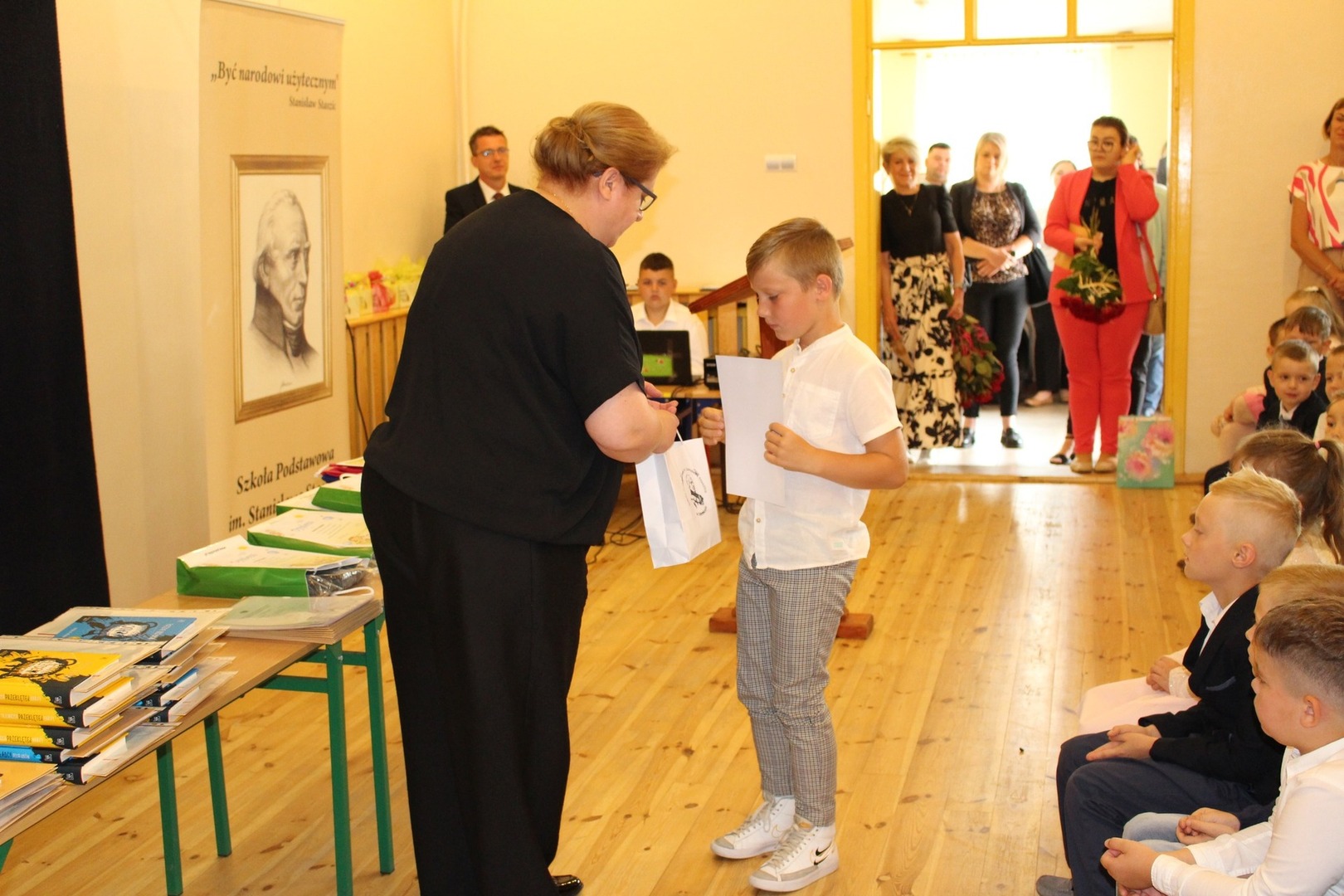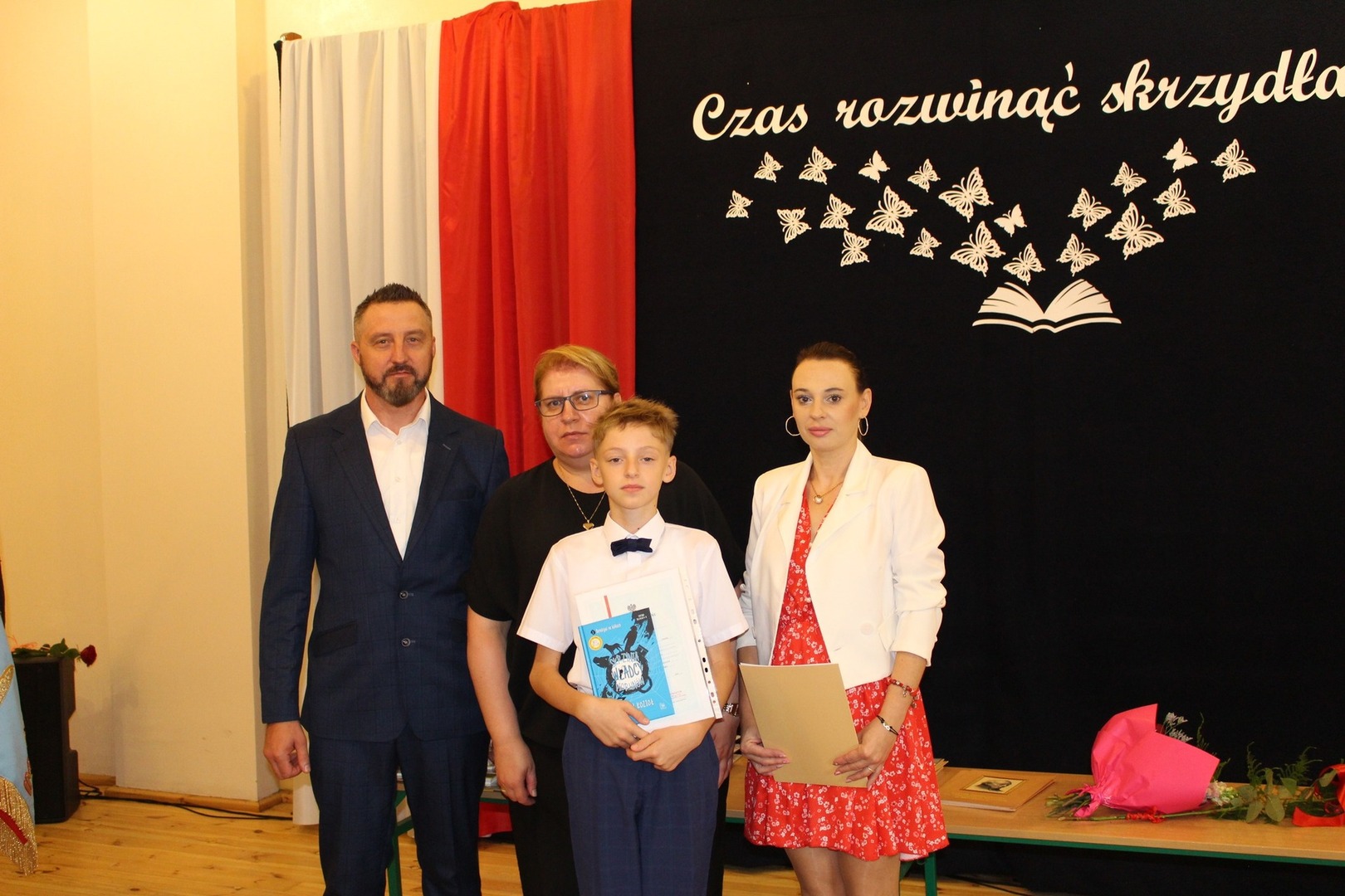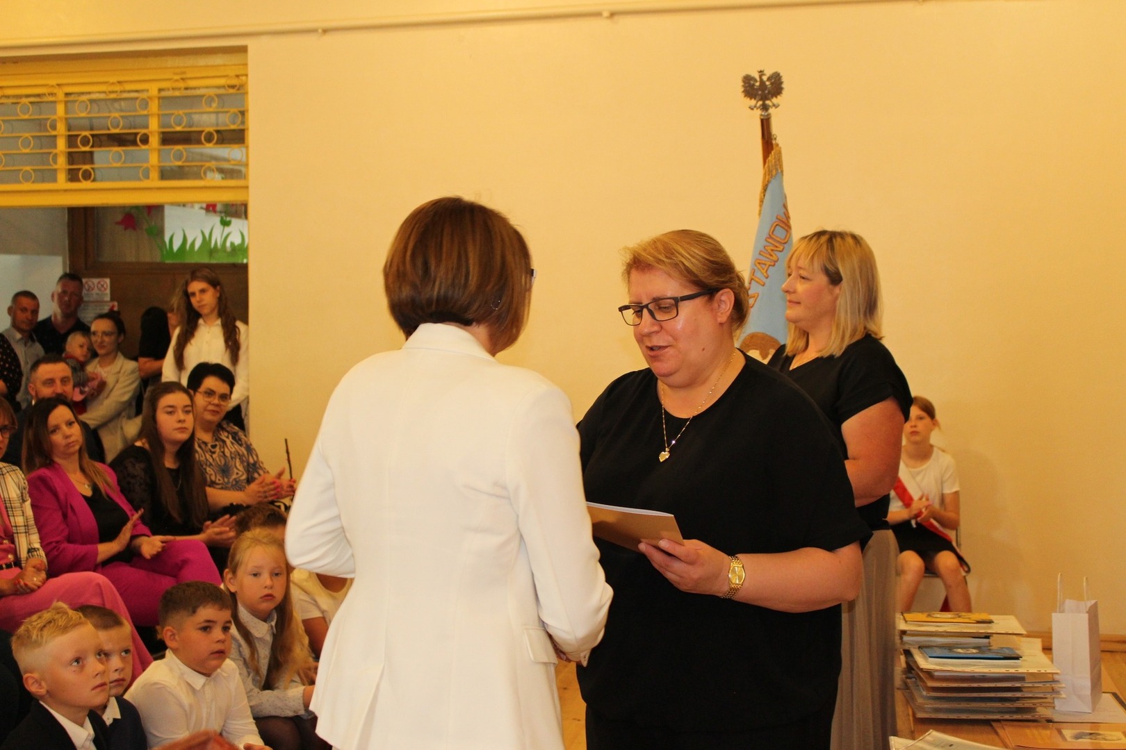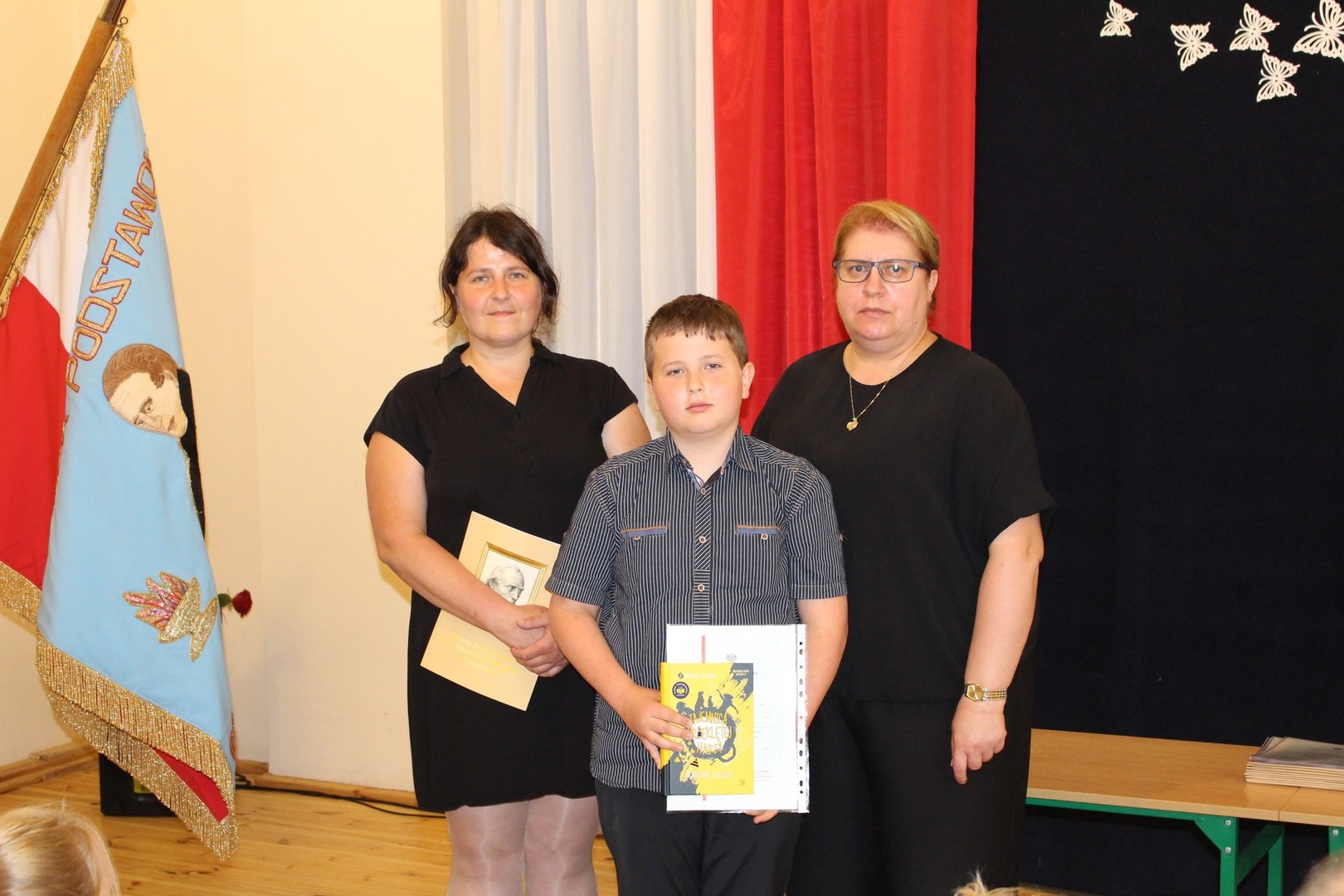 Podczas uroczystości wręczono świadectwa z wyróżnieniem, nagrody, dyplomy i listy gratulacyjne. Wyróżniono również uczniów oszczędzających w SKO oraz ucznia z 100% frekwencją – Karola Gierczaka.