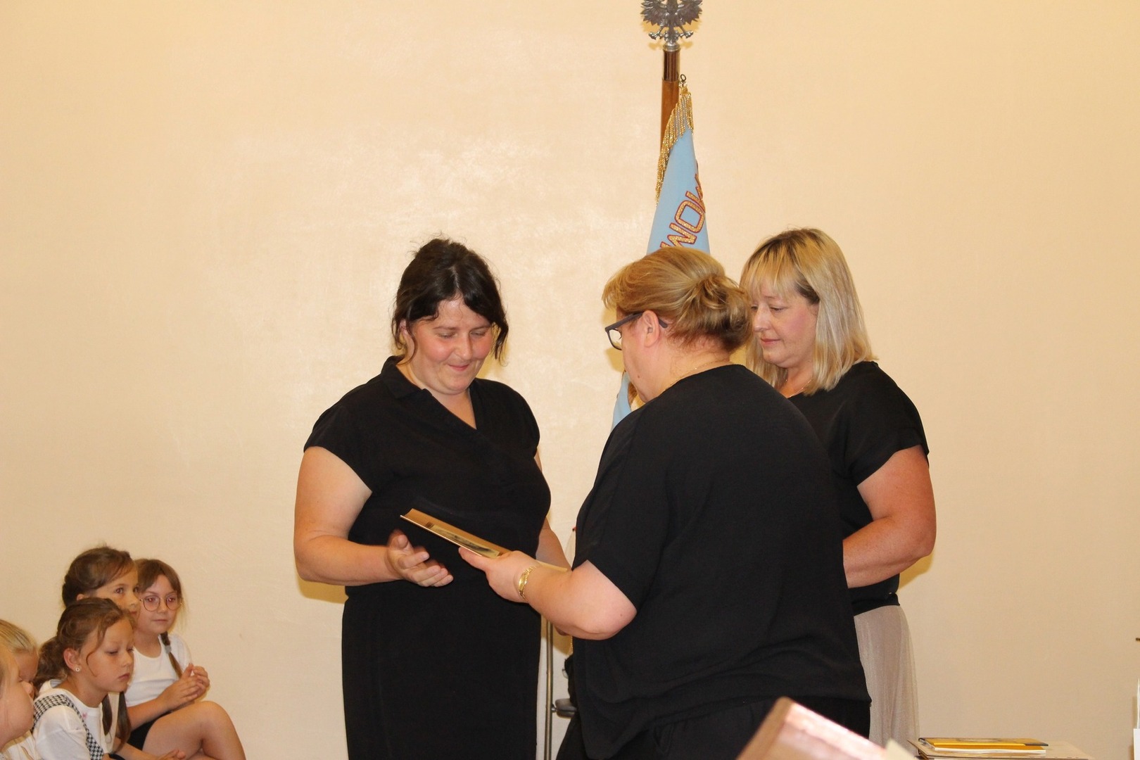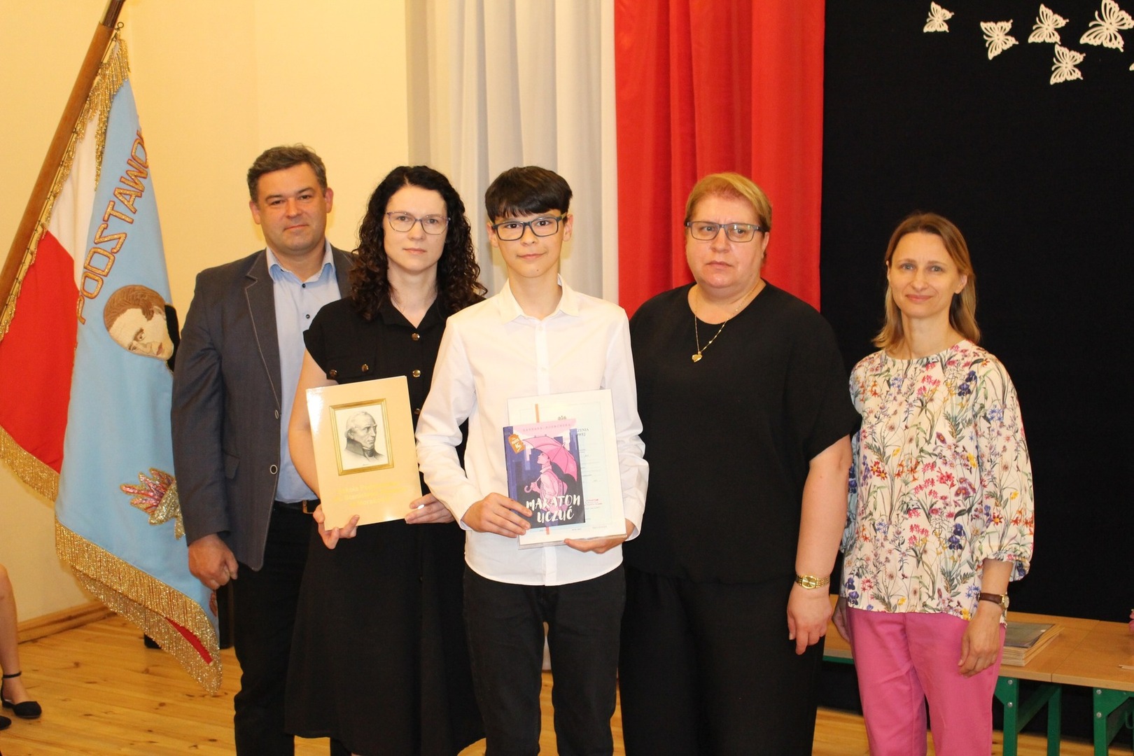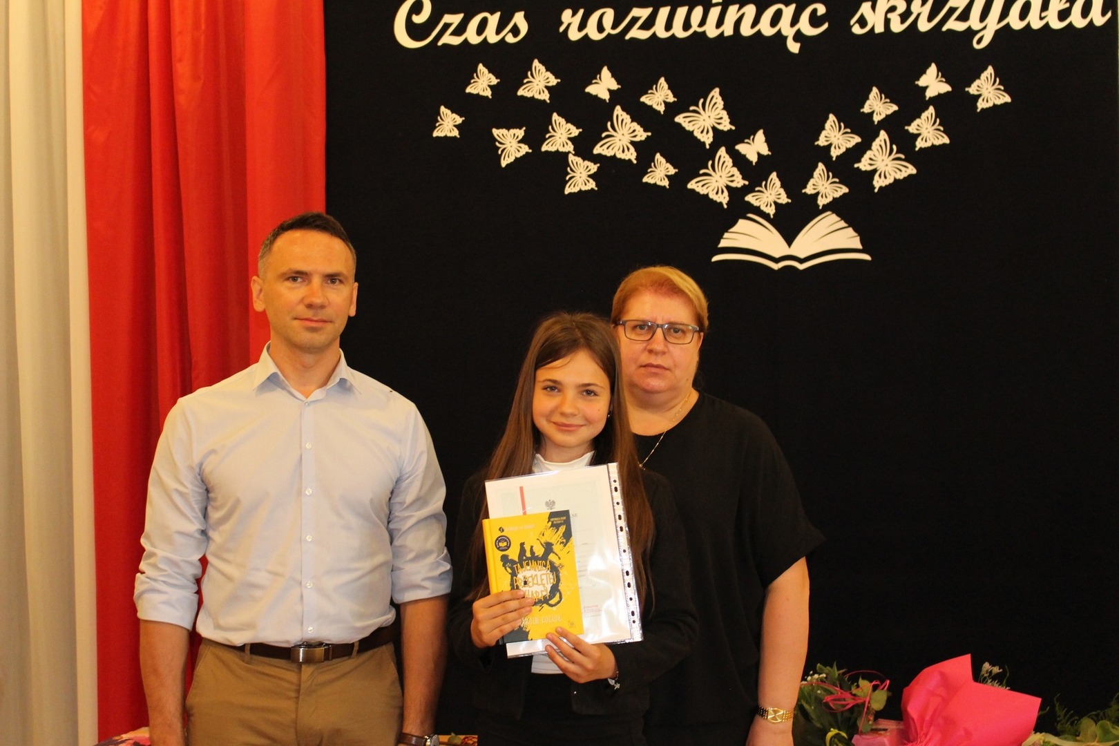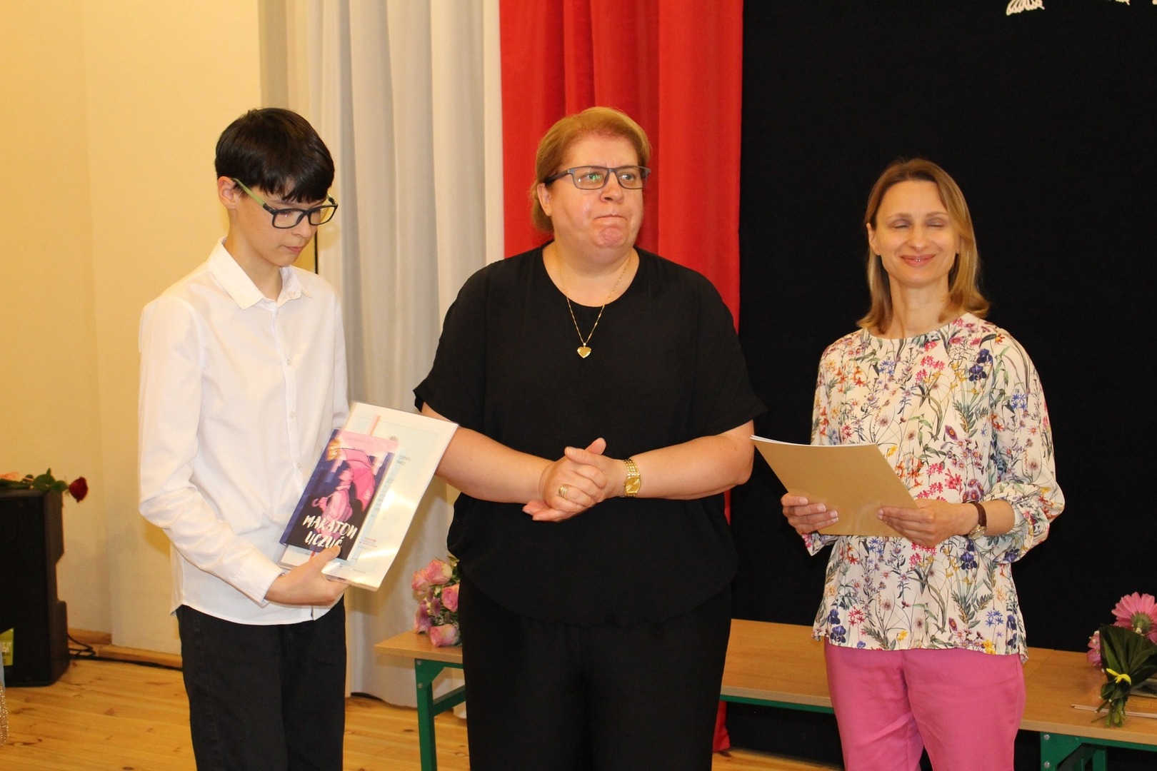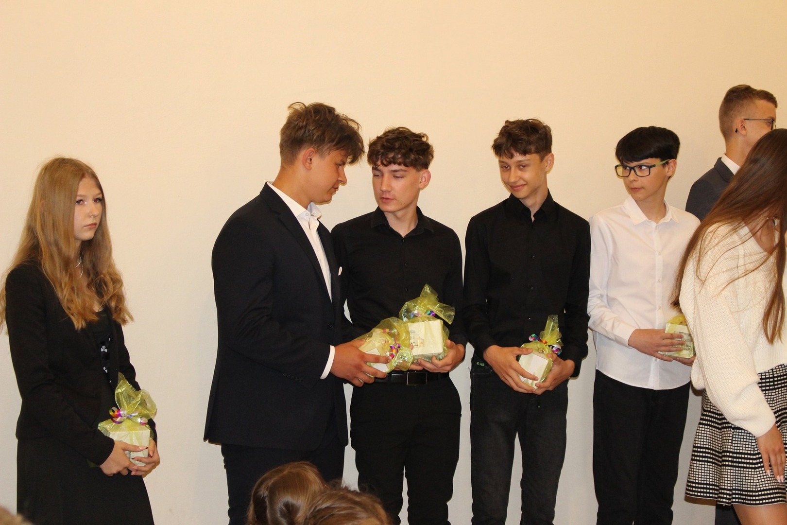 Podczas uroczystości wręczono świadectwa z wyróżnieniem, nagrody, dyplomy i listy gratulacyjne. Wyróżniono również uczniów oszczędzających w SKO oraz ucznia z 100% frekwencją – Karola Gierczaka.