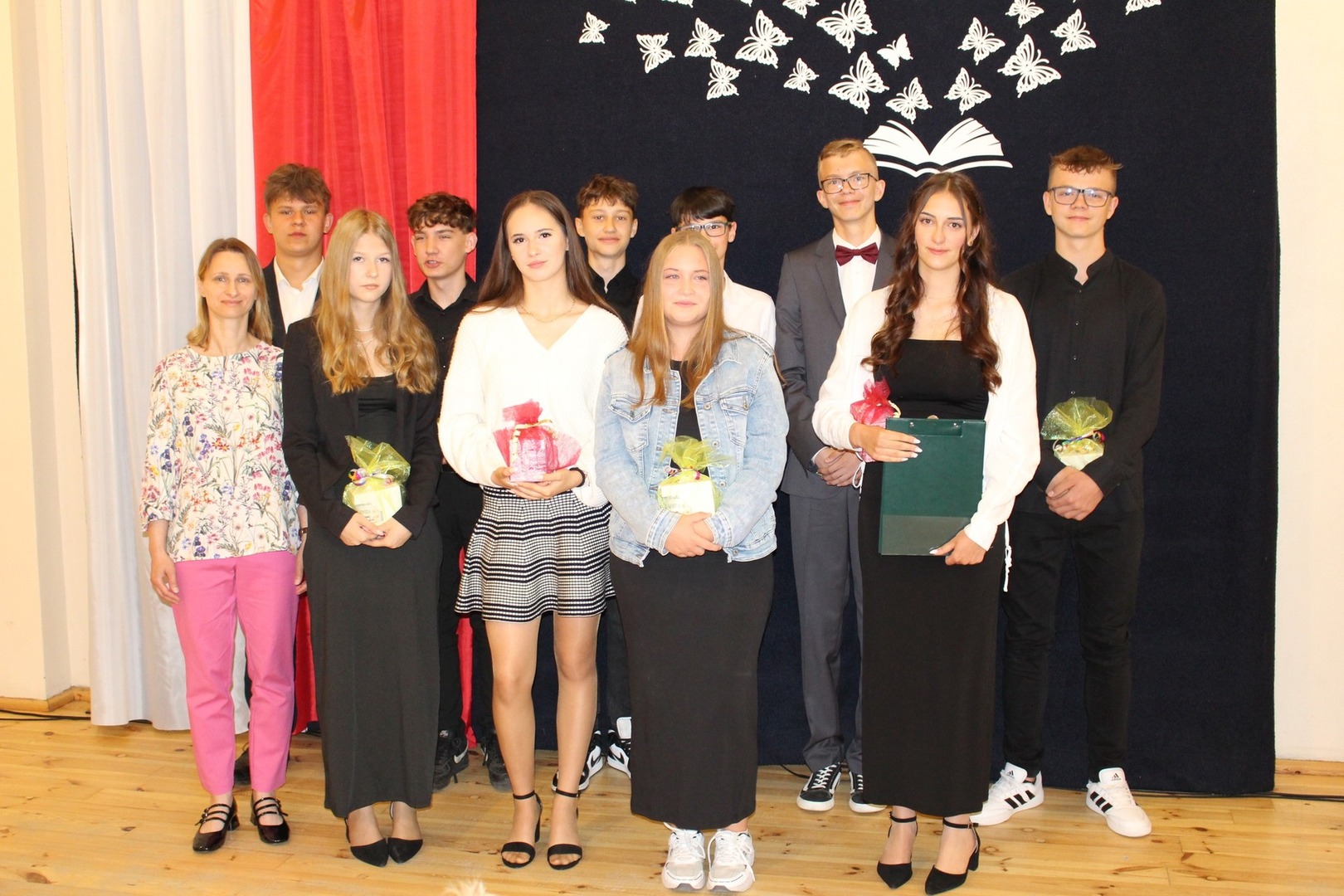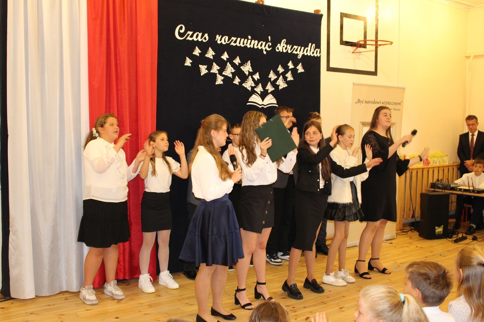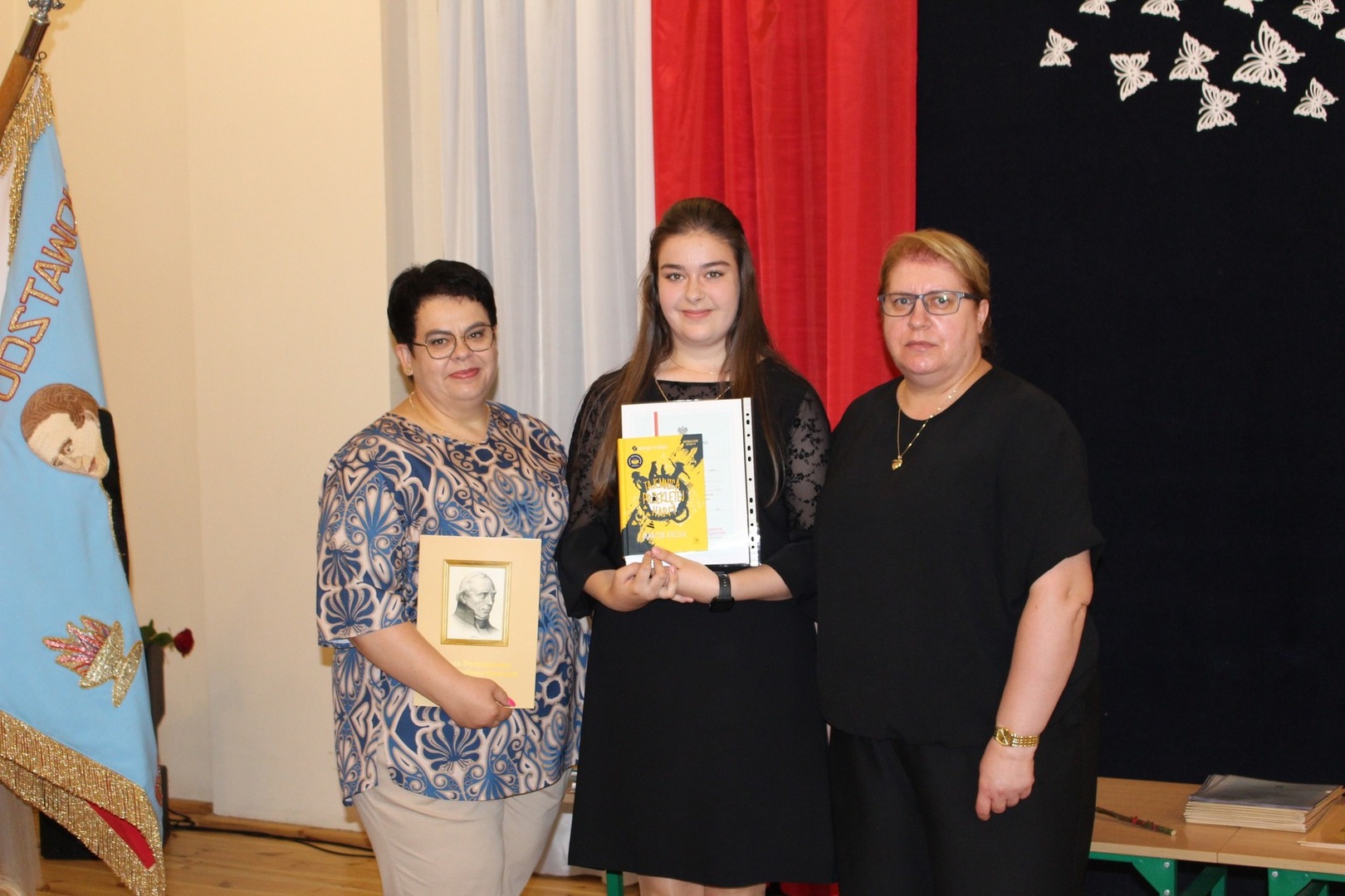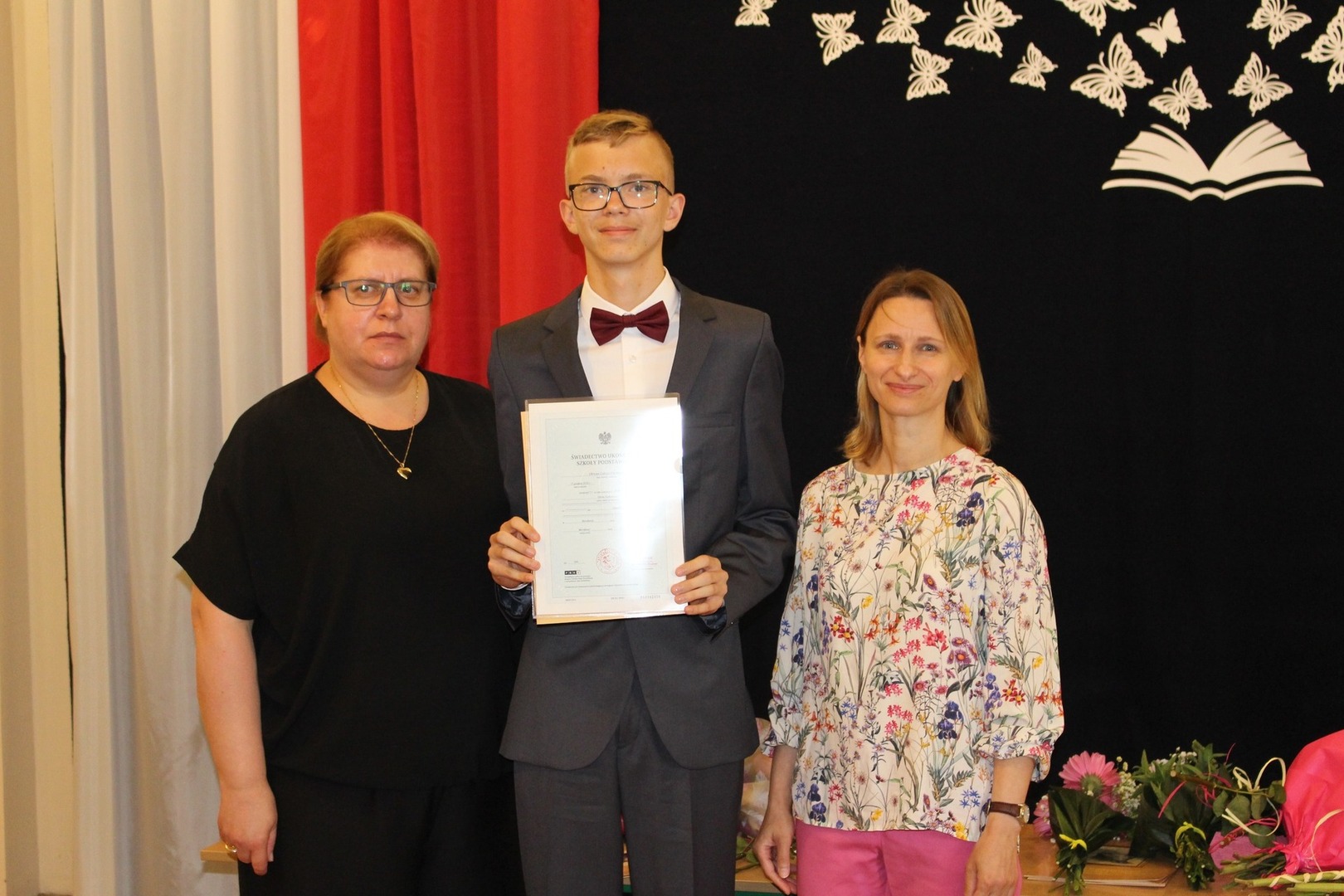 Podczas uroczystości wręczono świadectwa z wyróżnieniem, nagrody, dyplomy i listy gratulacyjne. Wyróżniono również uczniów oszczędzających w SKO oraz ucznia z 100% frekwencją – Karola Gierczaka.