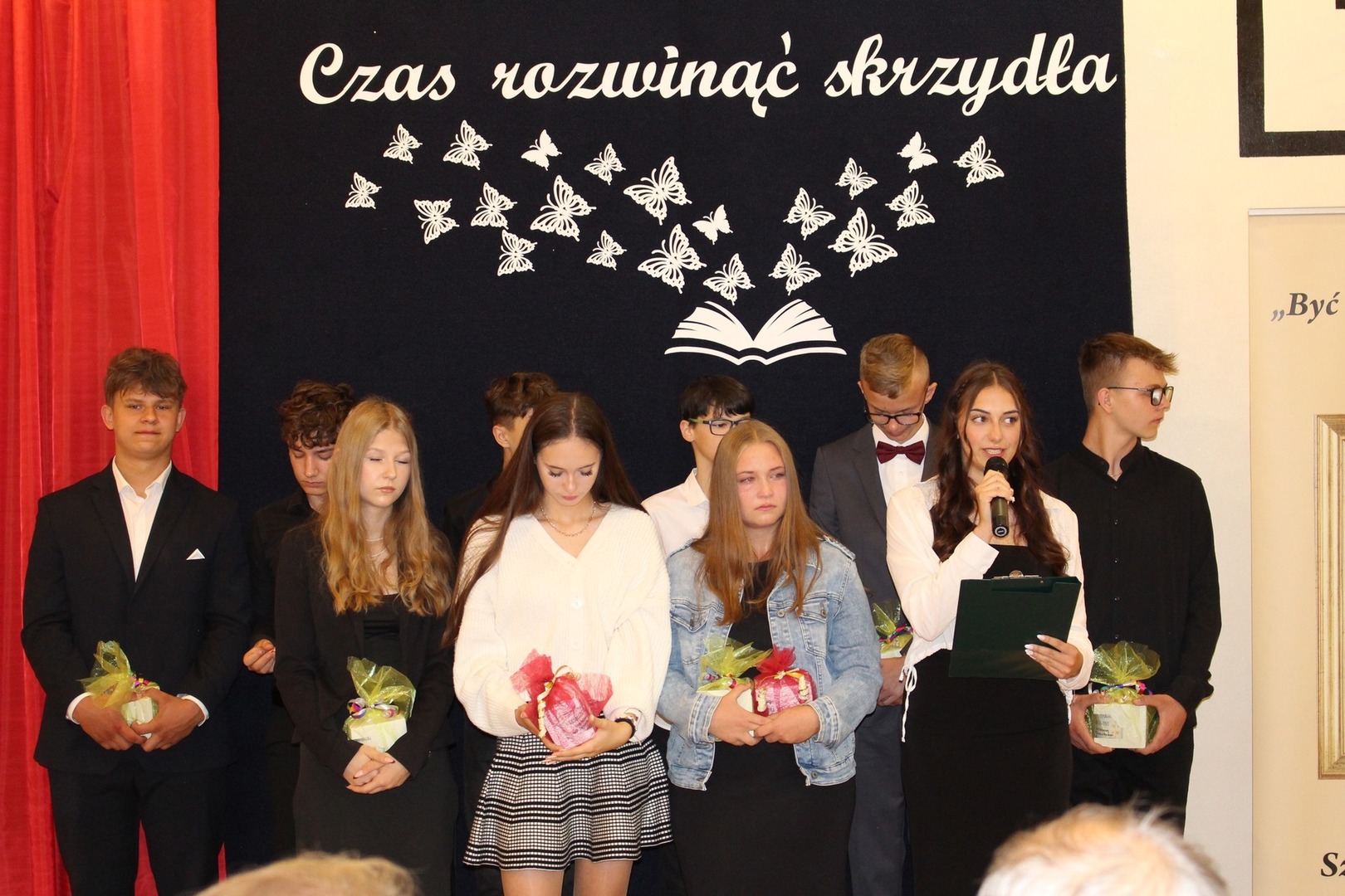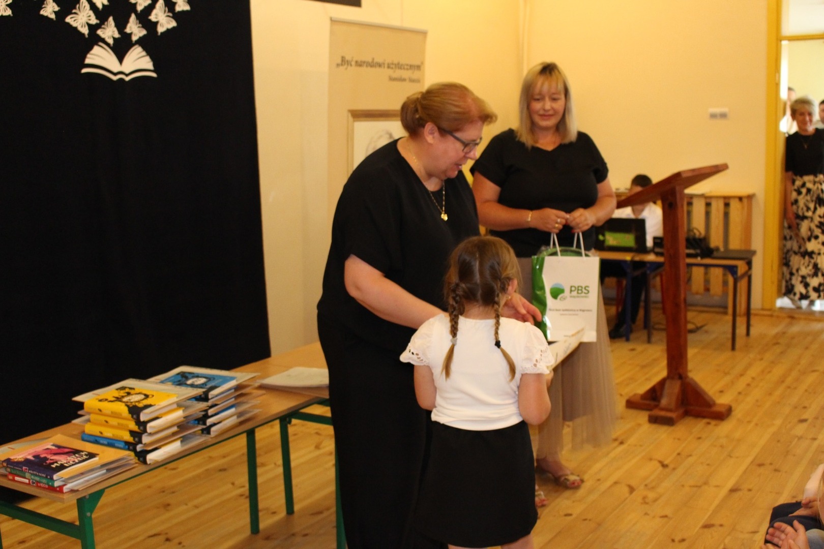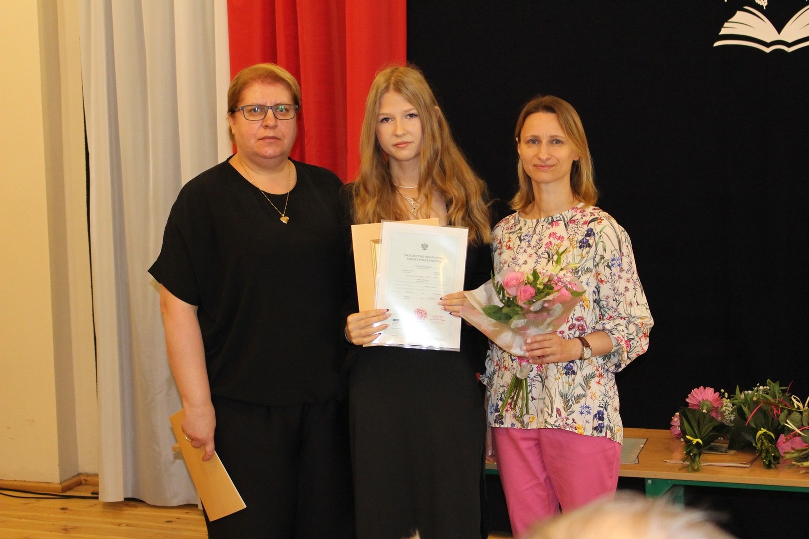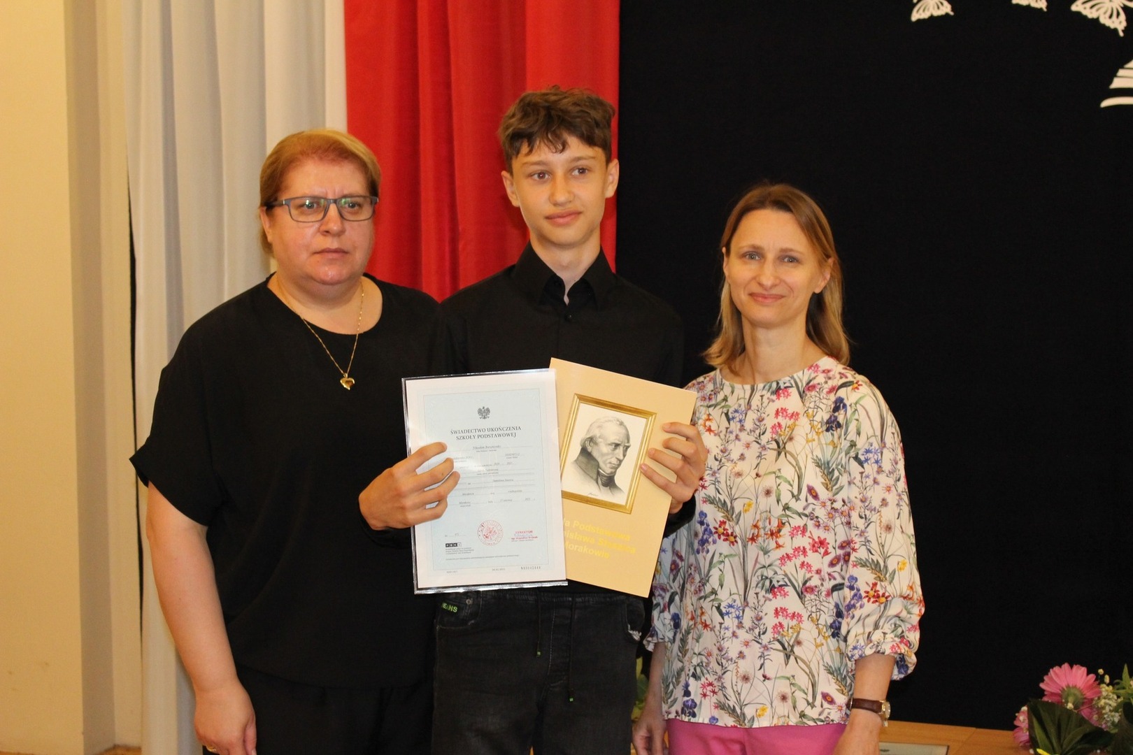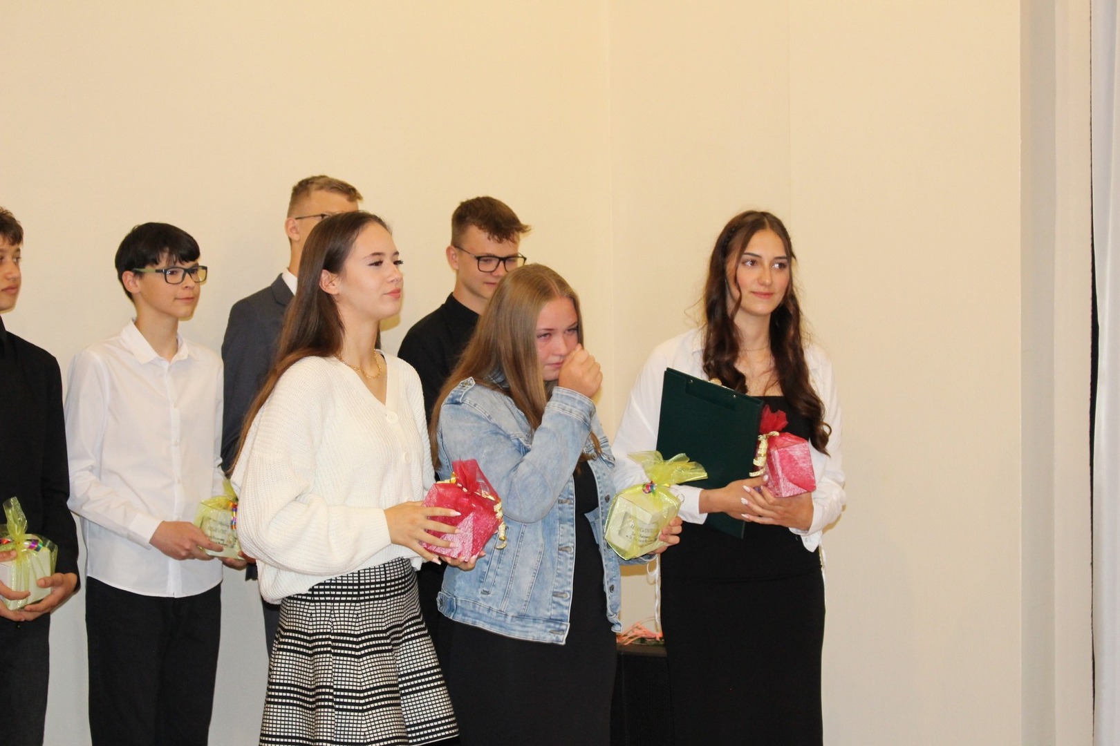 Podczas uroczystości wręczono świadectwa z wyróżnieniem, nagrody, dyplomy i listy gratulacyjne. Wyróżniono również uczniów oszczędzających w SKO oraz ucznia z 100% frekwencją – Karola Gierczaka.