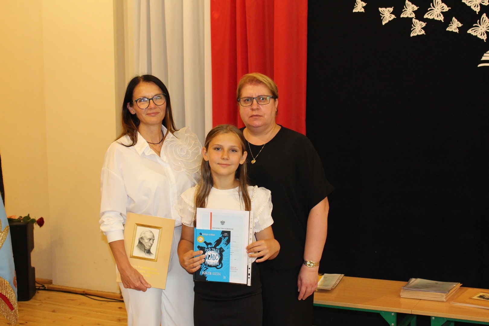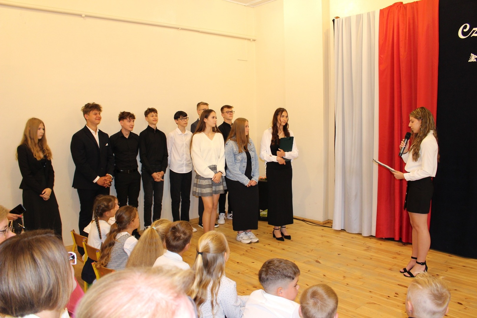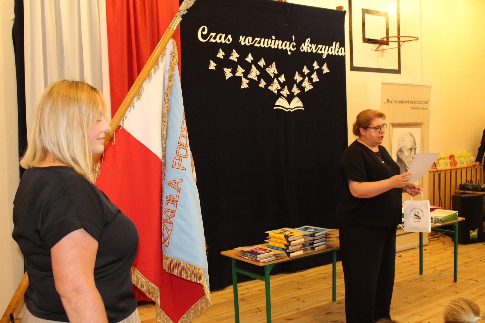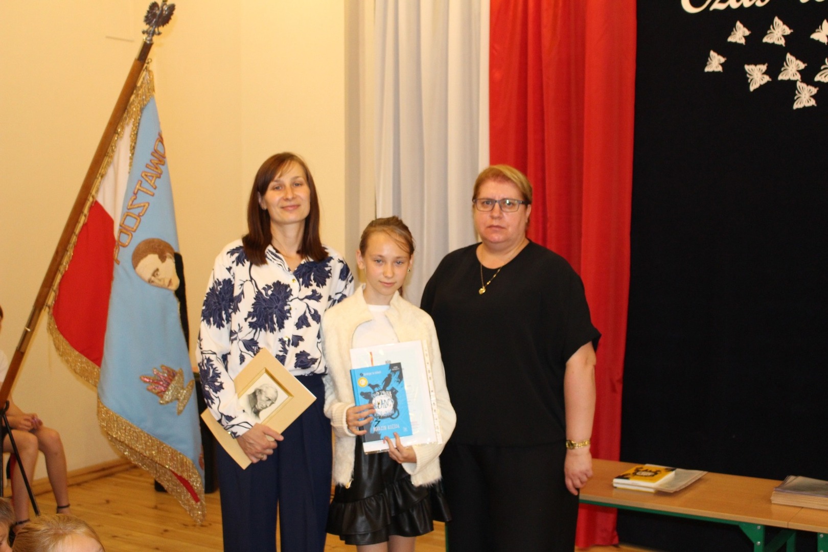 Podczas uroczystości wręczono świadectwa z wyróżnieniem, nagrody, dyplomy i listy gratulacyjne. Wyróżniono również uczniów oszczędzających w SKO oraz ucznia z 100% frekwencją – Karola Gierczaka.
