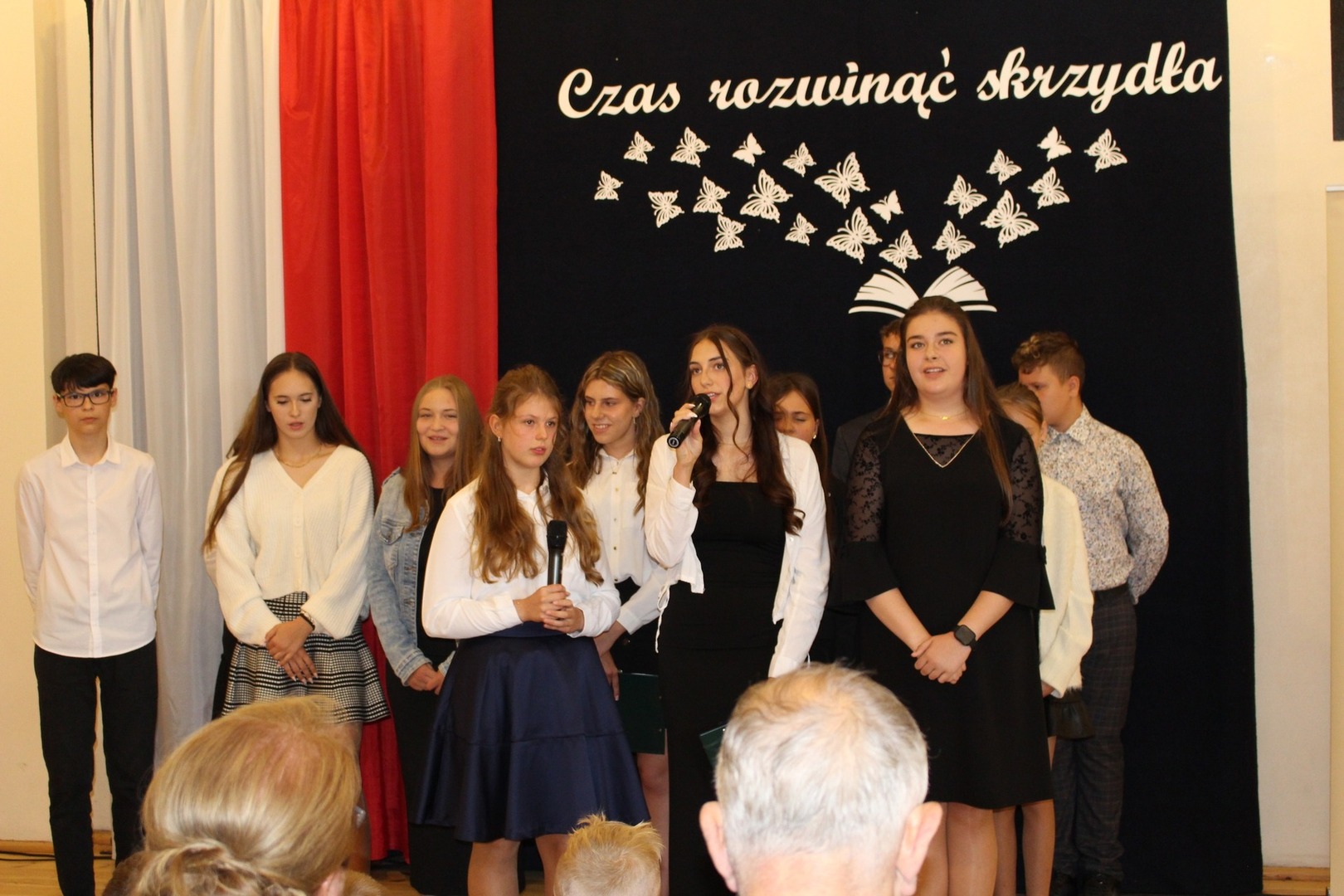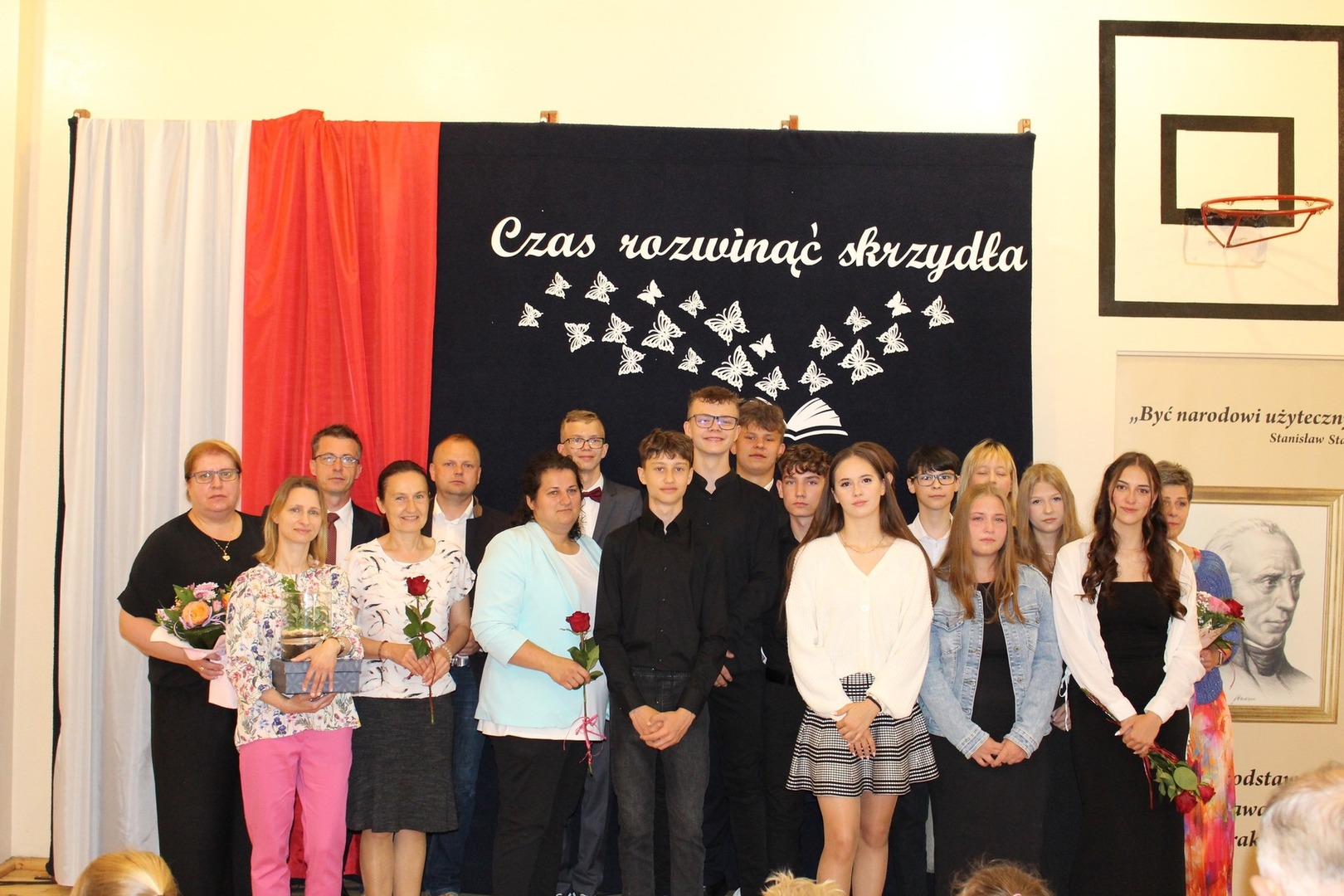 Uczniowie zaprezentowali swoje talenty taneczne, wokalne i recytatorskie w programie artystycznym przygotowanym pod kierunkiem pań: Anety Kolińskiej-Jurek, Lucyny Tomkowiak i Mileny Łukaszewskiej. Klasa VII pożegnała ósmoklasistów drobnymi upominkami, a absolwenci z kolei podziękowali wszystkim za wspólne lata – wzruszającym słowem i prezentacją multimedialną.