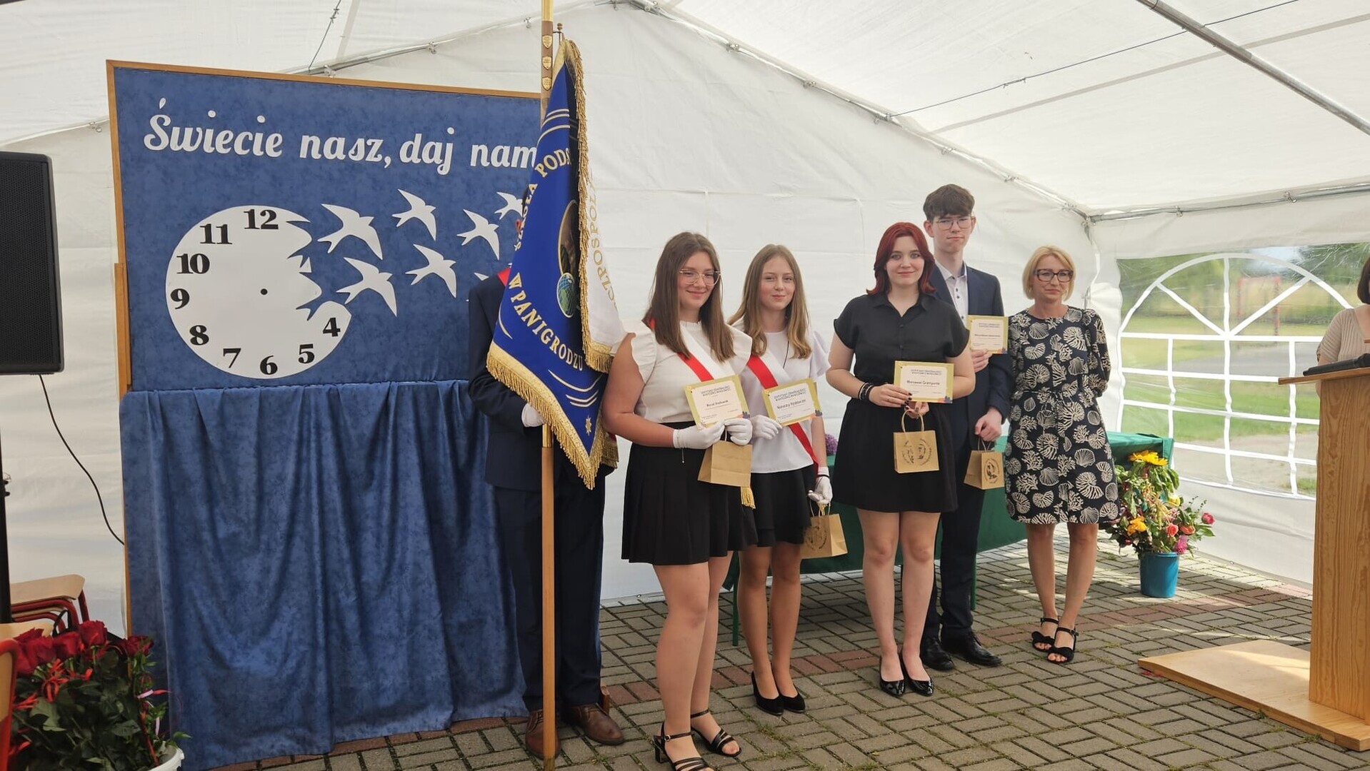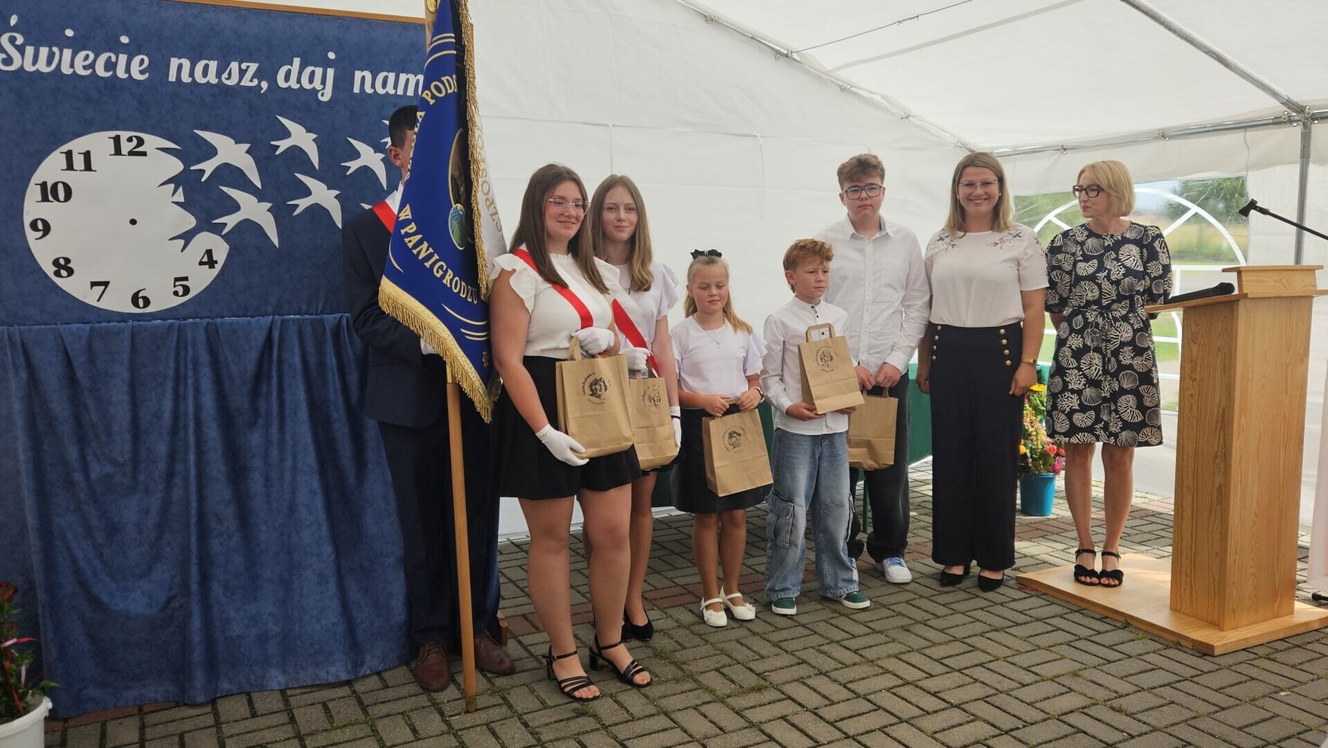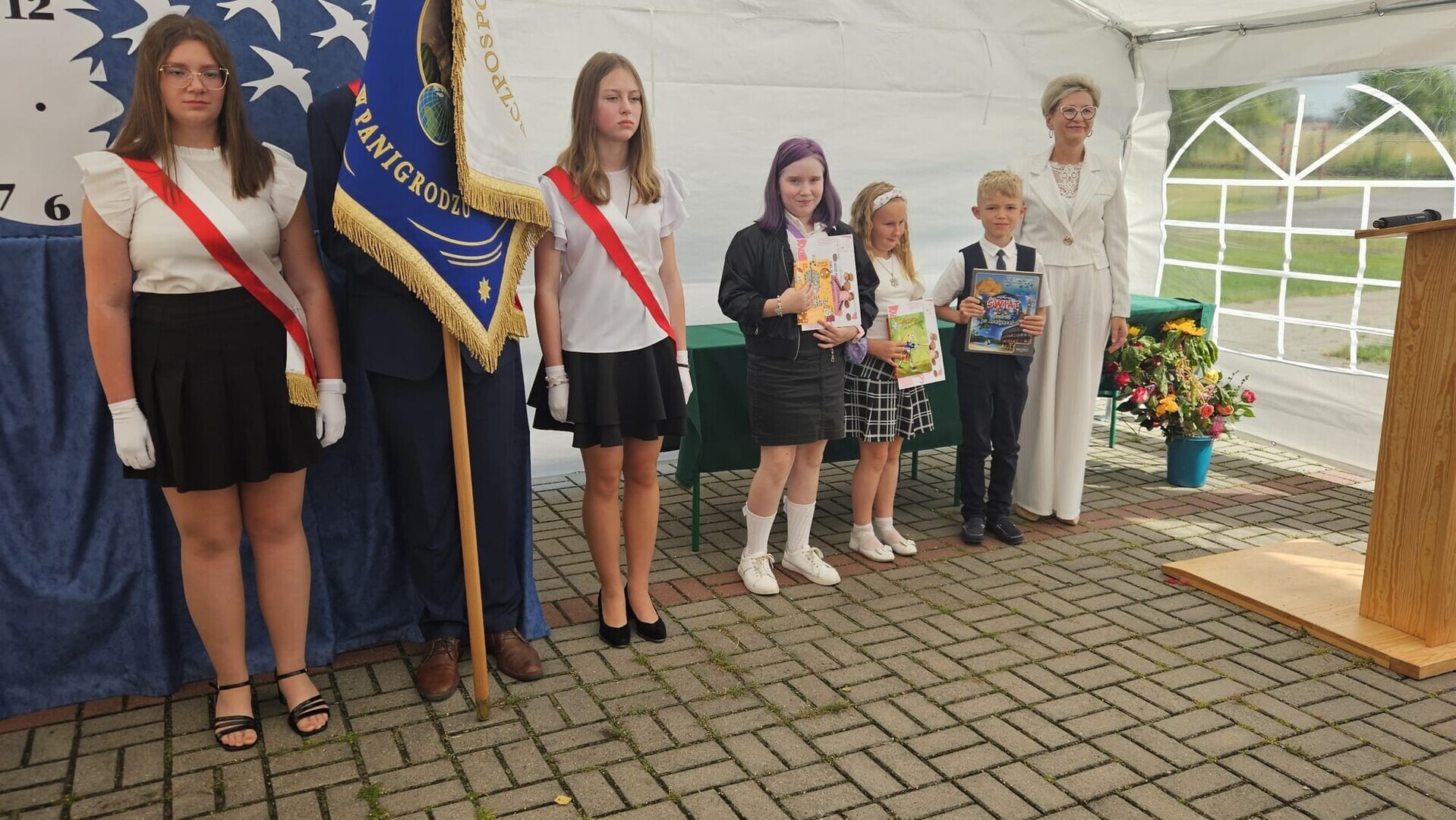 27 czerwca br. w Szkole Podstawowej w Panigrodzu punktualnie o godz. 9.00 uczniowie, nauczyciele, pracownicy obsługi, rodzice oraz zaproszeni goście zebrali się przed budynkiem szkoły, by wspólnie uroczyście zakończyć rok szkolny 2024/2025.