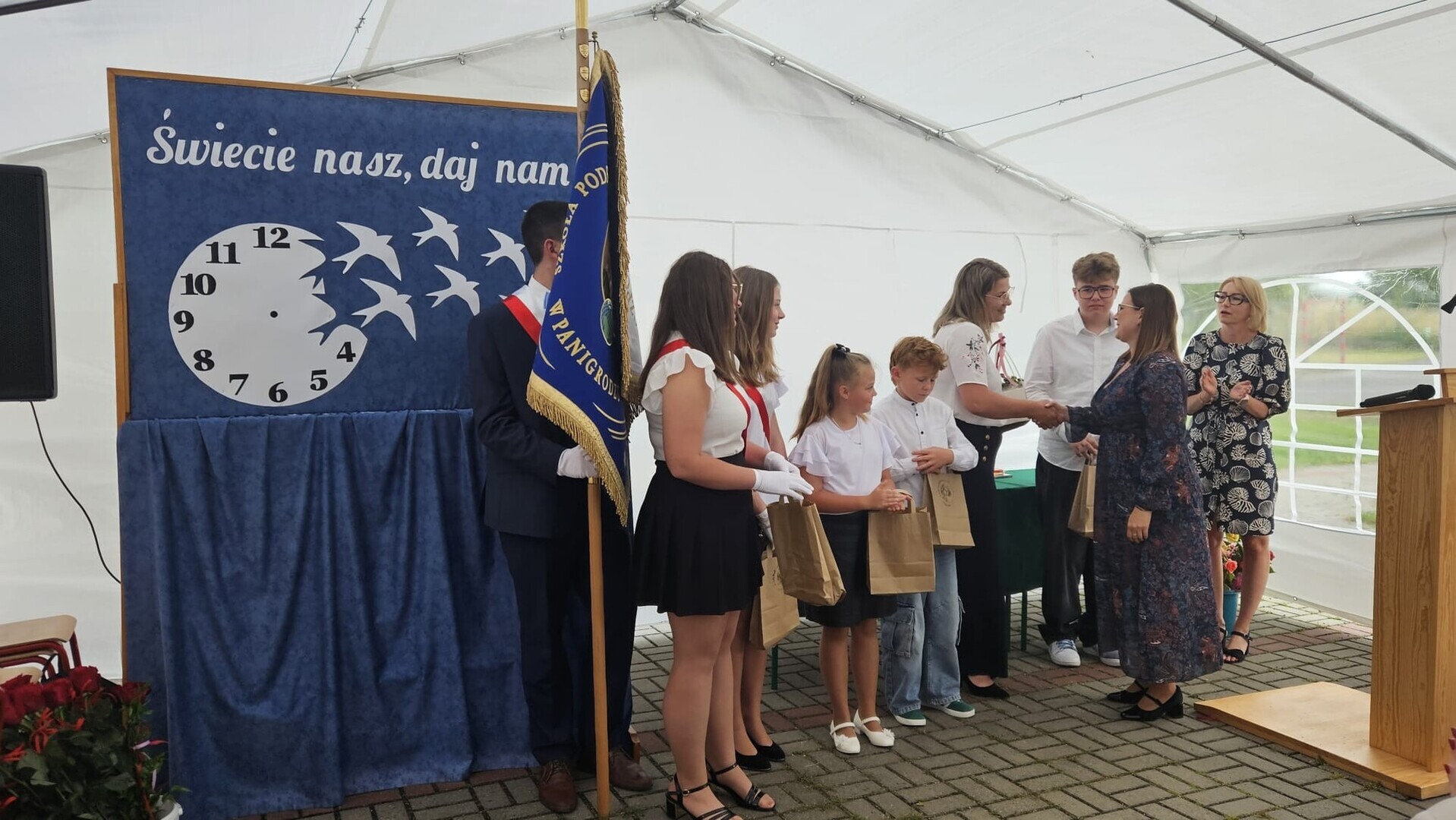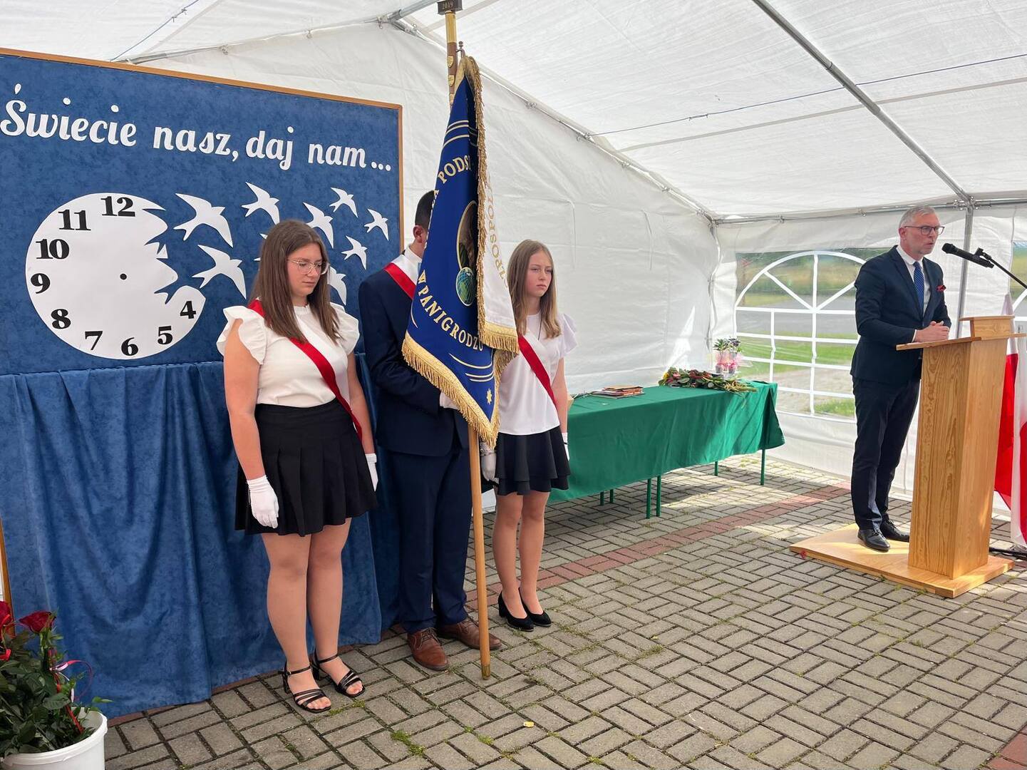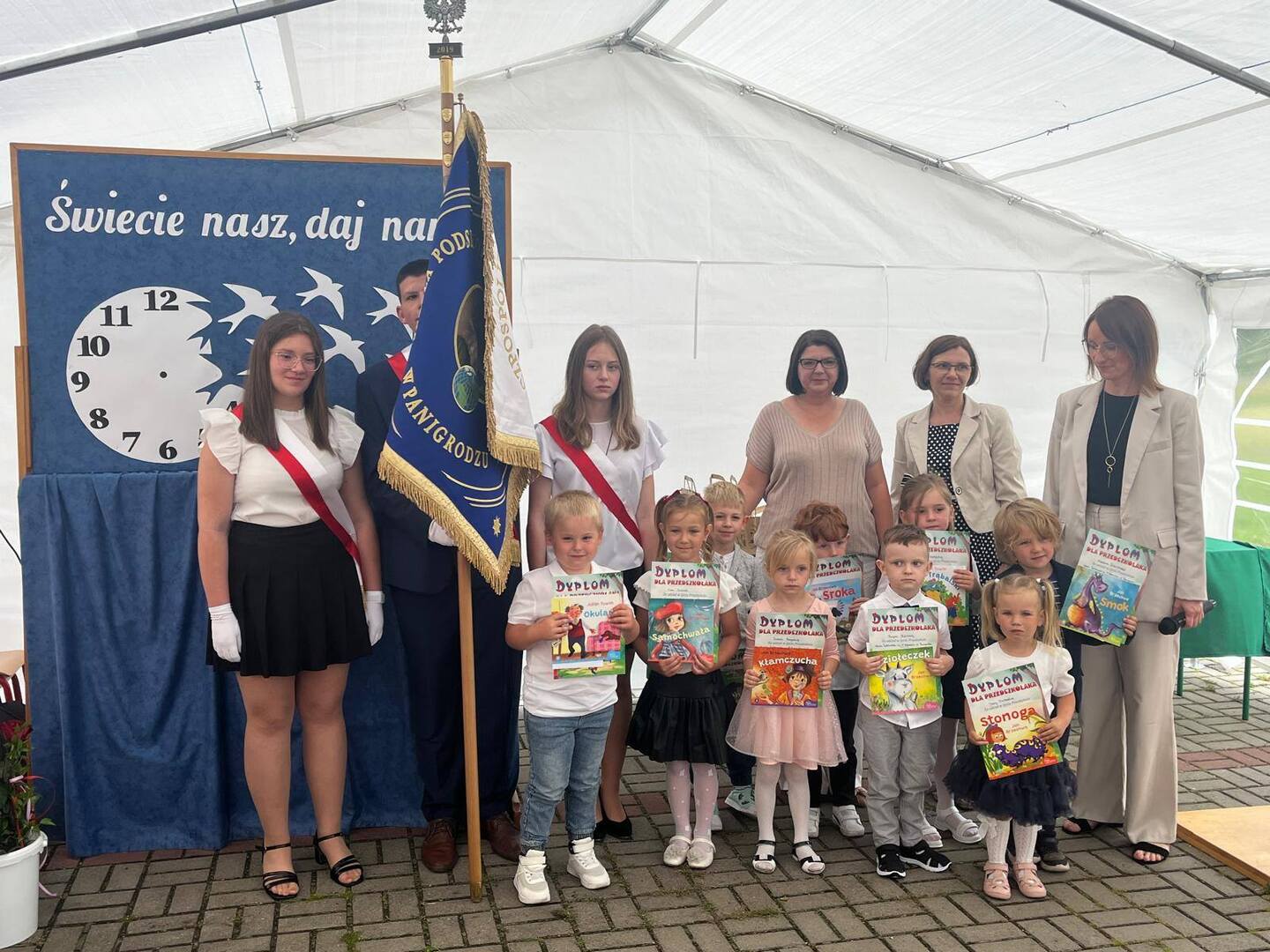 27 czerwca br. w Szkole Podstawowej w Panigrodzu punktualnie o godz. 9.00 uczniowie, nauczyciele, pracownicy obsługi, rodzice oraz zaproszeni goście zebrali się przed budynkiem szkoły, by wspólnie uroczyście zakończyć rok szkolny 2024/2025.