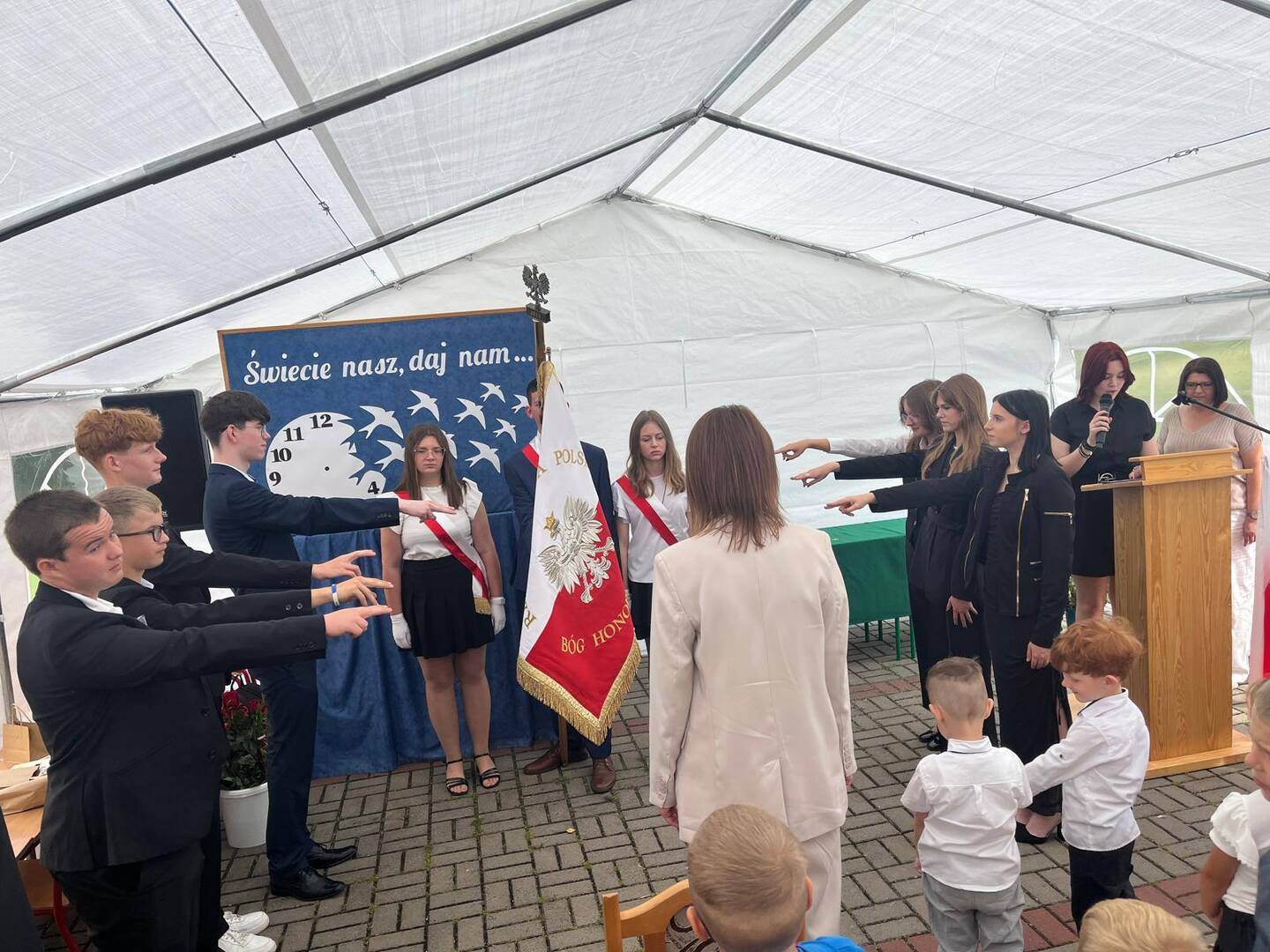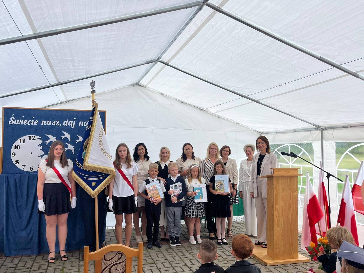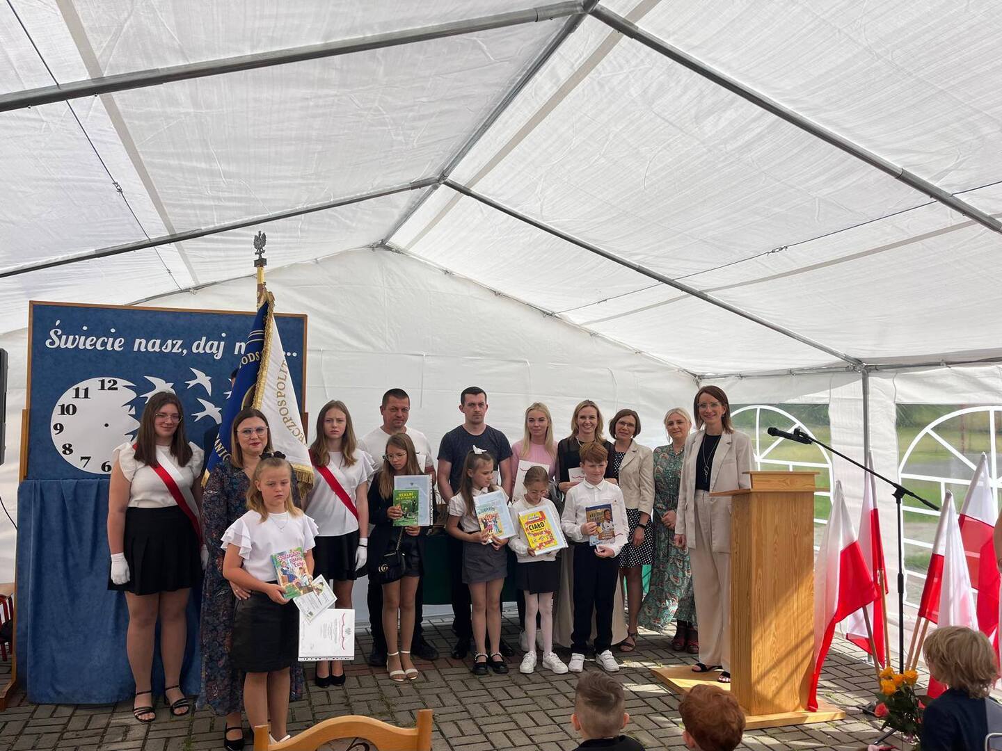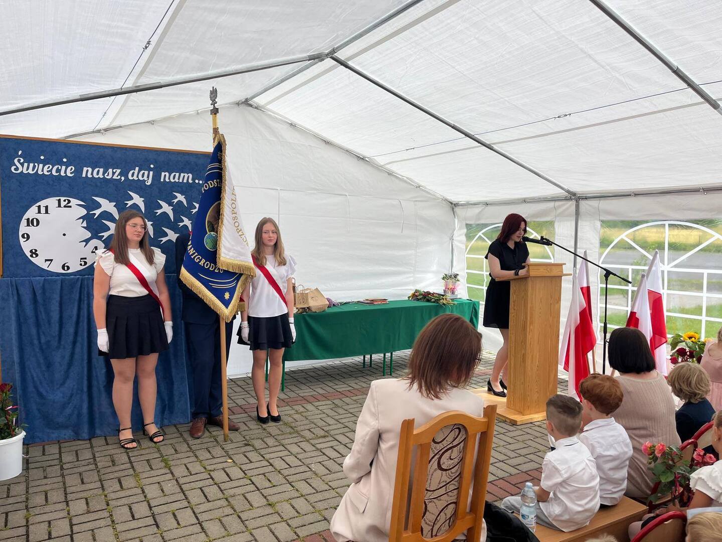 Wszystkich zgromadzonych serdecznie powitała Dyrektorka szkoły Agnieszka Przybysz. Podczas apelu wręczono świadectwa, dyplomy oraz nagrody uczniom wyróżniającym się w nauce i zaangażowaniu w życie szkoły. Dyrektor podziękował również osobom, które aktywnie wspierały realizację szkolnych wydarzeń.