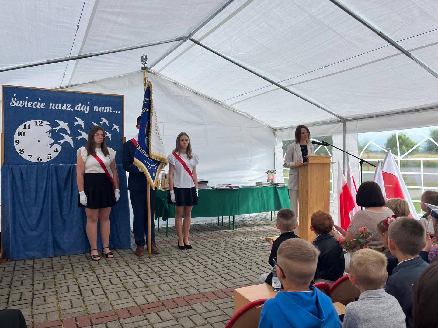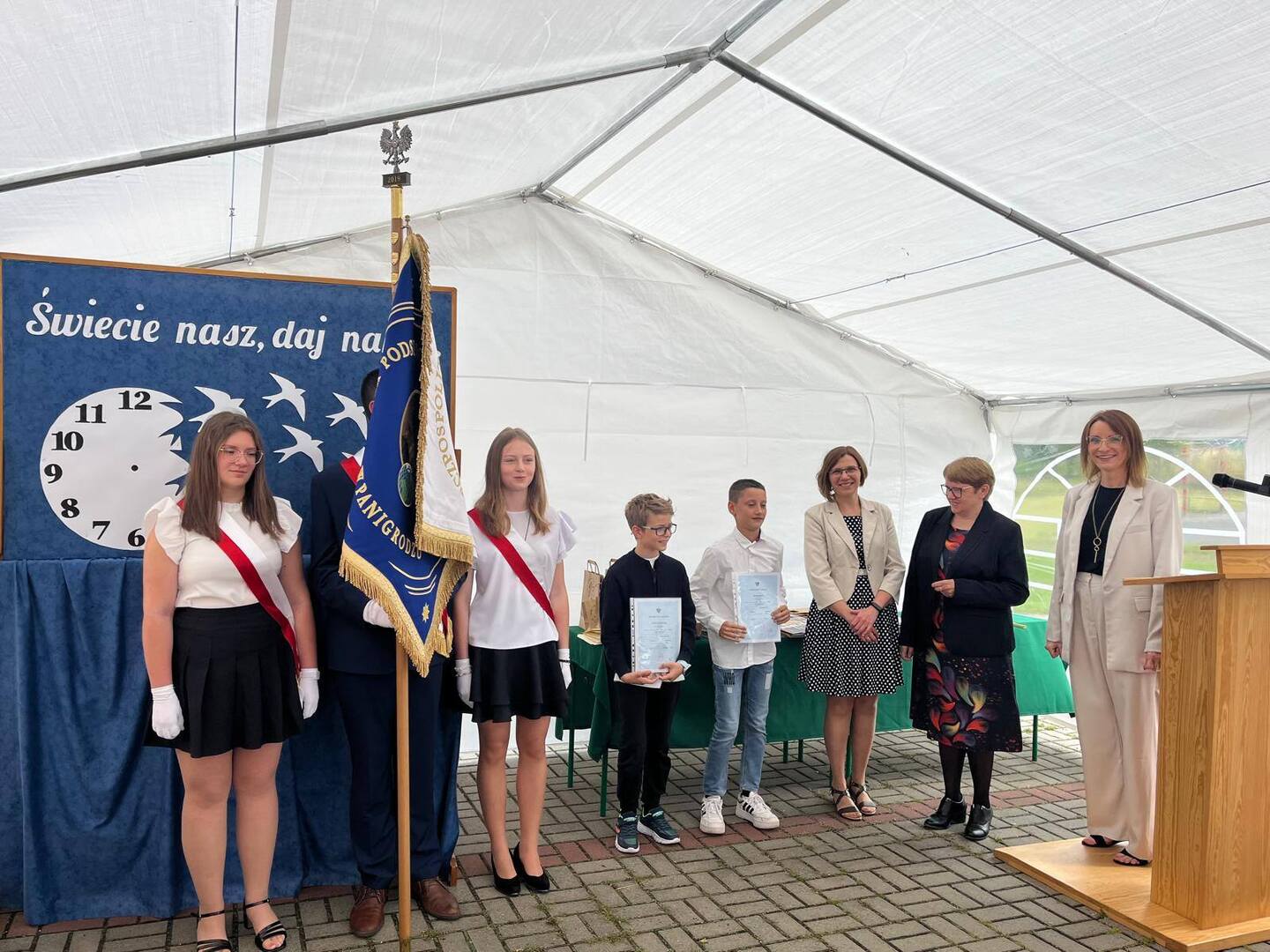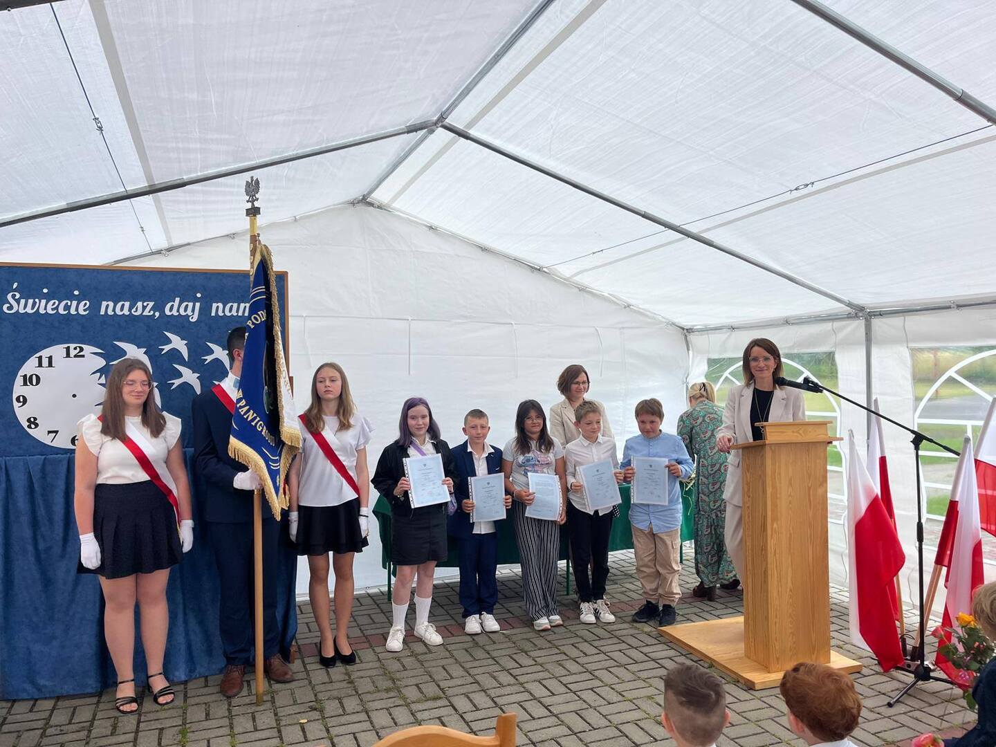 Wszystkich zgromadzonych serdecznie powitała Dyrektorka szkoły Agnieszka Przybysz. Podczas apelu wręczono świadectwa, dyplomy oraz nagrody uczniom wyróżniającym się w nauce i zaangażowaniu w życie szkoły. Dyrektor podziękował również osobom, które aktywnie wspierały realizację szkolnych wydarzeń.