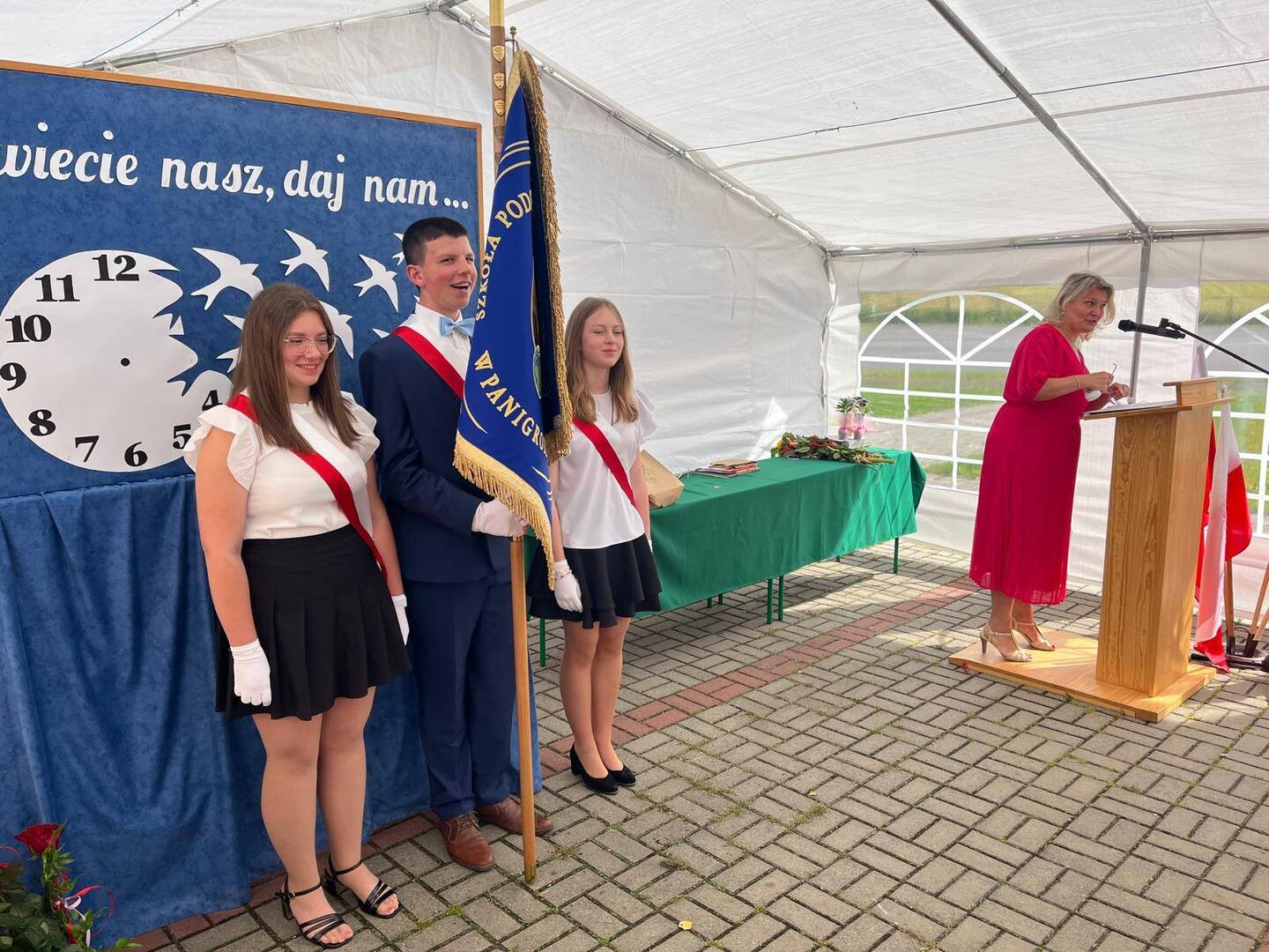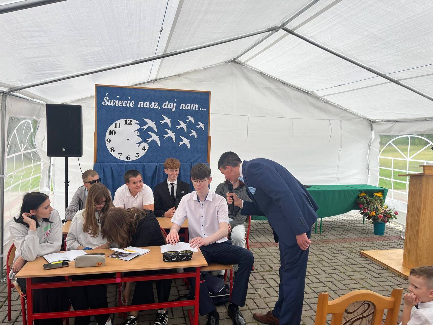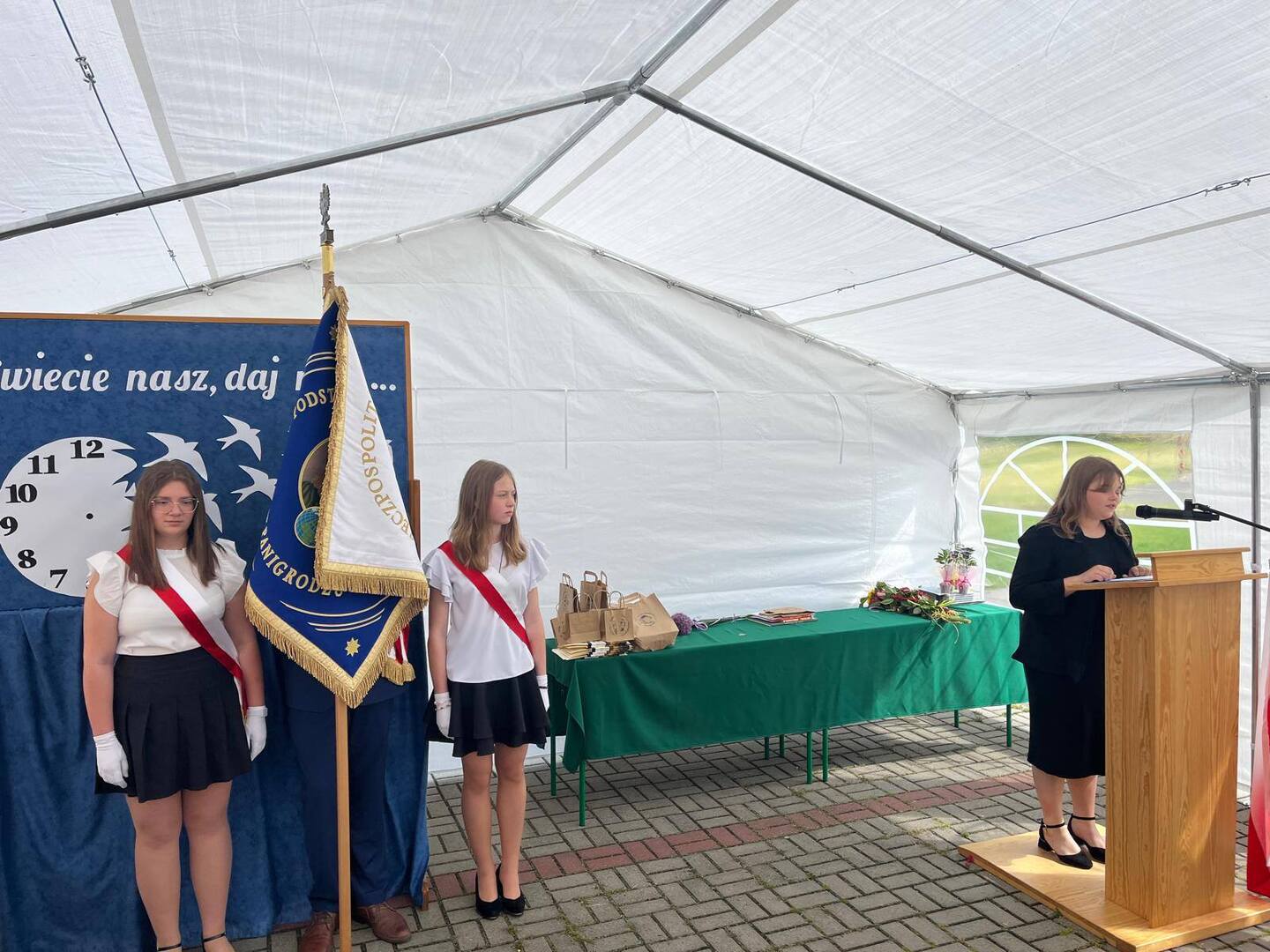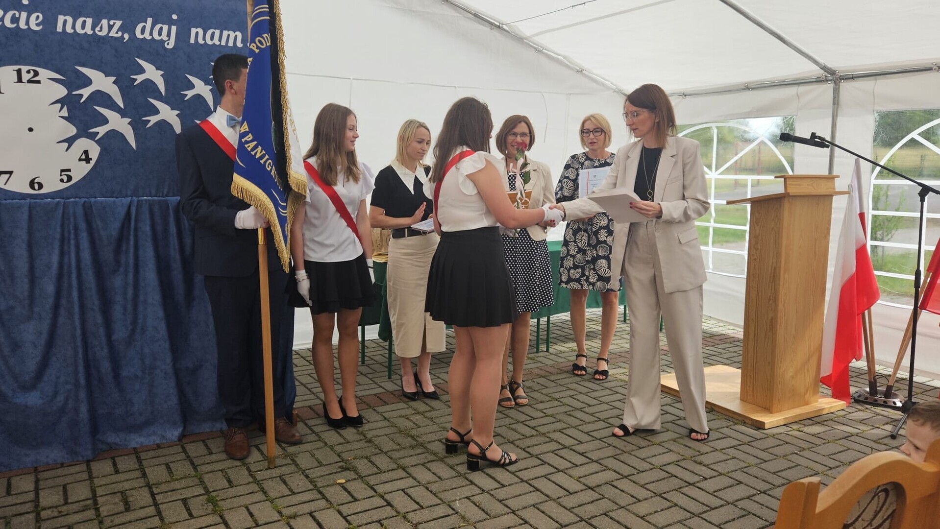 Wszystkich zgromadzonych serdecznie powitała Dyrektorka szkoły Agnieszka Przybysz. Podczas apelu wręczono świadectwa, dyplomy oraz nagrody uczniom wyróżniającym się w nauce i zaangażowaniu w życie szkoły. Dyrektor podziękował również osobom, które aktywnie wspierały realizację szkolnych wydarzeń.