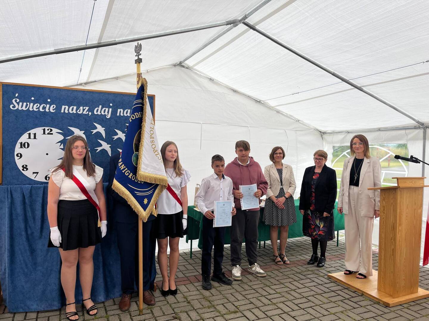 Głos zabrali także Zastępca Burmistrza Sławomir Maciaszek oraz Przewodnicząca Rady Rodziców Pani Renata Stachowiak, którzy złożyli uczniom gratulacje oraz życzenia bezpiecznych i udanych wakacji.