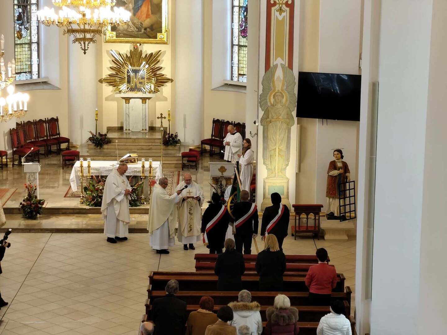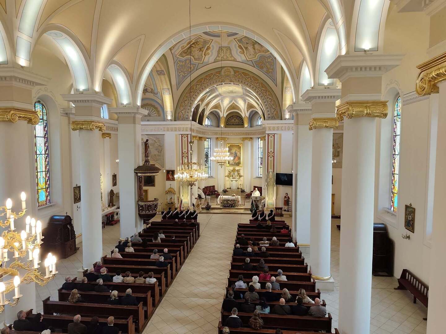 Podczas mszy świętej homilię wygłosił o. Michał Socha, a ks. Krzysztof Milewski w asyście celebransów poświęcił nowy sztandar szkoły. Uroczystą liturgię uświetnił chór parafii św. Wawrzyńca „Pax et Cantus”.