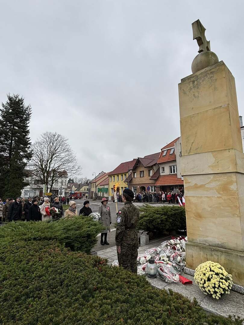 Po Mszy nastąpił uroczysty przemarsz pocztów sztandarowych, delegacji i mieszkańców na Rynek, gdzie przy dźwięku syren, o godz. 12:00, złożono kwiaty i znicze pod pomnikiem Bohaterów poległych i pomordowanych za wolność Ojczyzny.