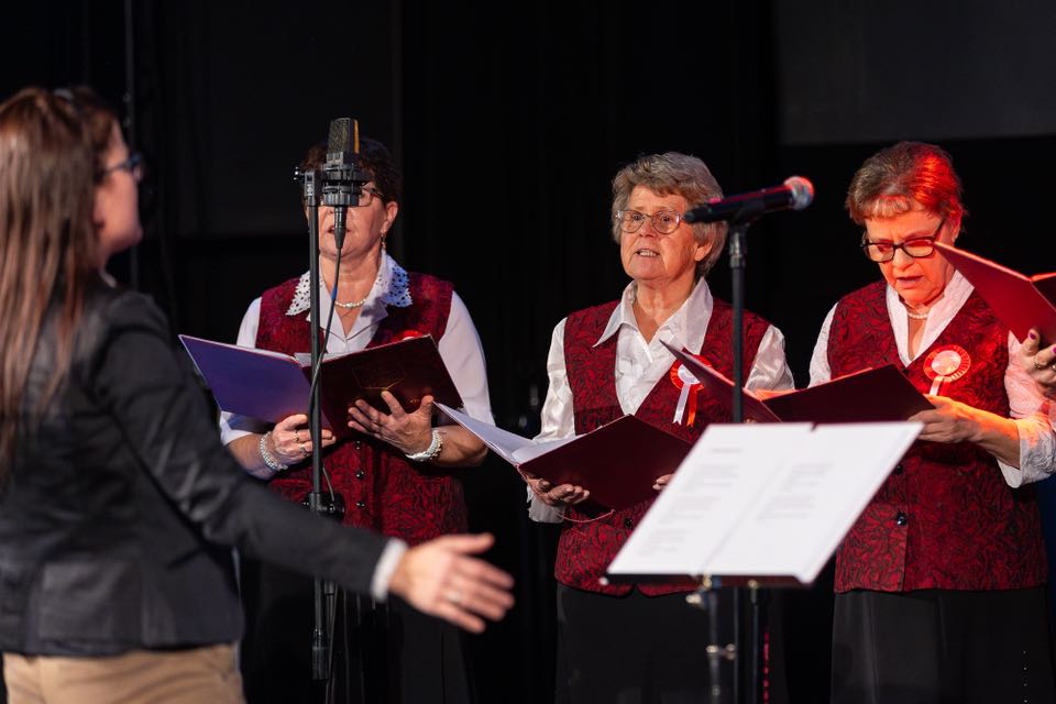 Chór „Kasztelanki” działający przy GOK Gołańcz z dumą zaprezentował swoje umiejętności, wnosząc w to wyjątkowe wydarzenie ciepło, energię i muzyczną elegancję.