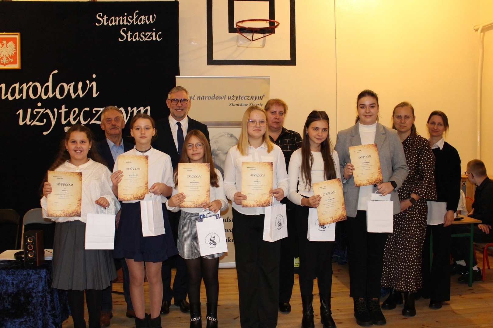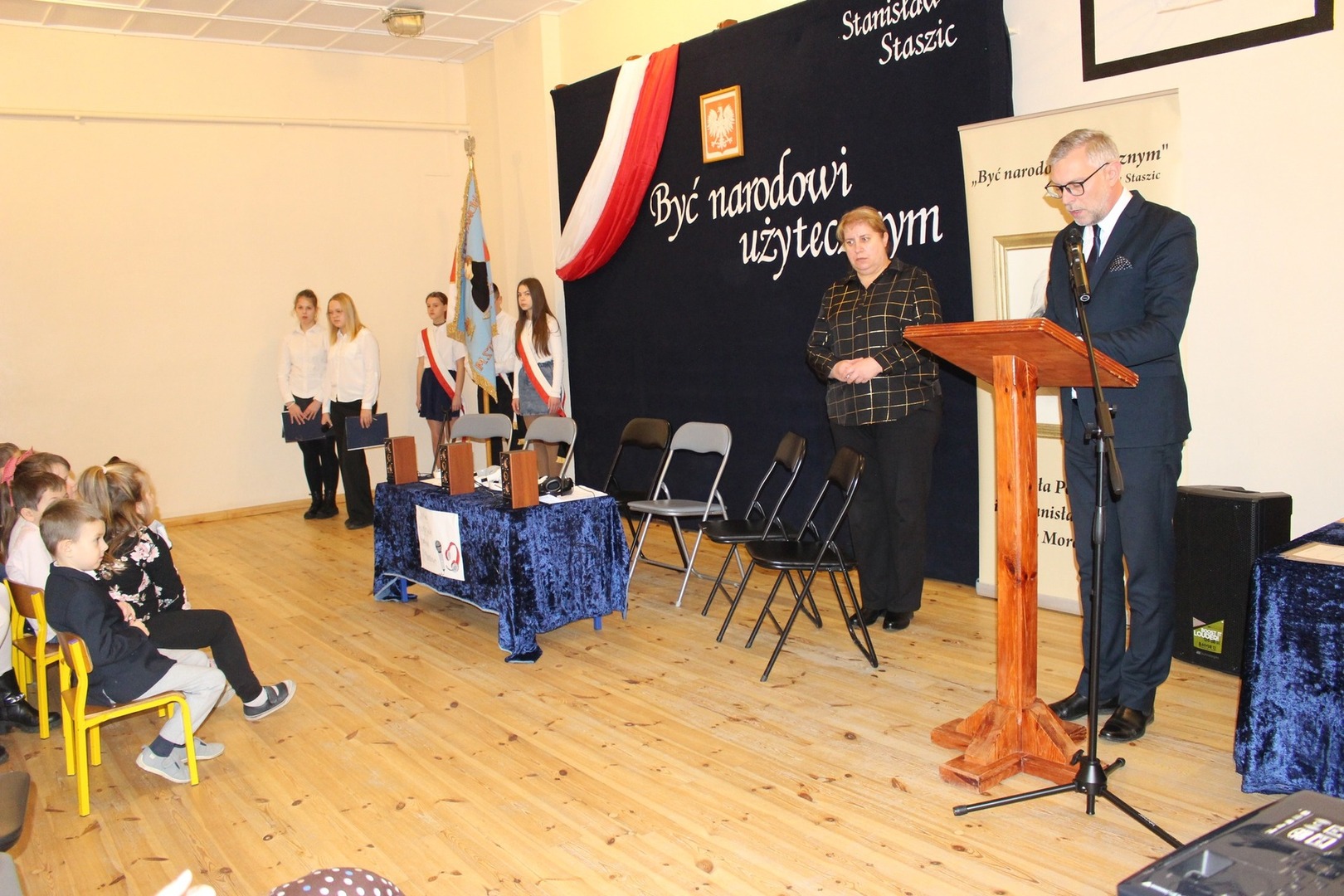 Dyrektor Magdalena Brząkała przypomniała historię nadania szkole imienia Stanisława Staszica (29 listopada 1986r.) oraz podkreśliła przesłanie patrona – że wiedza ma wartość, gdy służy człowiekowi, a uczciwość, pracowitość i odwaga myślenia prowadzą do budowania lepszej przyszłości.