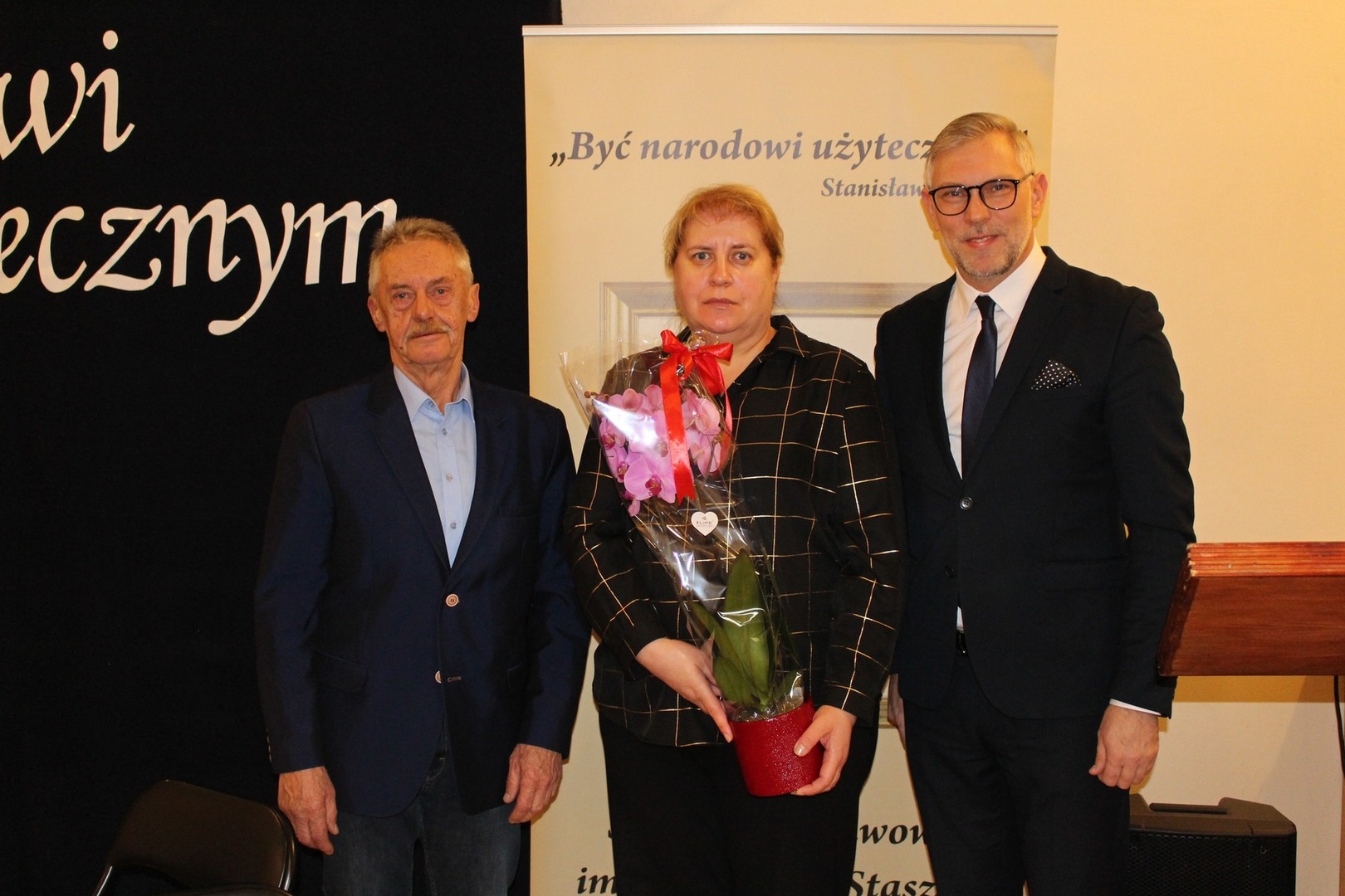 Zastępca burmistrza Sławomir Maciaszek, również w swoim wystąpieniu nawiązał do postaci patrona. Podkreślił wyjątkowy dorobek Stanisława Staszica jako uczonego, wizjonera i patrioty, przypominając jednocześnie, że rok 2026 został ustanowiony Rokiem Stanisława Staszica w uznaniu jego ogromnego wkładu w rozwój nauki, edukacji i życia społecznego. Zwrócił się także do uczniów, zachęcając ich, by – tak jak Staszic – odważnie marzyli, wytrwale zdobywali wiedzę i nie bali się podejmować wyzwań. Podkreślił również rolę nauczycieli, którzy każdego dnia przekazują młodym ludziom wartości bliskie patronowi szkoły. Na zakończenie przypomniał ważne przesłanie Staszica, aby w życiu kierować się ideą, by „być narodowi użytecznym”.