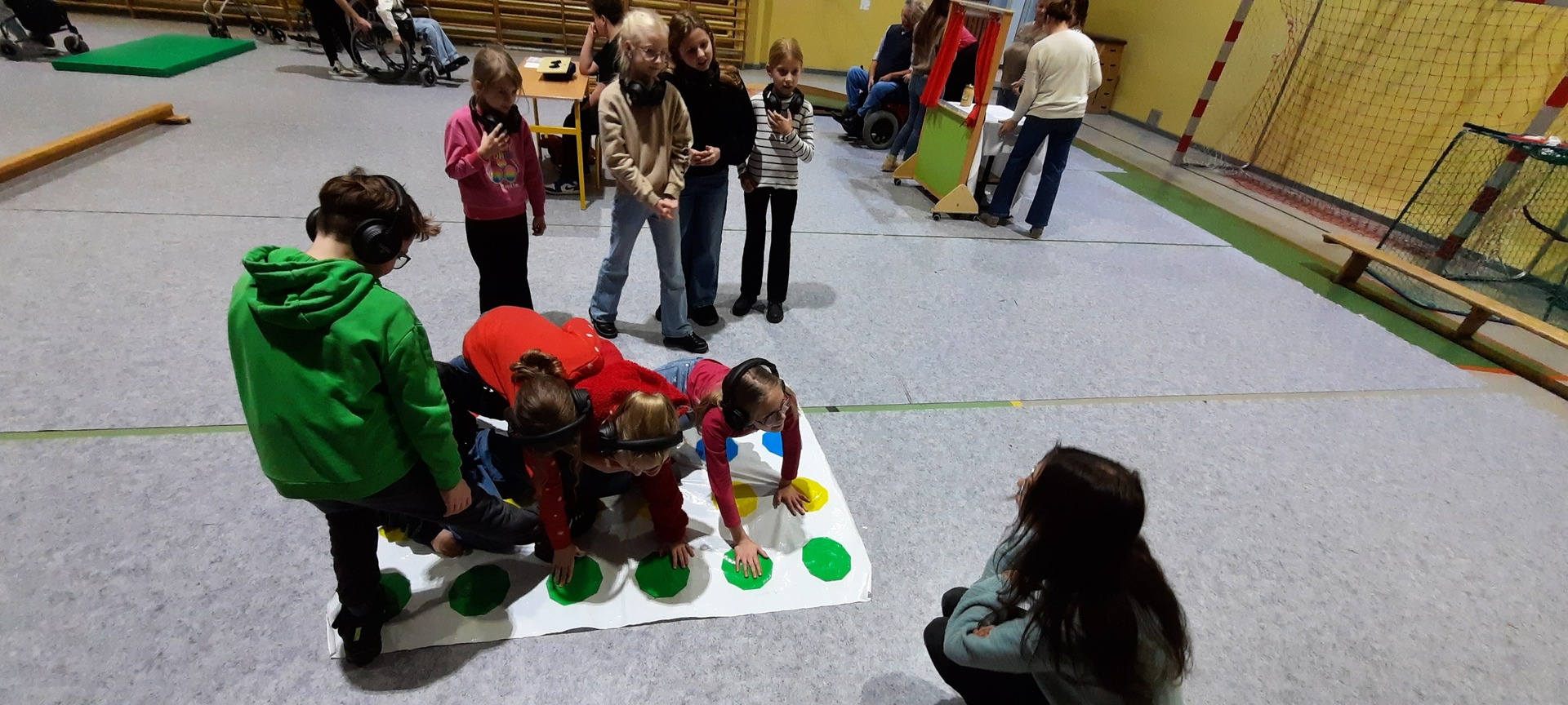 Uczniowie wzięli udział w specjalnie przygotowanych stacjach zadaniowych – pokonywali „tory przeszkód” na wózku inwalidzkim, przy pomocy balkonika i kul łokciowych, wykonywali zadania w słuchawkach tłumiących dźwięk oraz próbowali poruszać się z zasłoniętymi oczami, korzystając z białej laski lub wsparcia drugiej osoby. Dzięki temu mogli choć przez chwilę „poczuć”, jak wygląda codzienność osób z niepełnosprawnościami.
