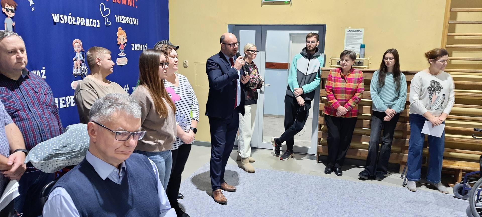 W gołanieckiej szkole gościliśmy dziś również przedstawicieli Fundacji „Więcej z Życia” z Wągrowca – prezesa Roberta Lorczyka, asystenta osobistego osoby z niepełnosprawnością Jarosława Kaczmarka oraz specjalistę ds. sportu i turystyki Arkadiusza Kołsuta. Wydarzenie wspierał swoją obecnością Robert Torz - Burmistrz Miasta i Gminy Gołańcz.
