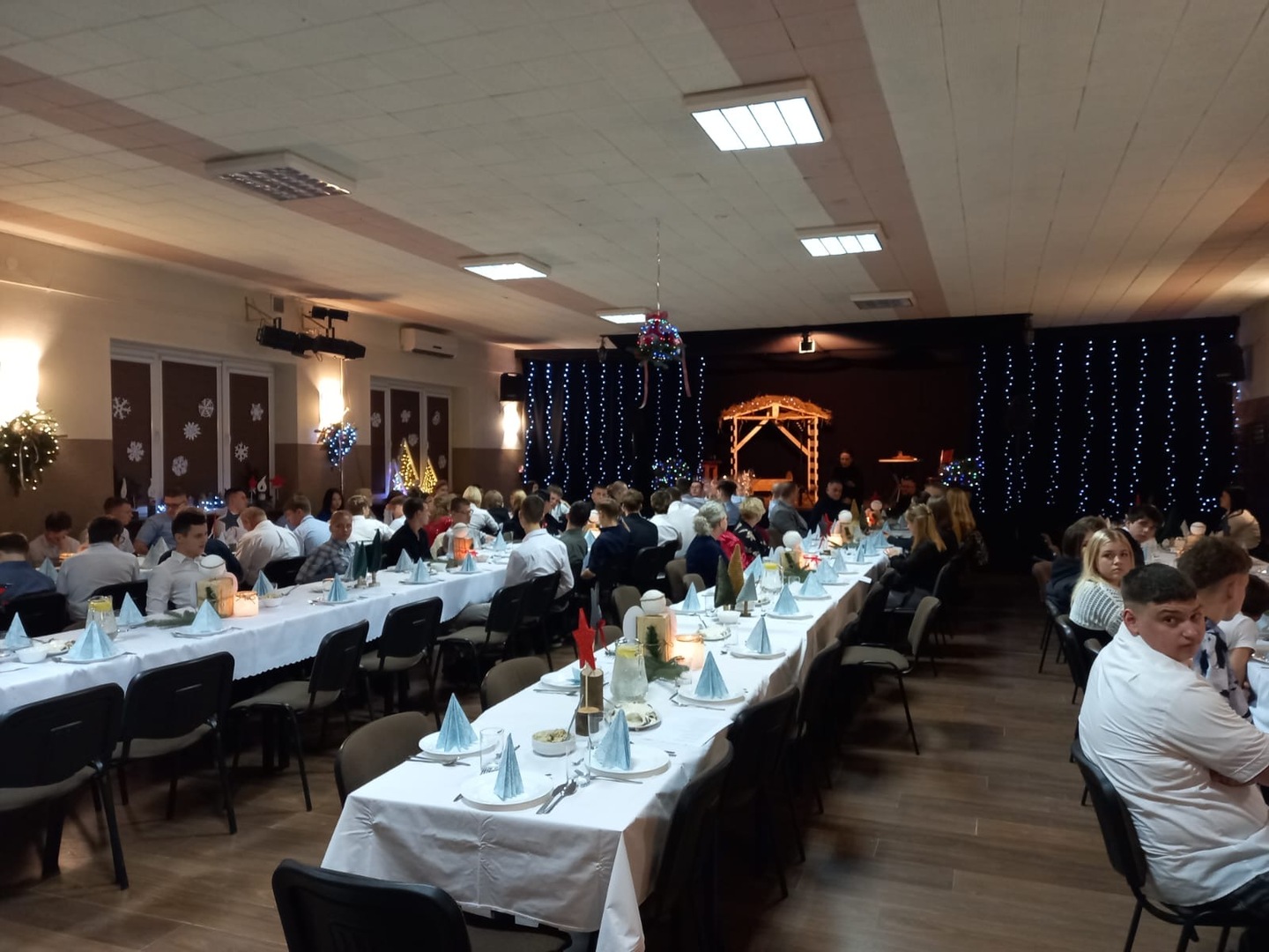 17 grudnia 2025r. w sali „Stodoła” odbyła się uroczysta wieczerza wigilijna gołanieckiego Młodzieżowego Ośrodka Socjoterapii. Gospodarzem spotkania była dyrektor MOS – Agnieszka Winiecka.