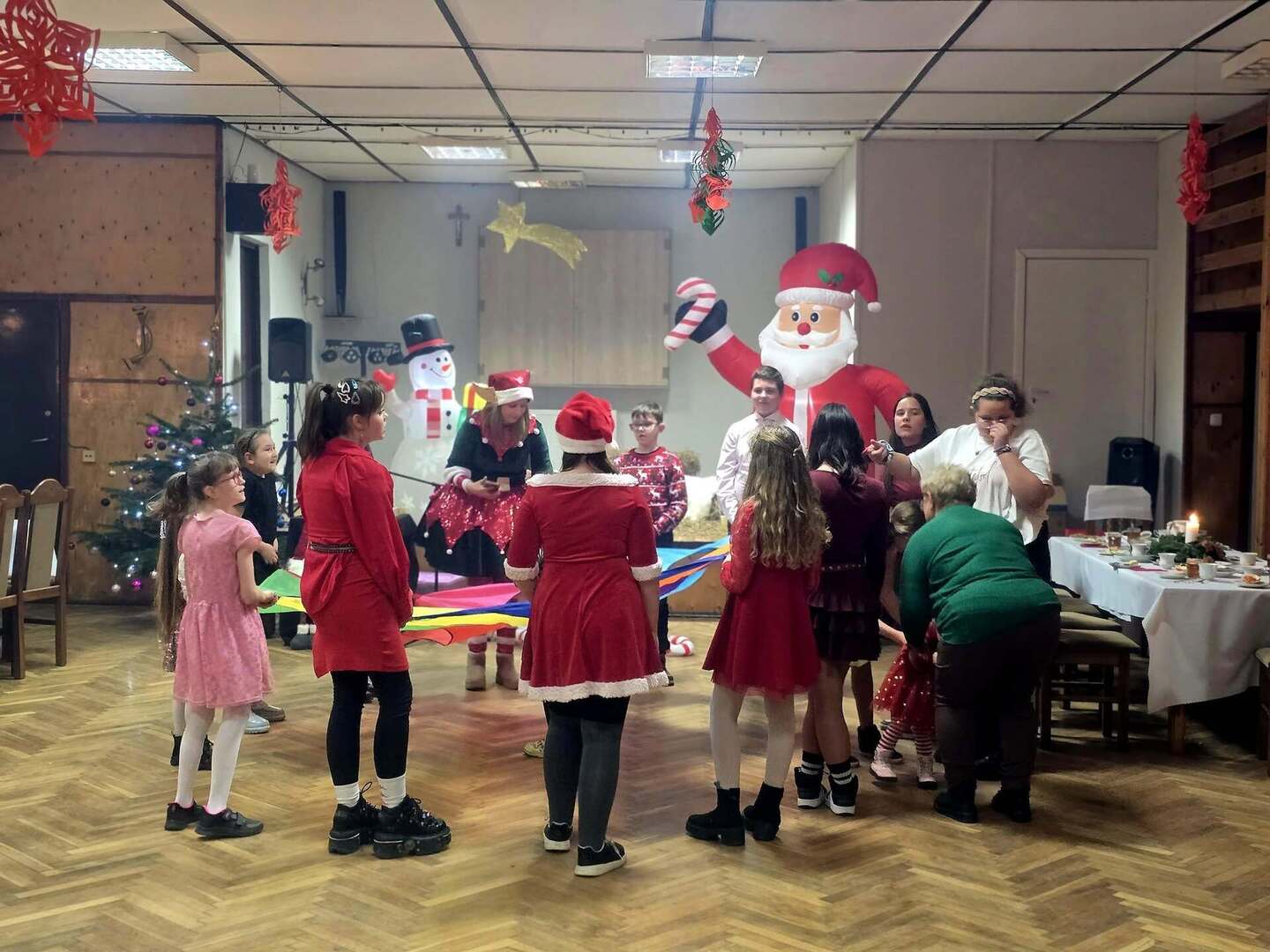 Na zakończenie spotkania przygotowano poczęstunek – kawę i ciasto, zorganizowany przy pomocy rodziców. Nie zabrakło również Gwiazdora, który obdarował dzieci świątecznymi prezentami, sprawiając najmłodszym wiele radości i dopełniając wyjątkowy charakter wydarzenia.