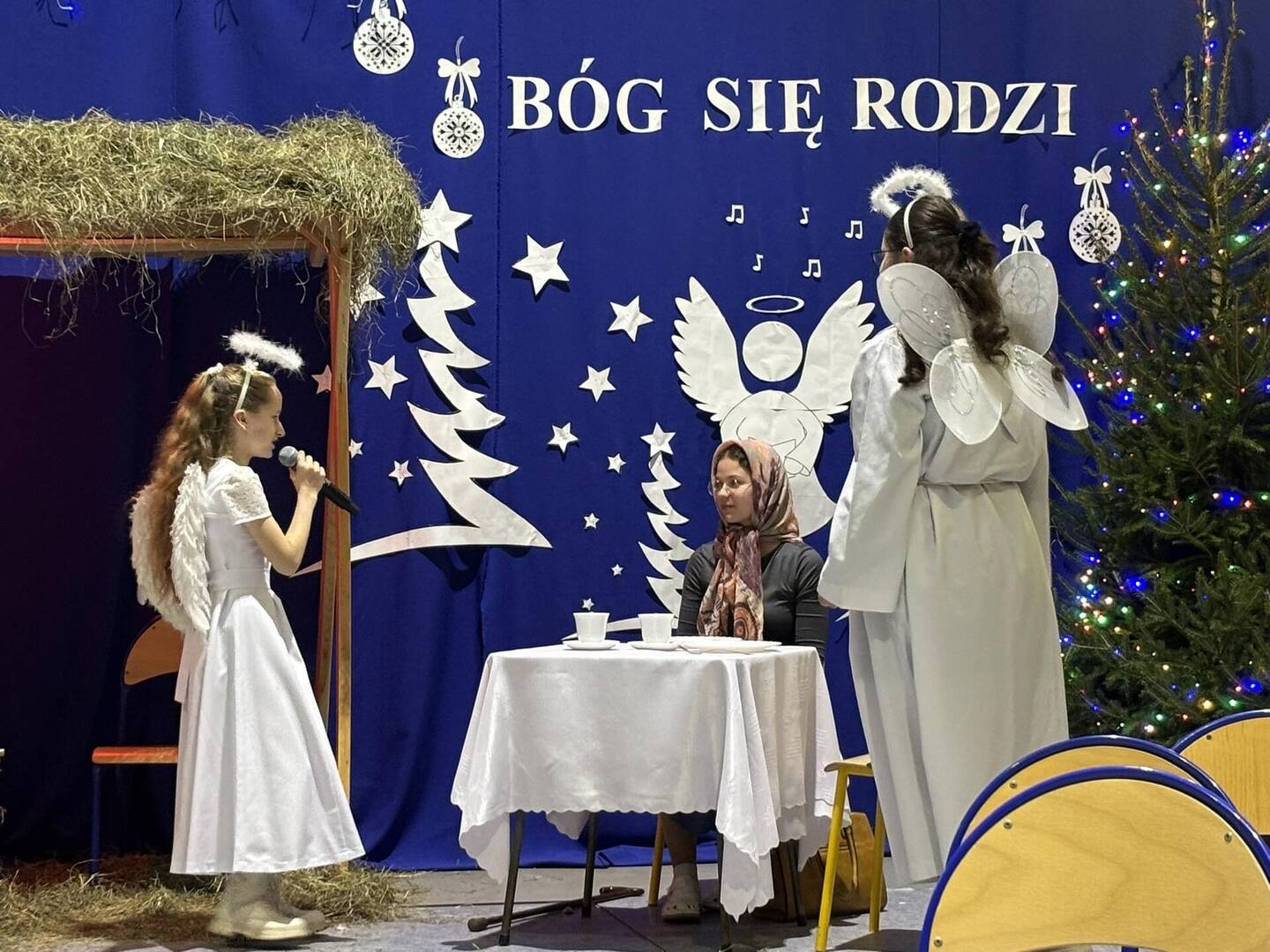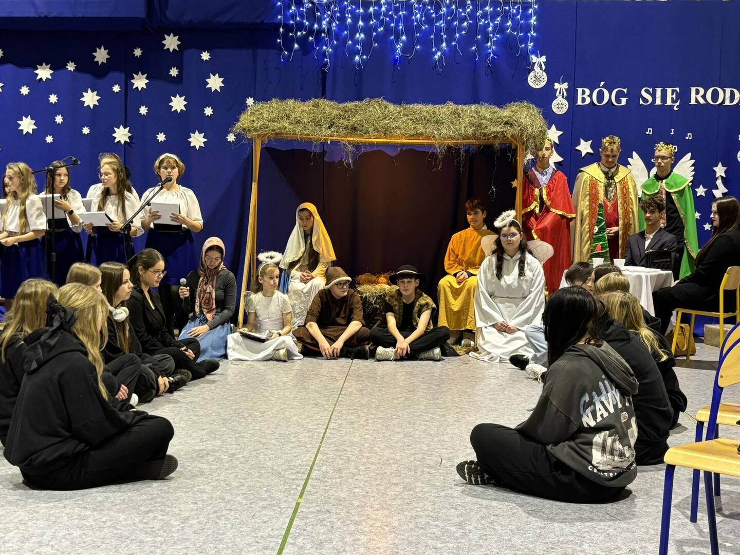 Centralnym punktem spotkania było przedstawienie bożonarodzeniowe przygotowane przez uczniów klas VII i VIII. Ich występ, pełen zaangażowania i emocji, został wzbogacony śpiewem chóru szkolnego, a także energetycznym akcentem muzycznym w wykonaniu rapującego ks. wikariusza, który wywołał uśmiech i entuzjazm publiczności.