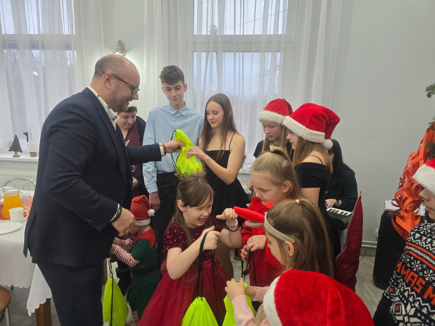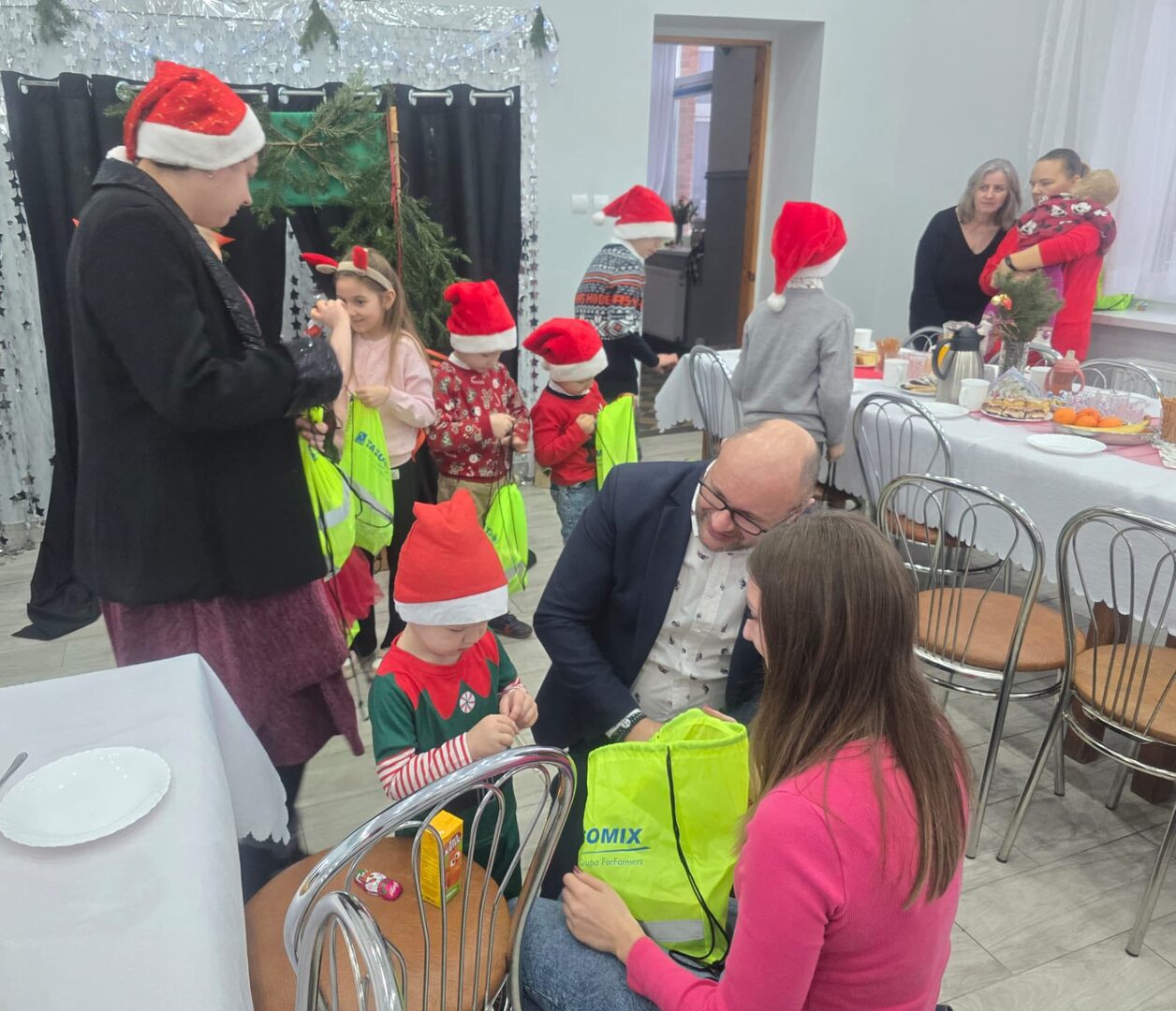 Po części artystycznej był czas na wspólne rozmowy, uśmiechy i bycie razem przy kawie oraz domowym cieście, przygotowanym dzięki ogromnemu zaangażowaniu rodziców. Dzieci otrzymały świąteczne upominki, które wywołały wiele radości i szczerych uśmiechów, dopełniając ten wyjątkowy, przedświąteczny czas.